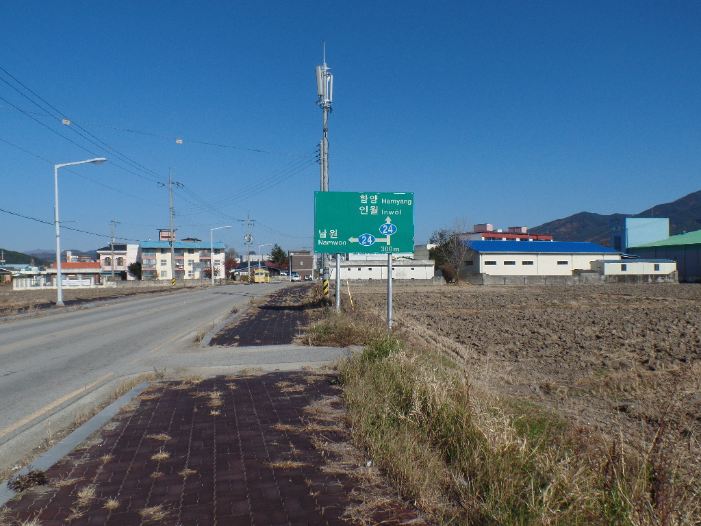 운봉초등학교에서 국도 24호선이 지나는 서림공원 입구 사거리로,
