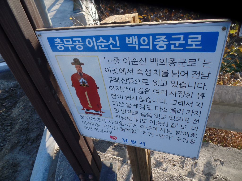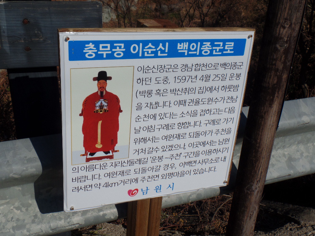 남원의 백의종군로는 장군이 남원에서 구례로 가는 2박 3일 간의 여정을 담은 것이다.