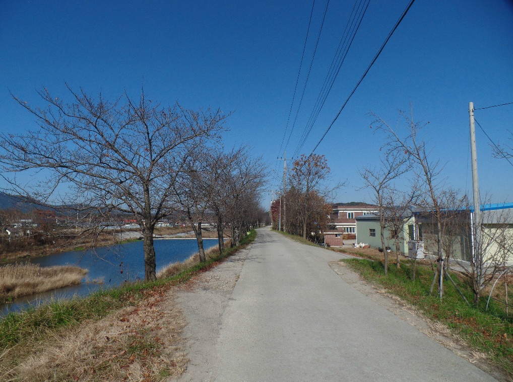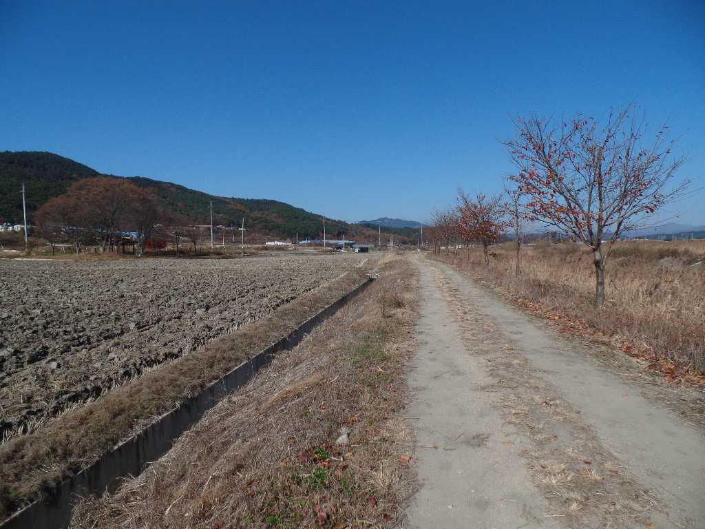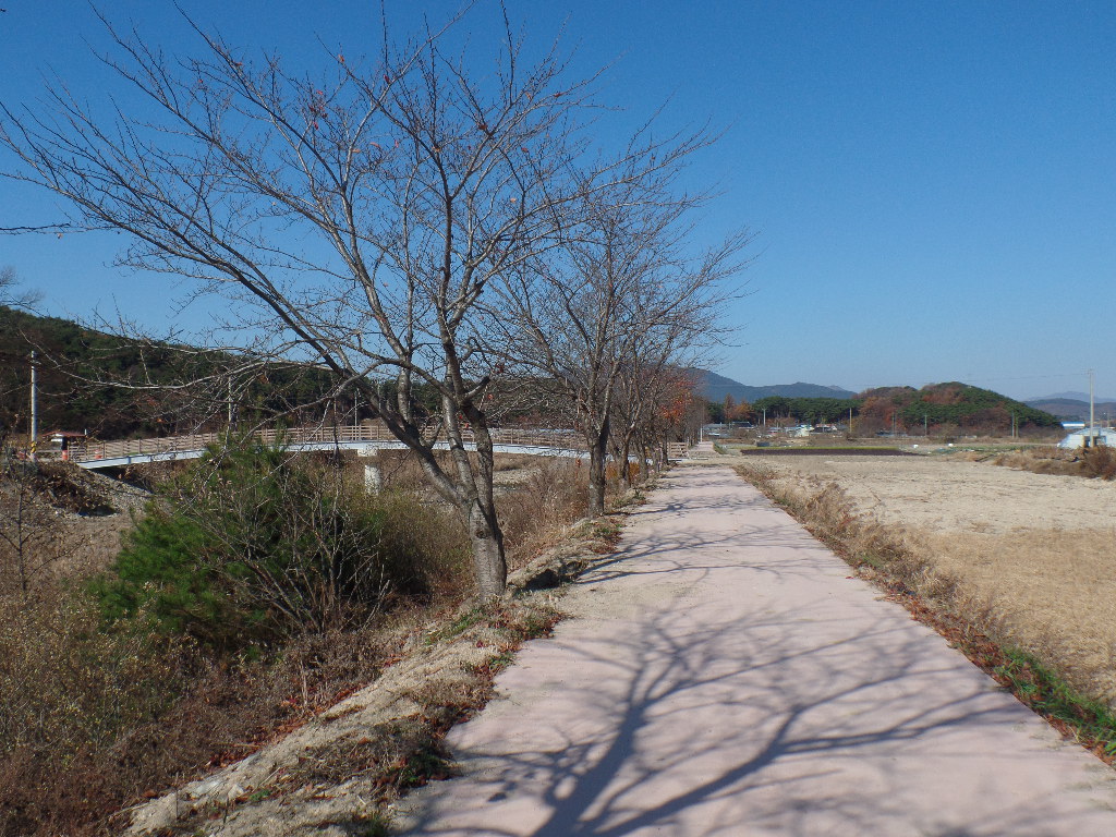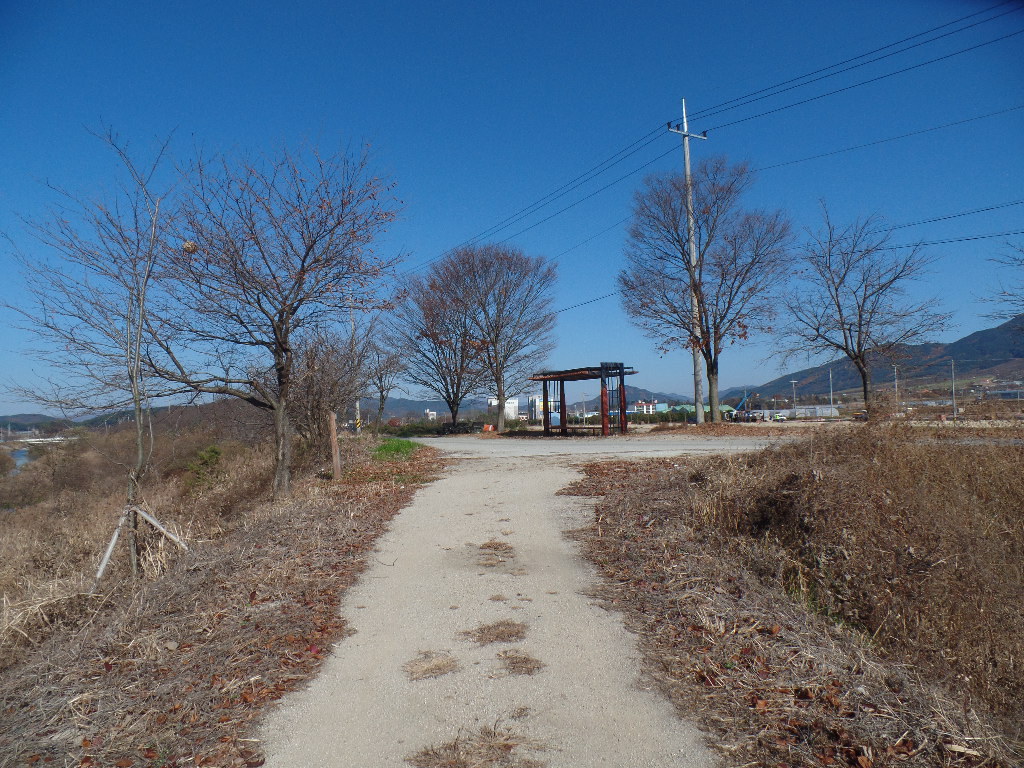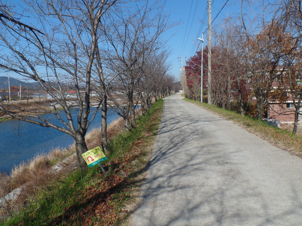 가장교를 건너자마자 다시 주촌천 둑길로 들어서며,