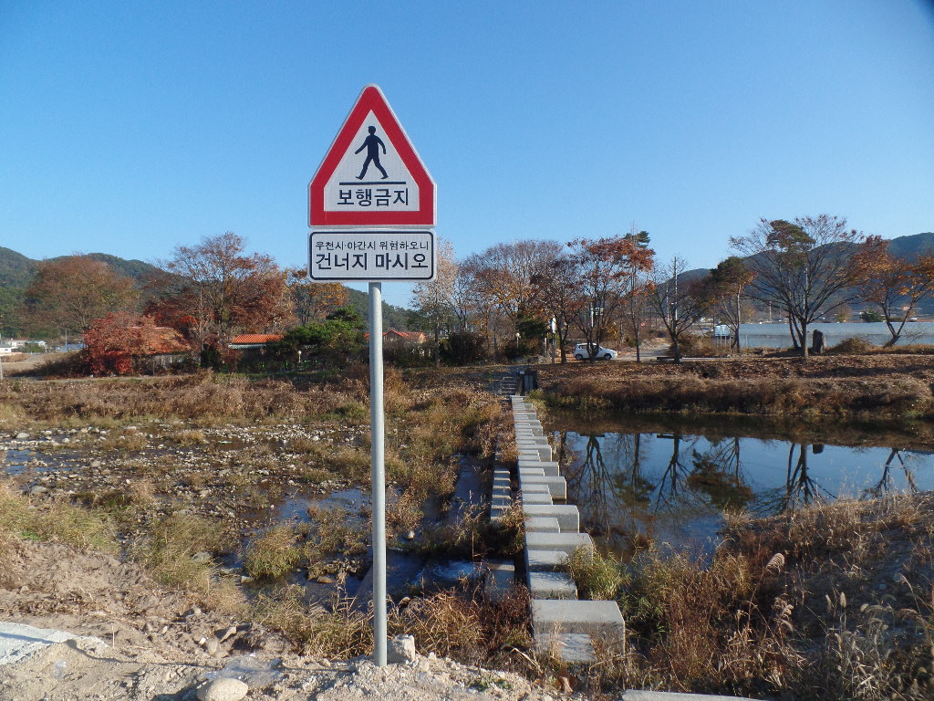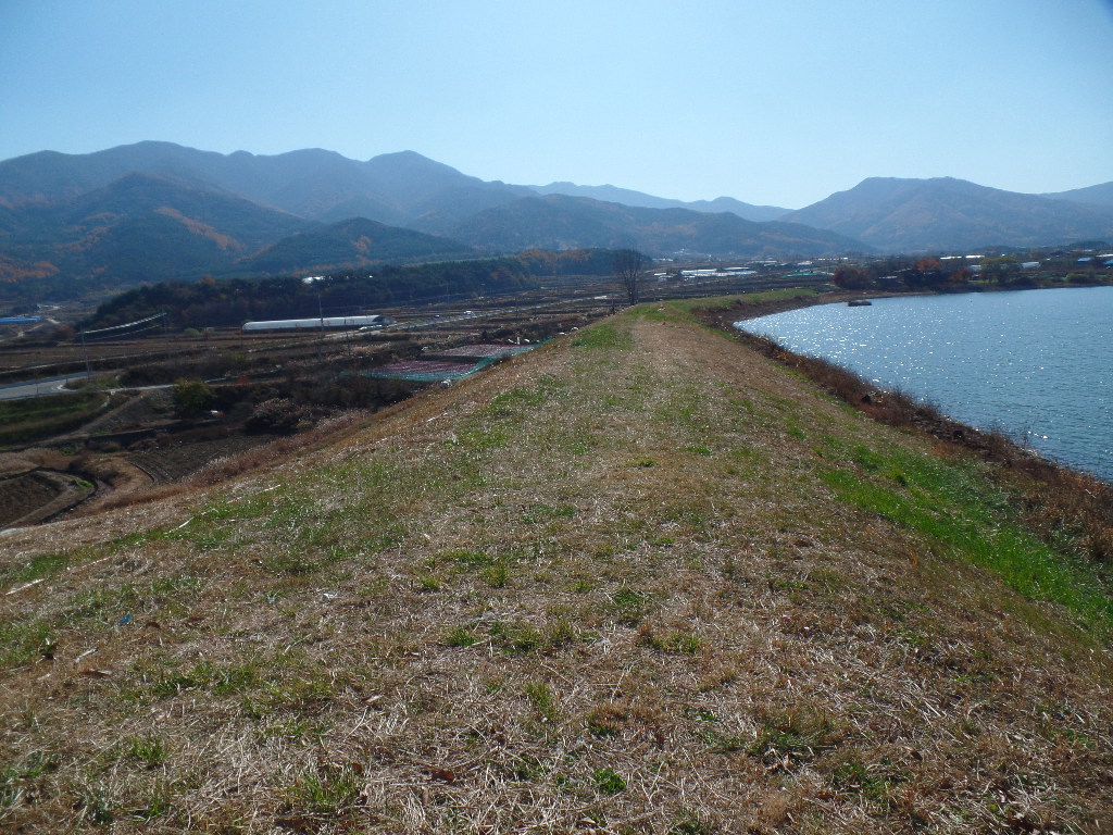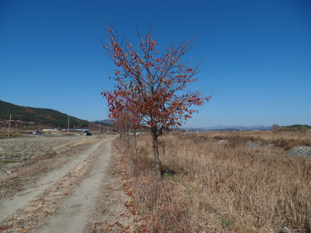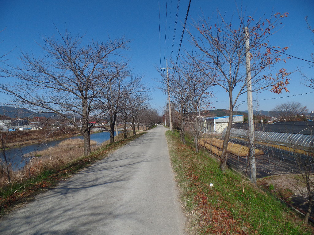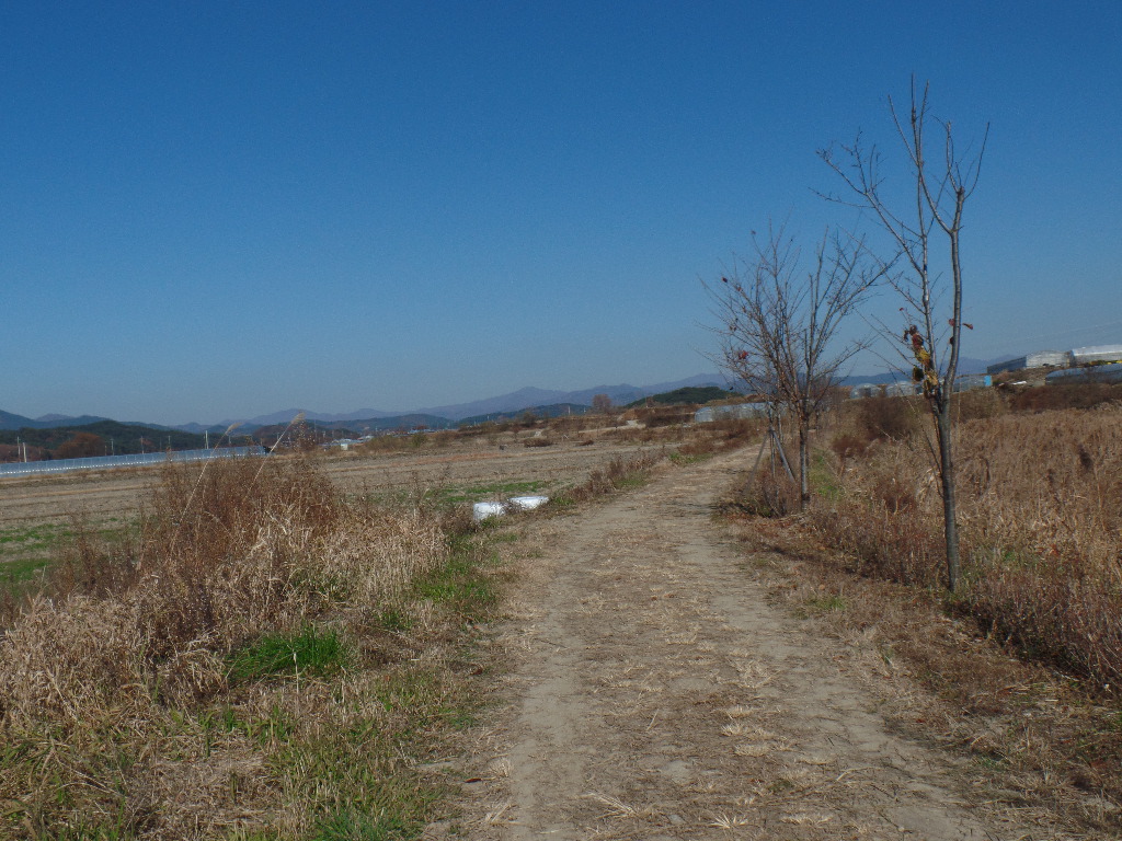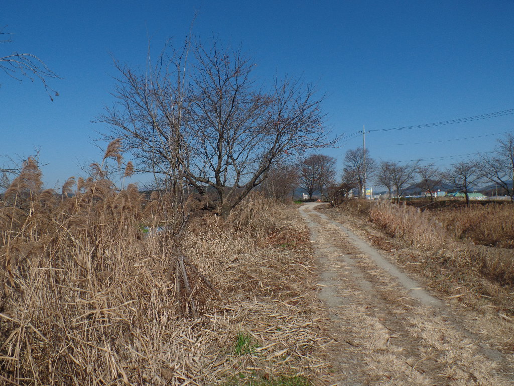 가장교를 건너자마자 다시 주촌천 둑길로 들어서며,
