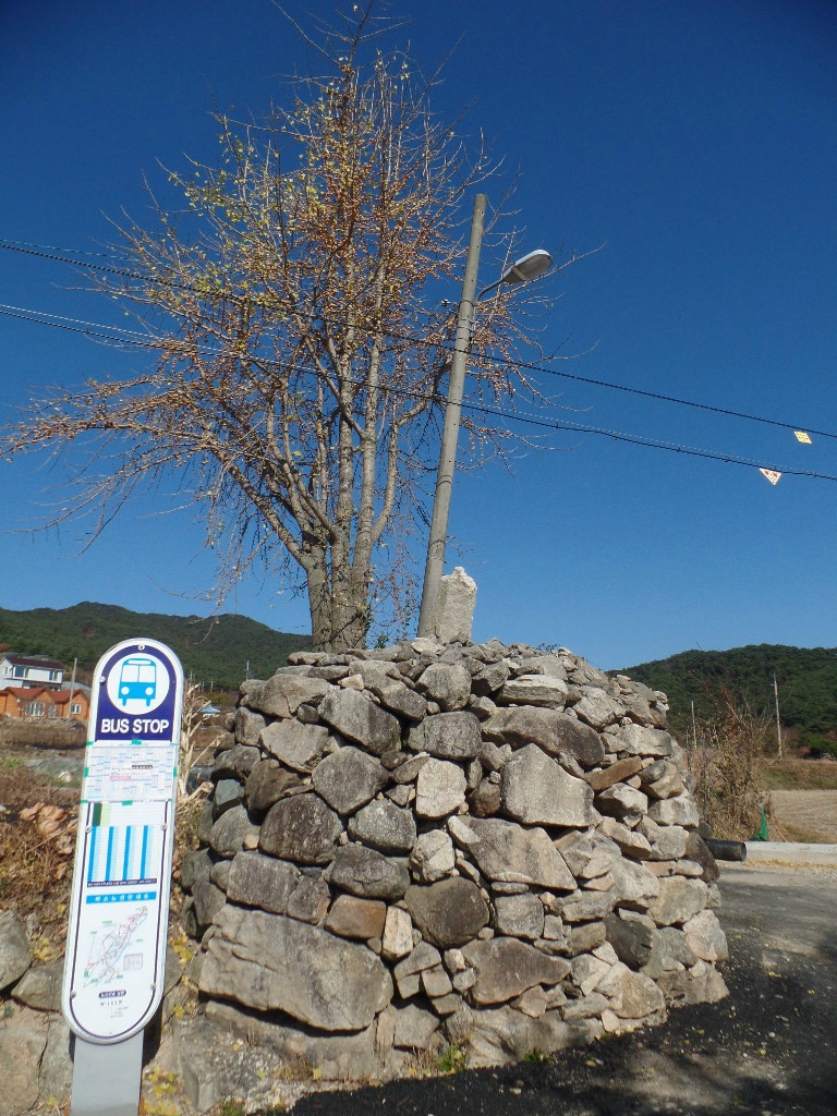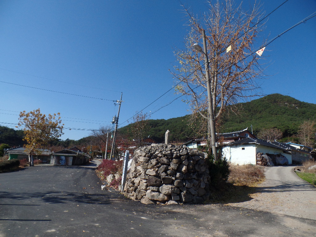 마을이 뱀 형국으로 마을 앞에 입석을 세워 뱀의 기를 눌러 마을의 액 막음을 하고 있다.