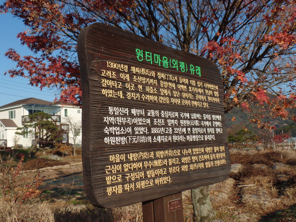 외방 외(外)자와 밭들의 전평(田坪) 평자를 따서 외평으로 바뀌었다.