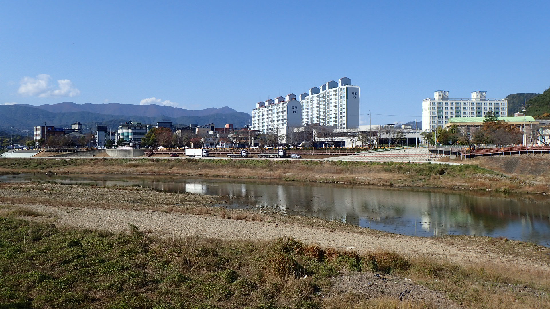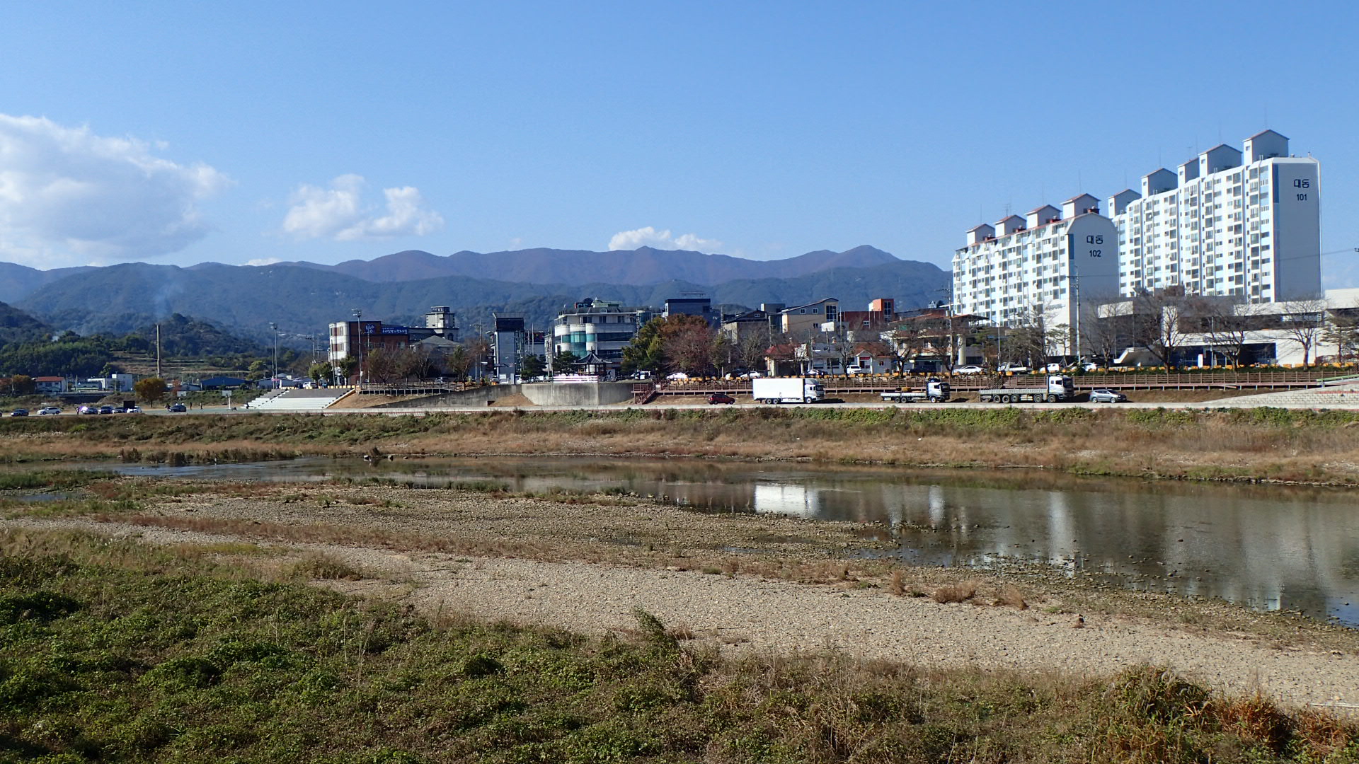 경호강와 양천강, 아파트가 점령해 버린 원지와 단성마을이 한눈에 들어왔다.