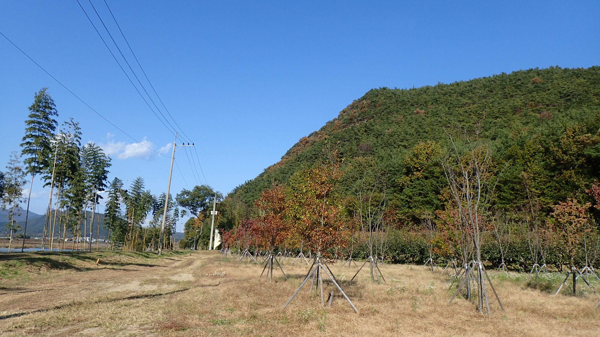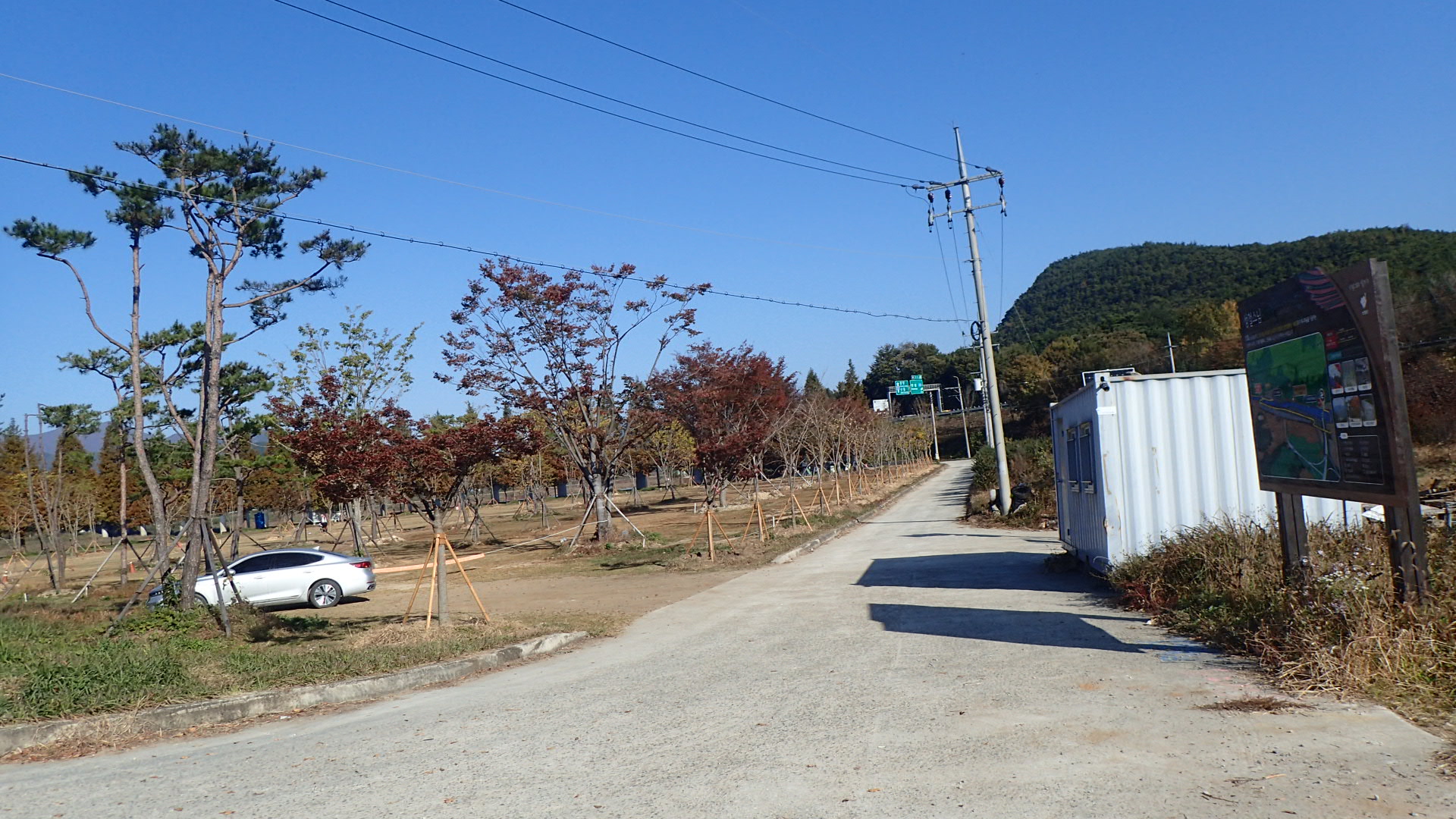 야자매트가 깔린 묵곡대나무숲길은 이제 막 조성된 듯 대나무들이 한창 자리를 잡고 있는 중이었다.
