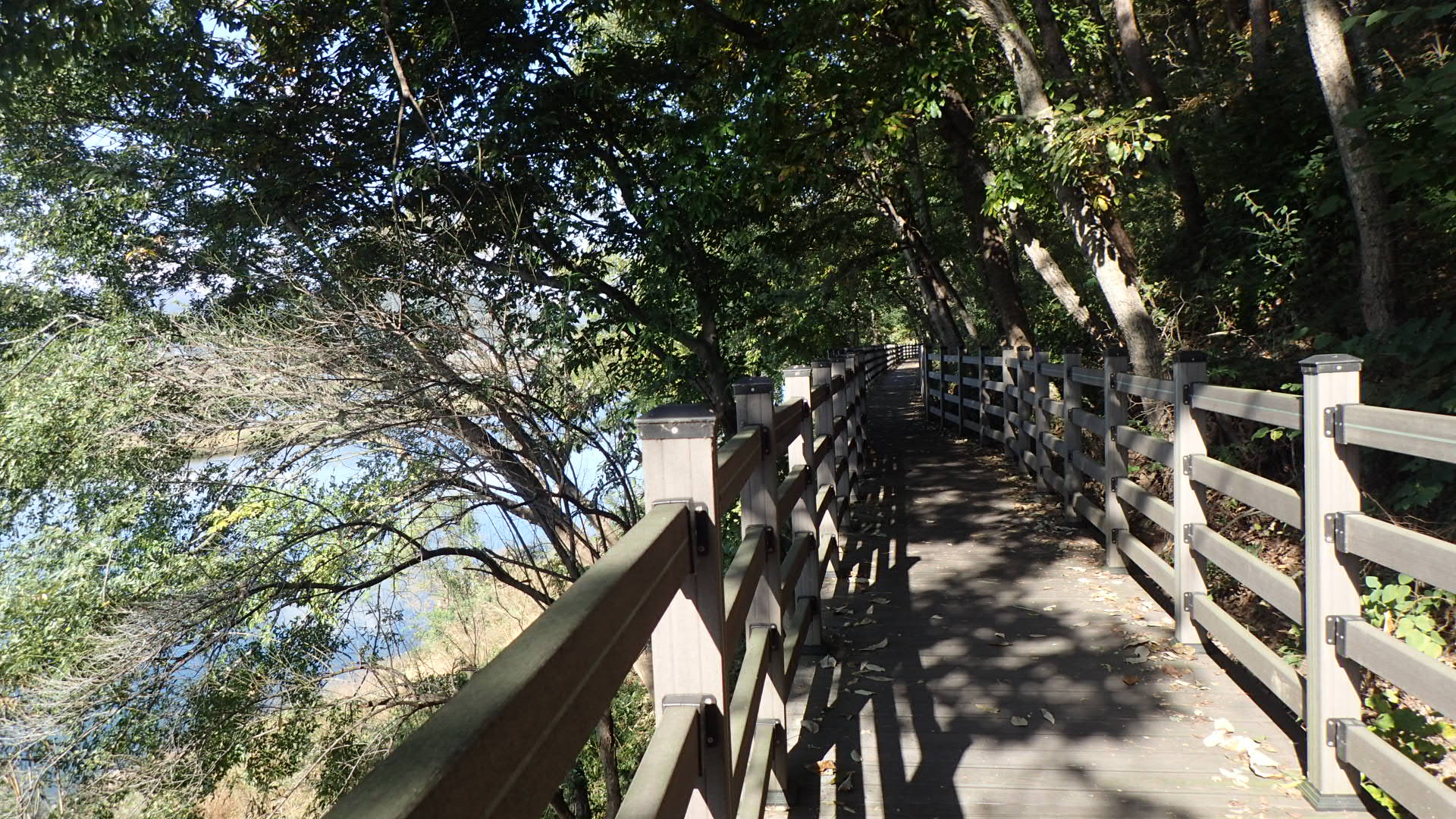 양수장을 지나자 법륜암까지 약 1km 거리를 나무데크로 강변길을 만들어 놓았다.