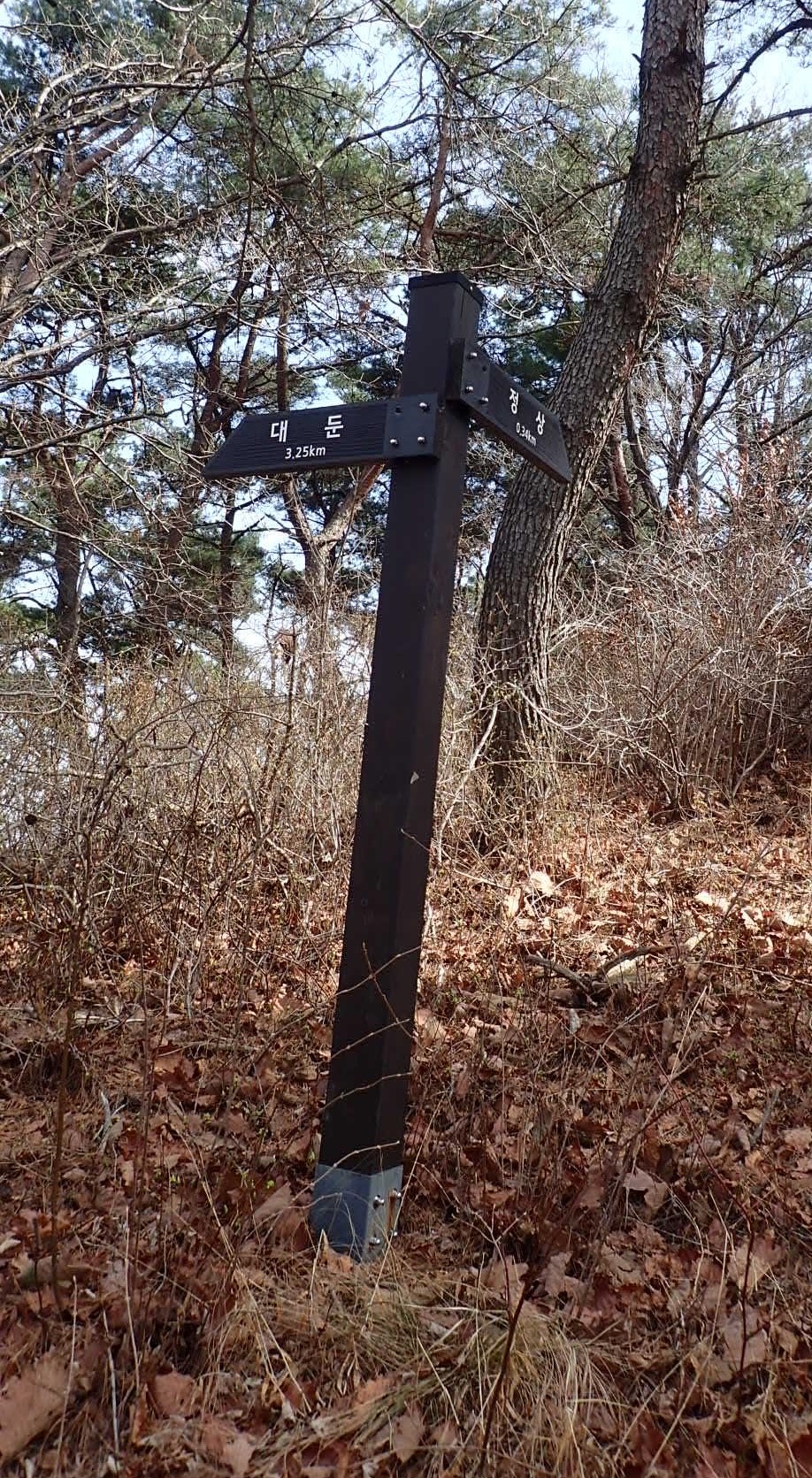 정상 0.34Km·대둔 3.25Km를 가리키고
