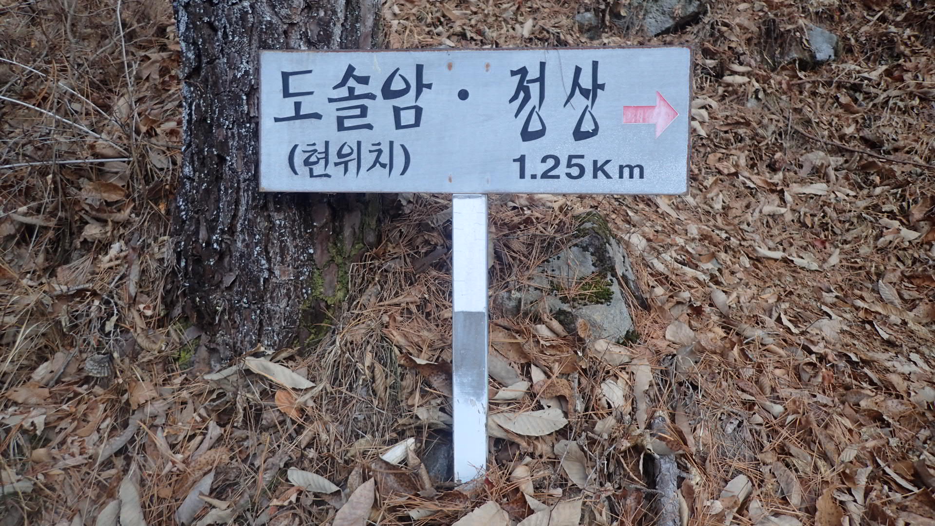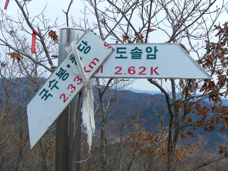 국수봉·동당 2.33km·정상 957m·도솔암 2.62km를 가리키던 건데,