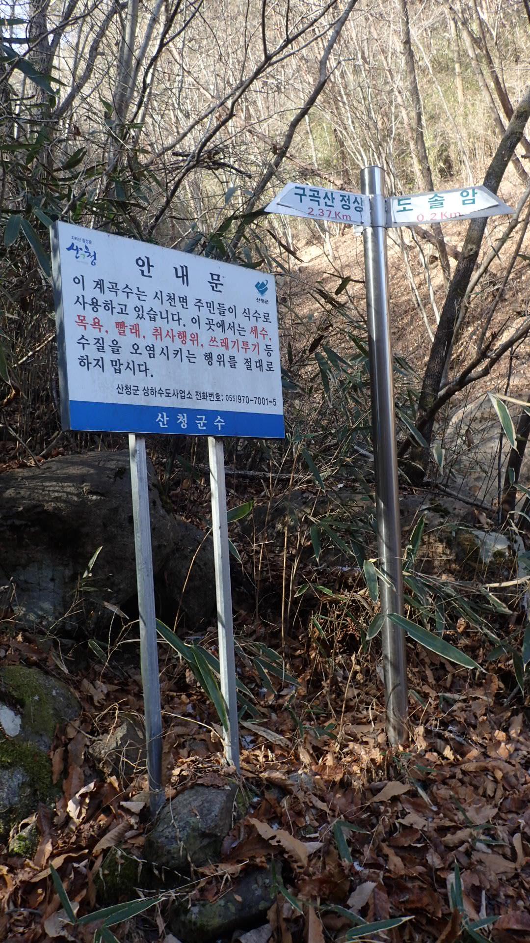 산청군에서 군데군데 훼손된 구곡산 이정표를 정비해야 하지 않을까?