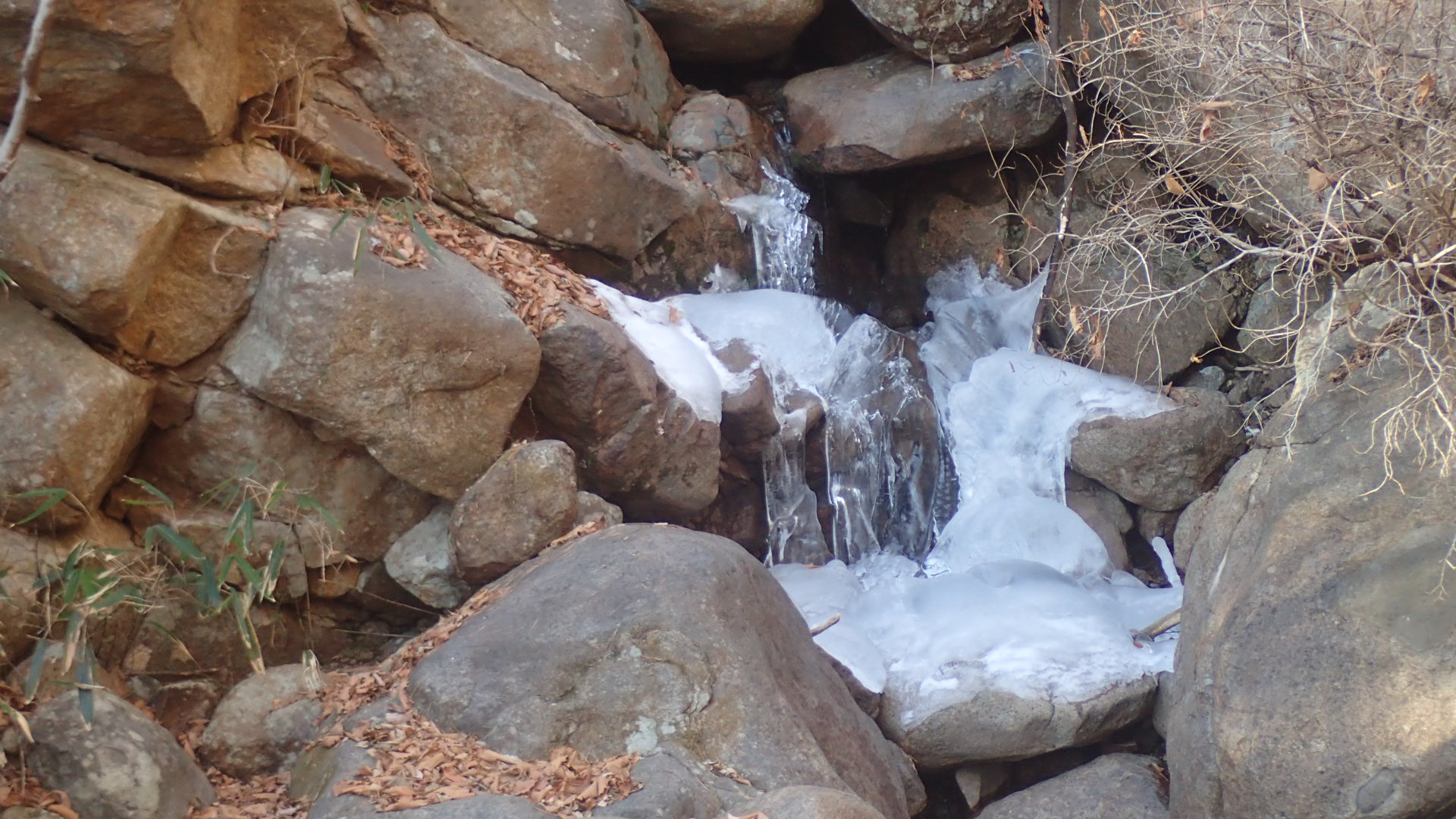 와룡폭(臥龍瀑) 각자는 때가 때인지라 눈과 얼음 속에 숨어 있는 걸.