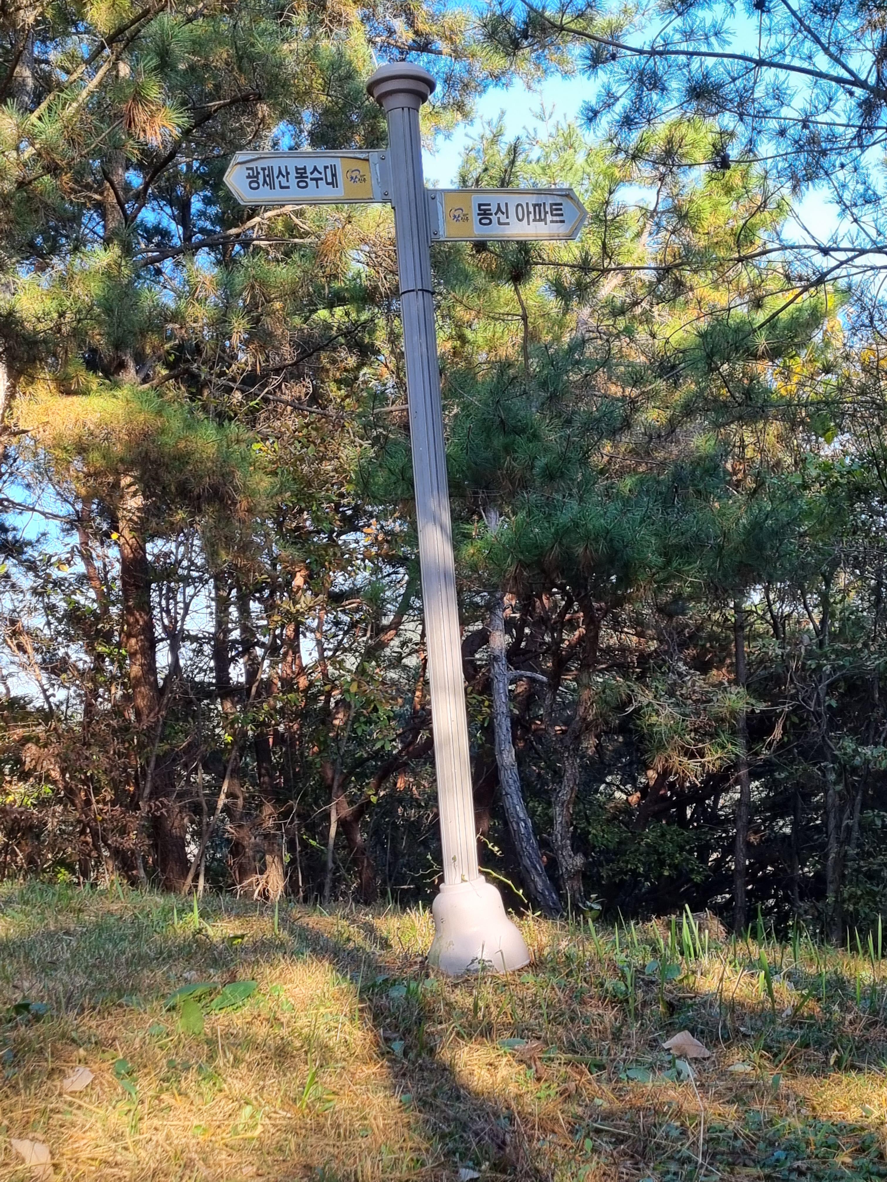 진양기맥이 지나는 광제산(419.6m)으로 이어지는 210.1m봉
