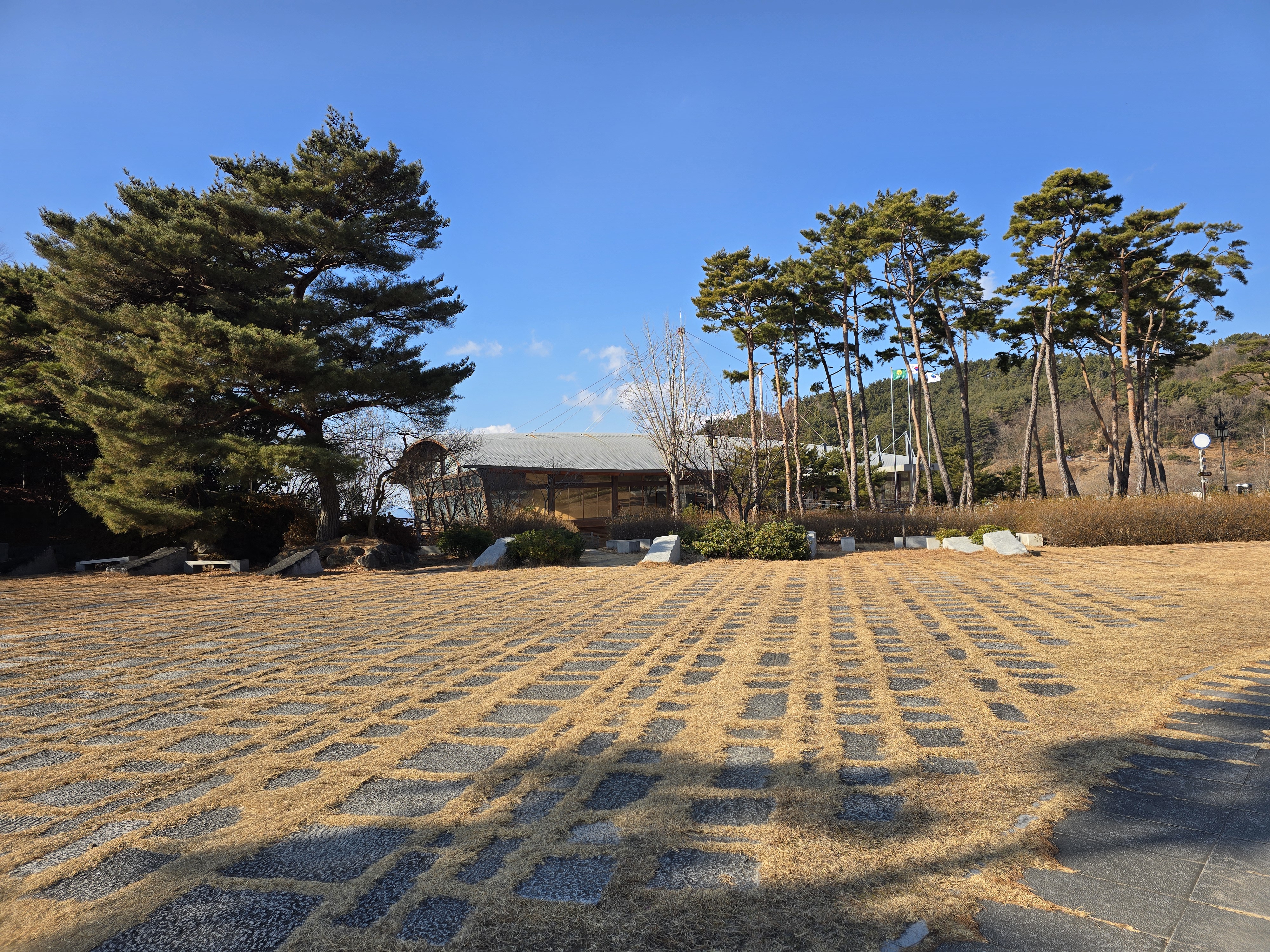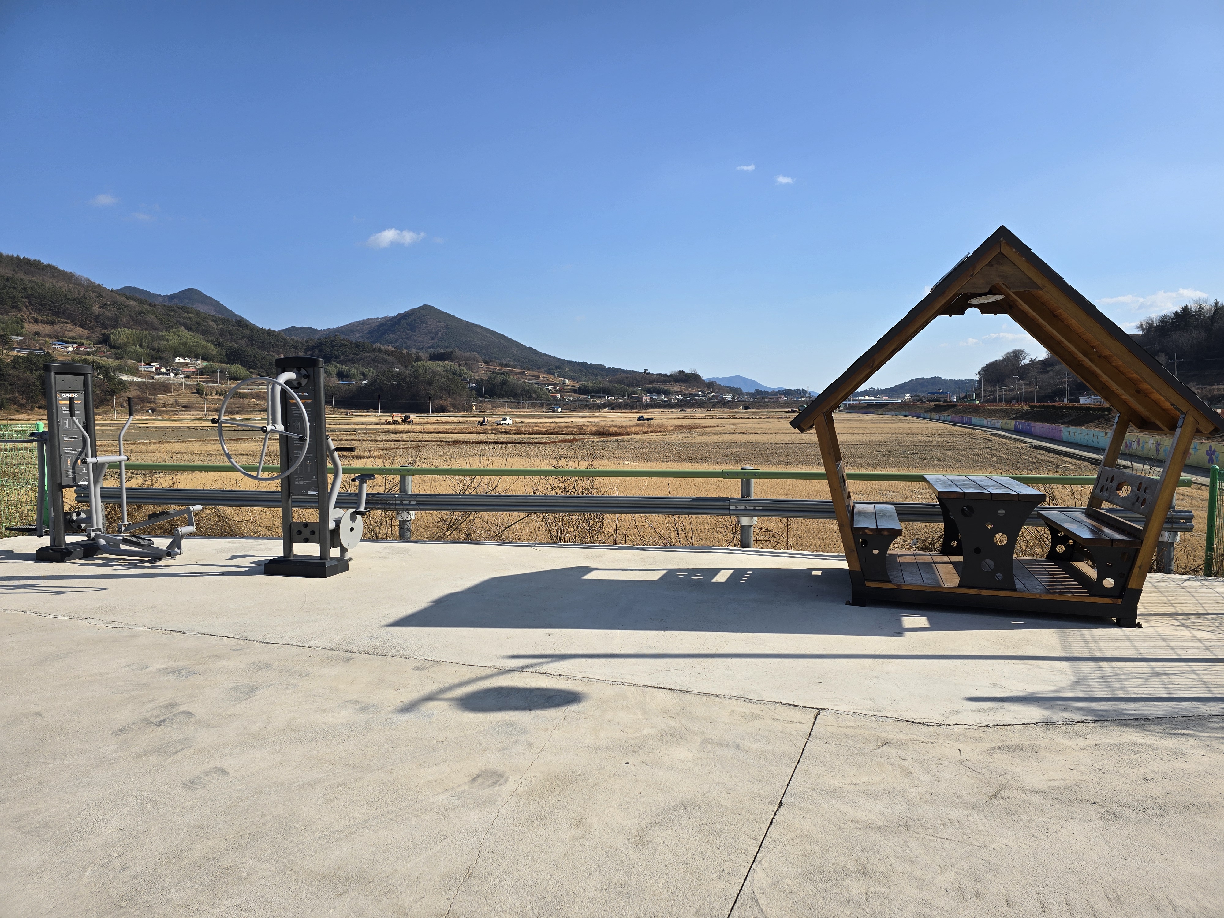 관음포가 보이는 둑길 끝지점에 있는 쉼터에 이르러,