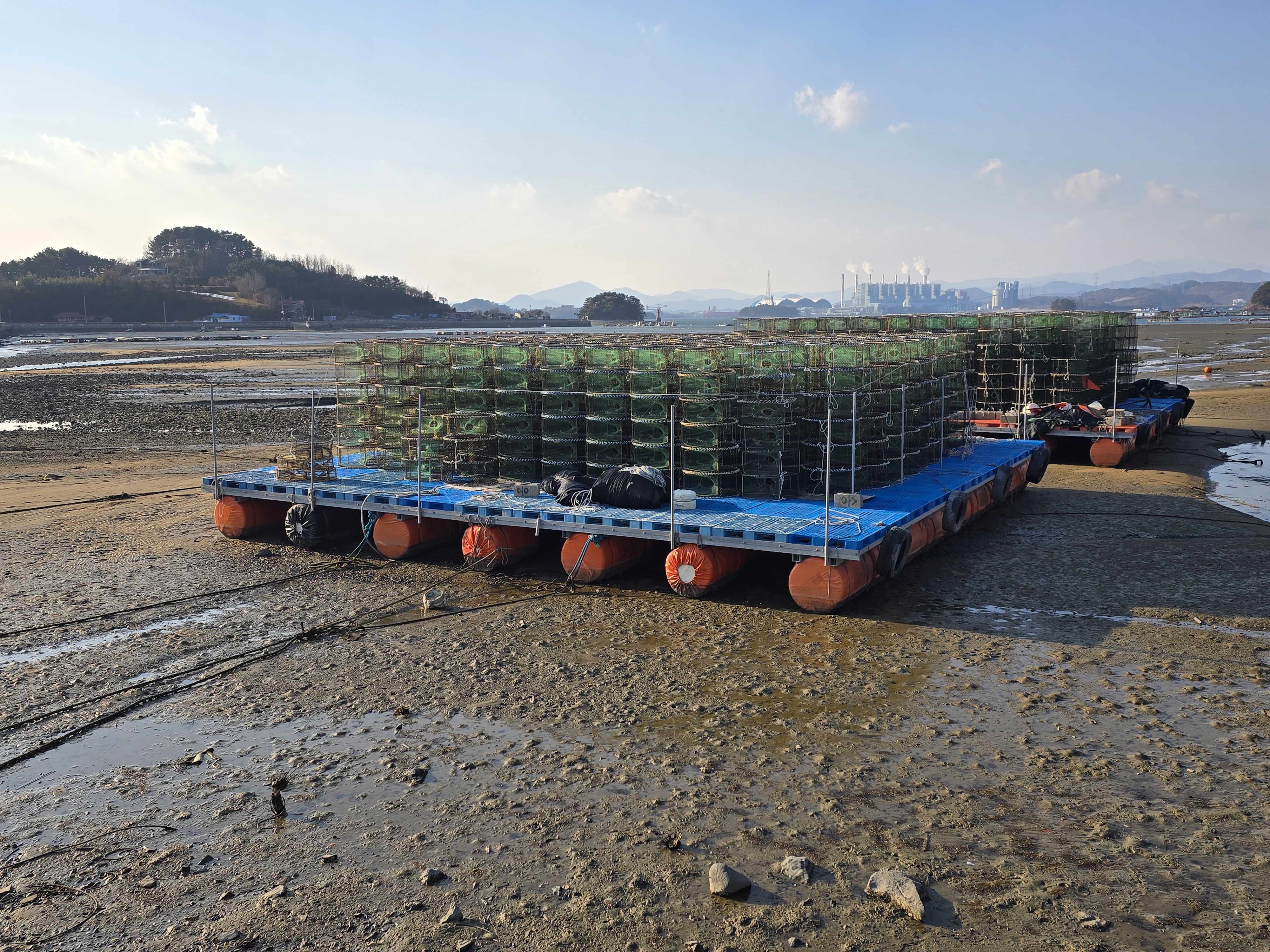 육지에서 제작하여 설치한 뒤 콘크리트로 빈 공간을 채운