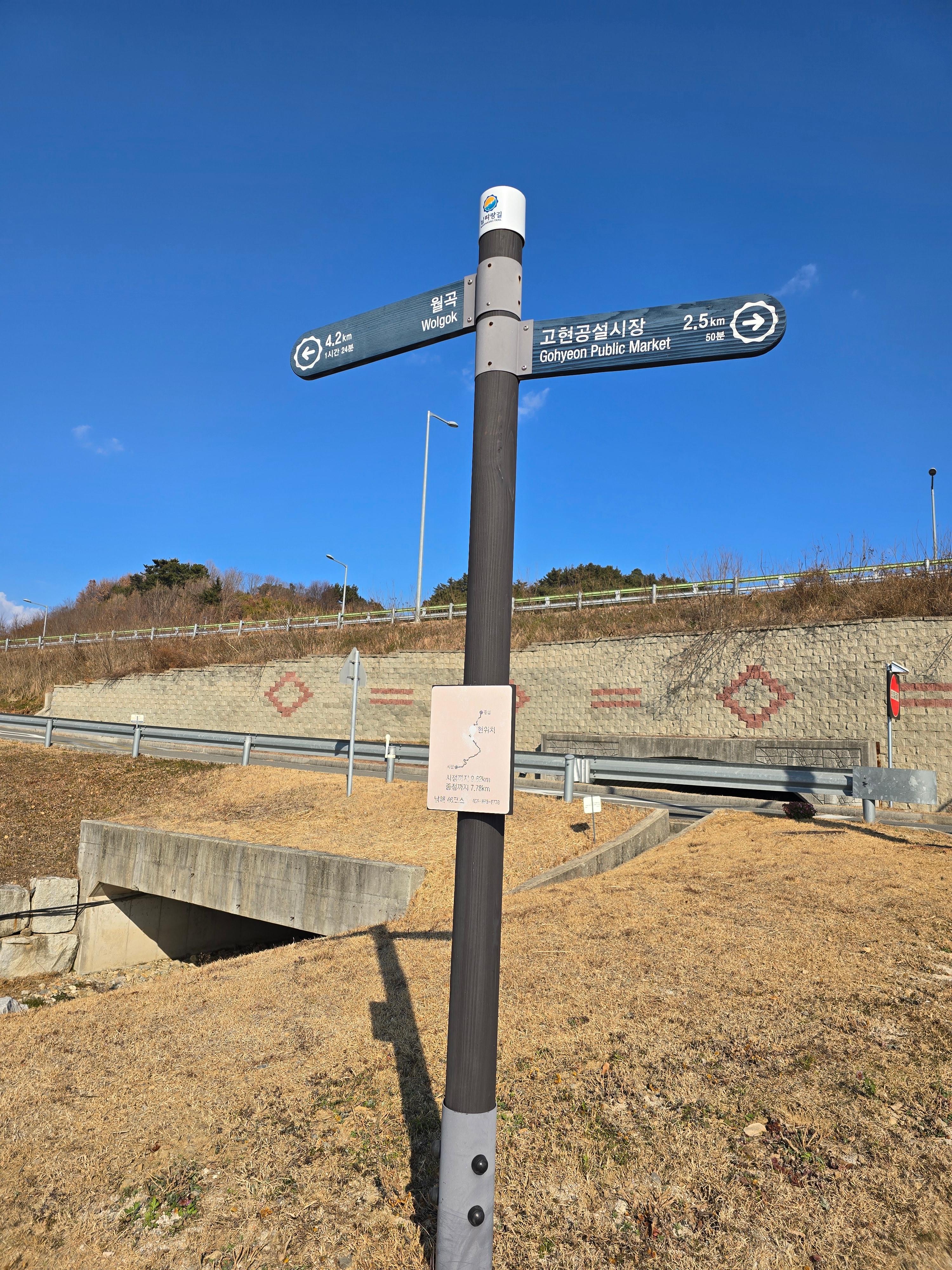 월곡 4.2km와 고현공설시장 2.5km를 가리키고