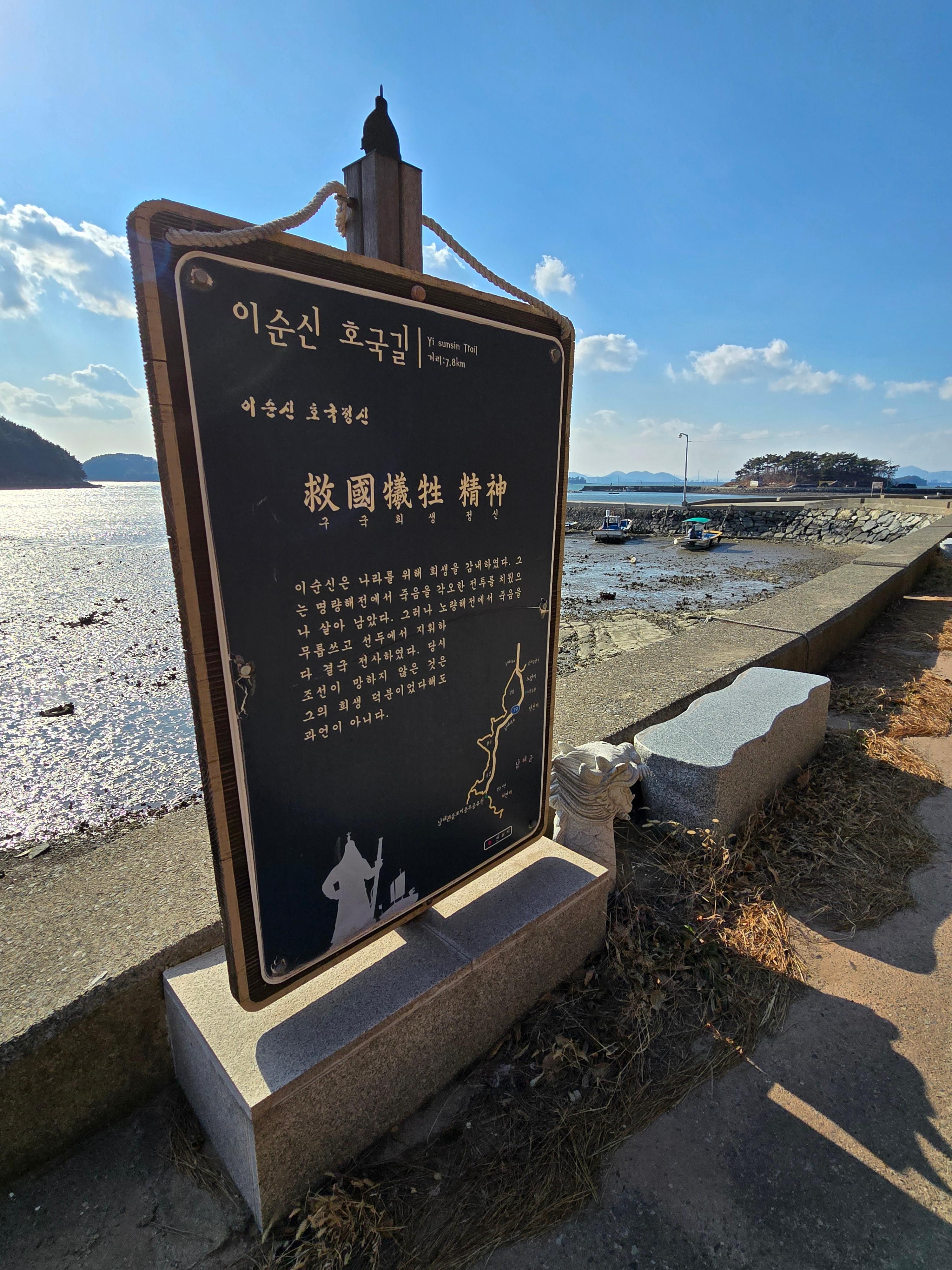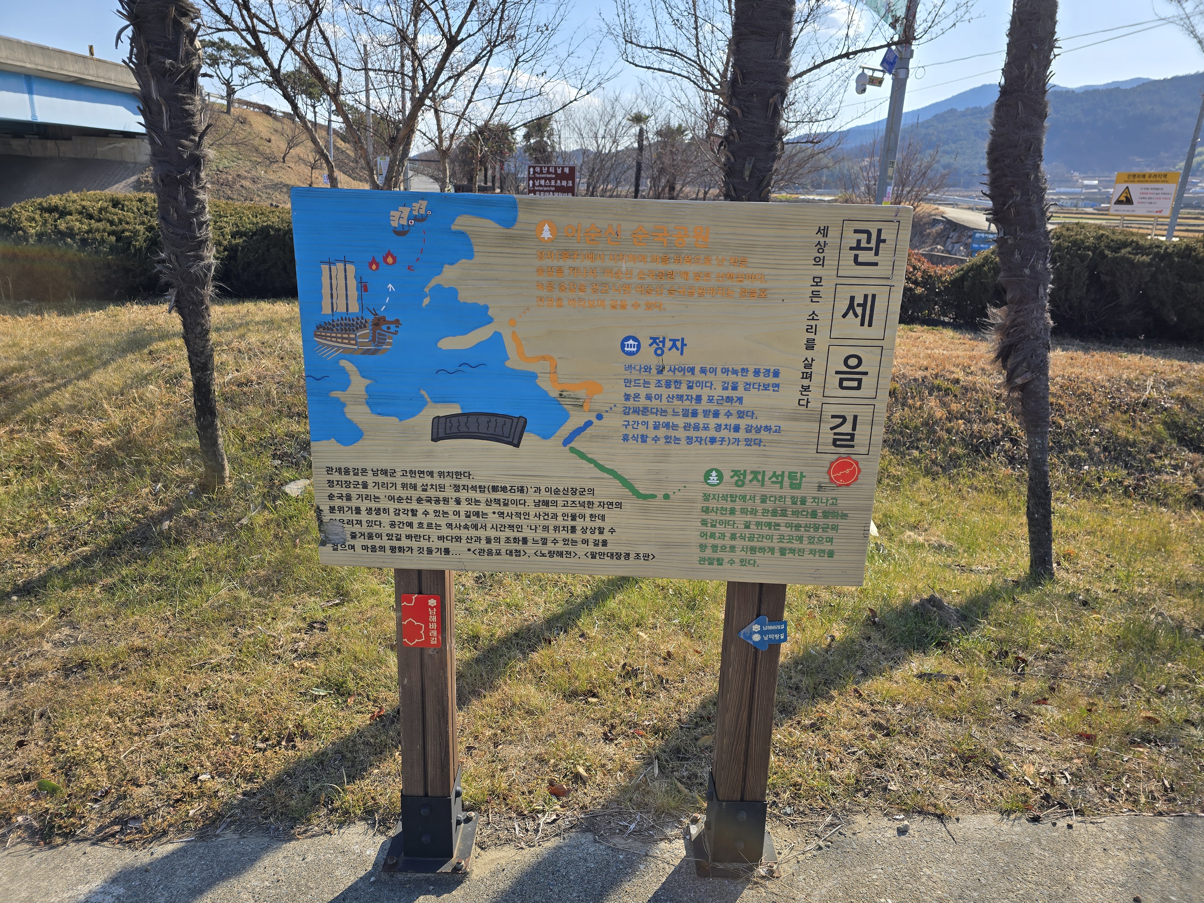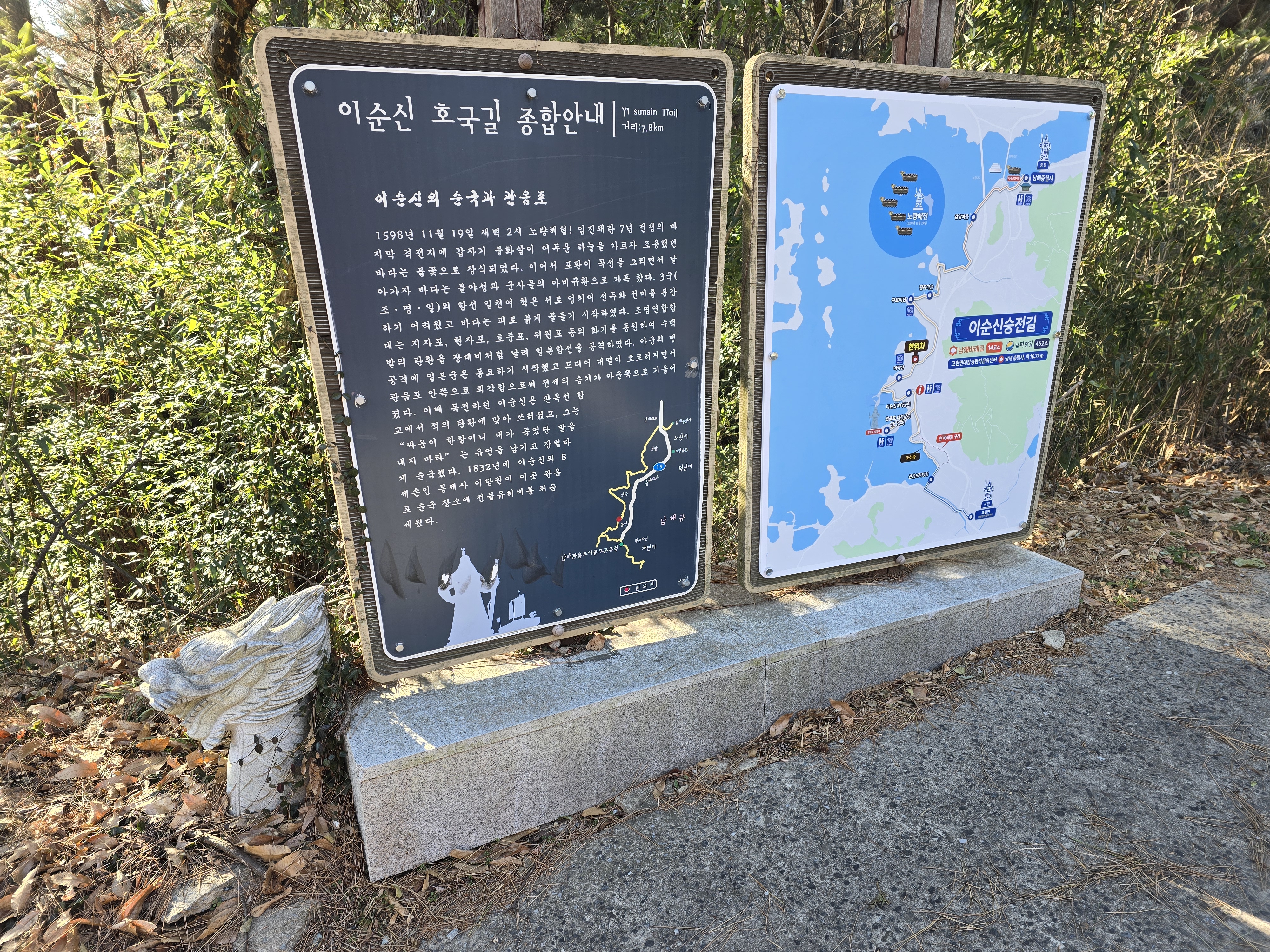 이순신 호국길 종합안내판과 이순신 승전길 안내도가 세워져 있고