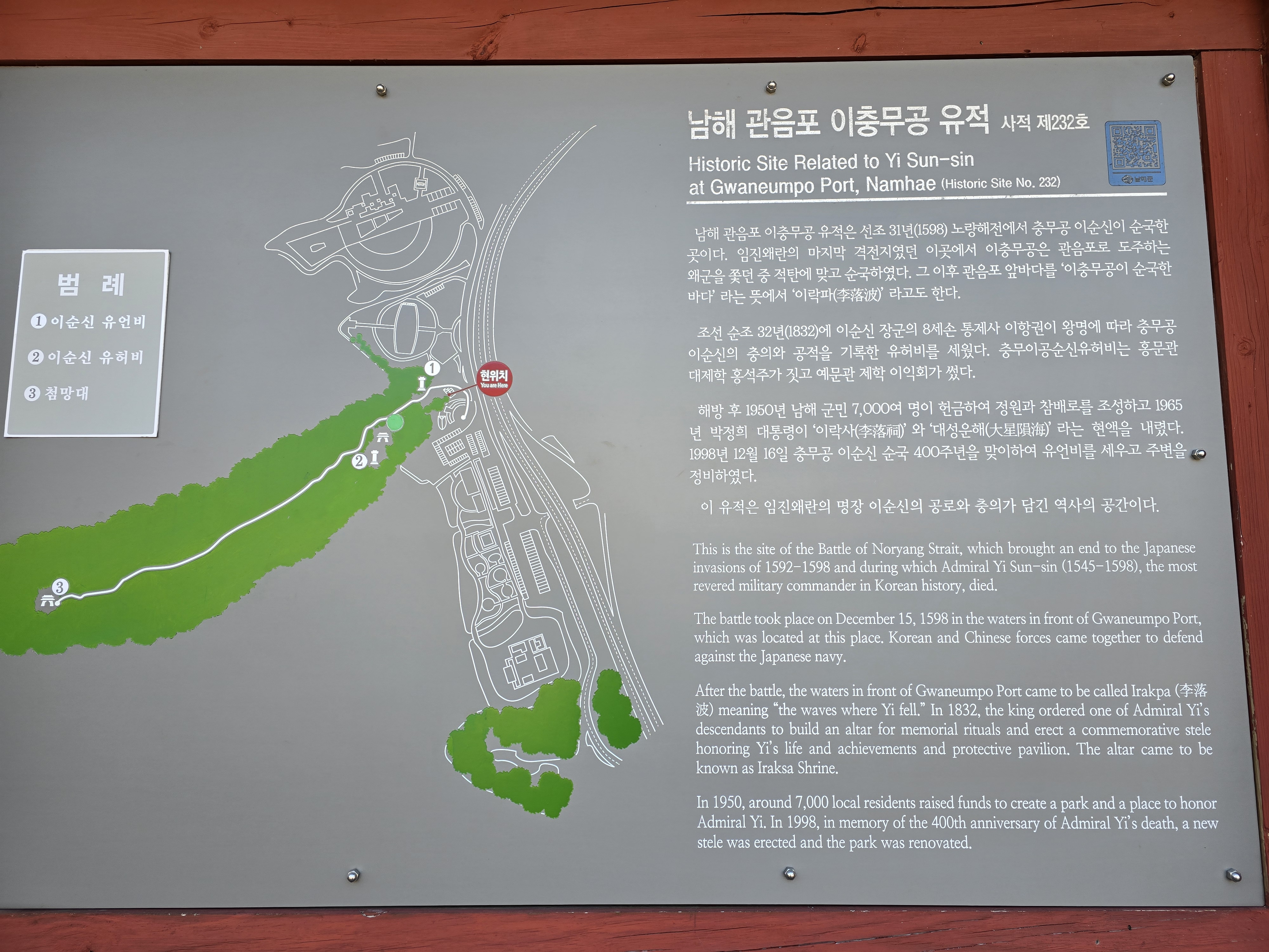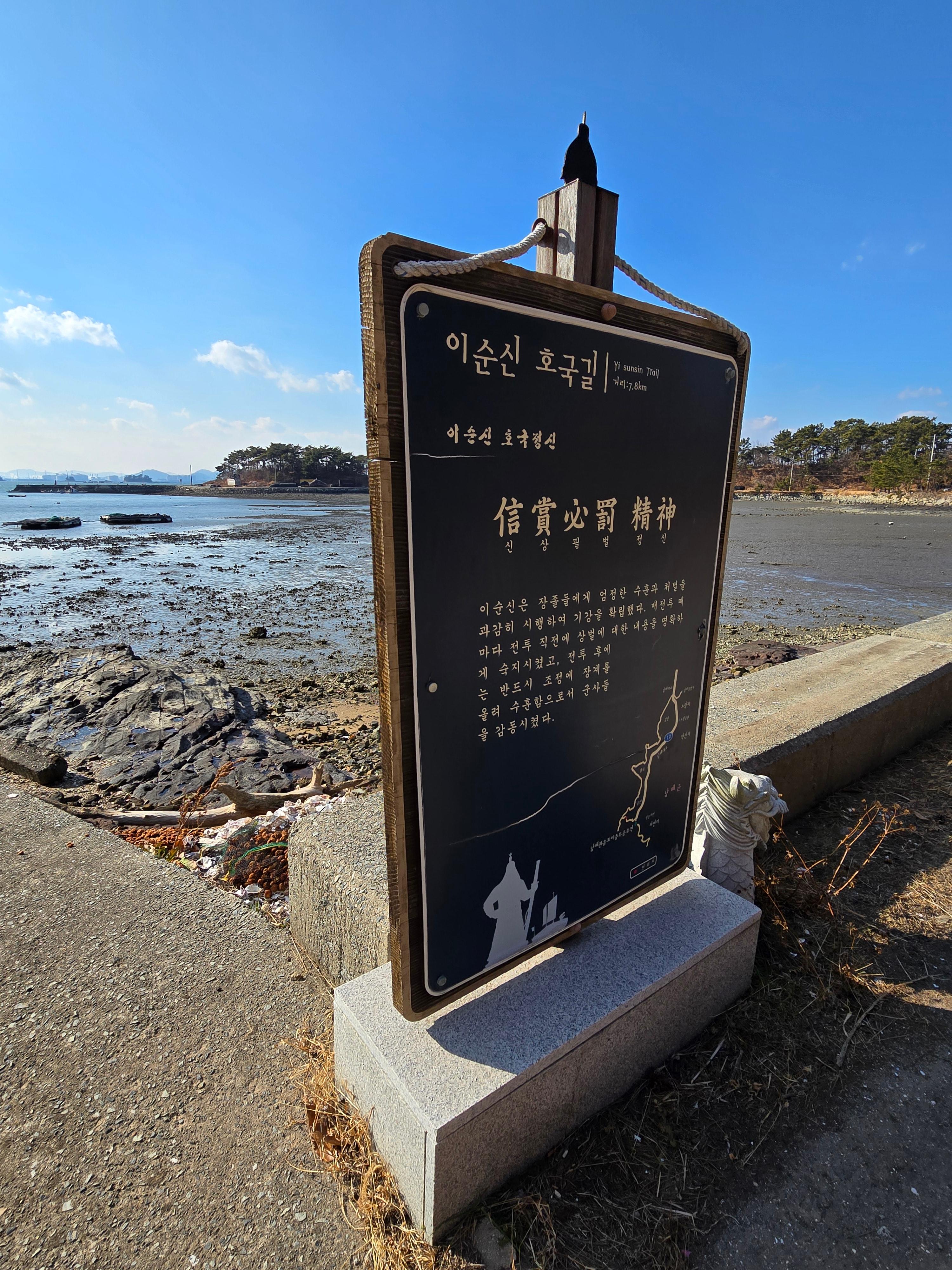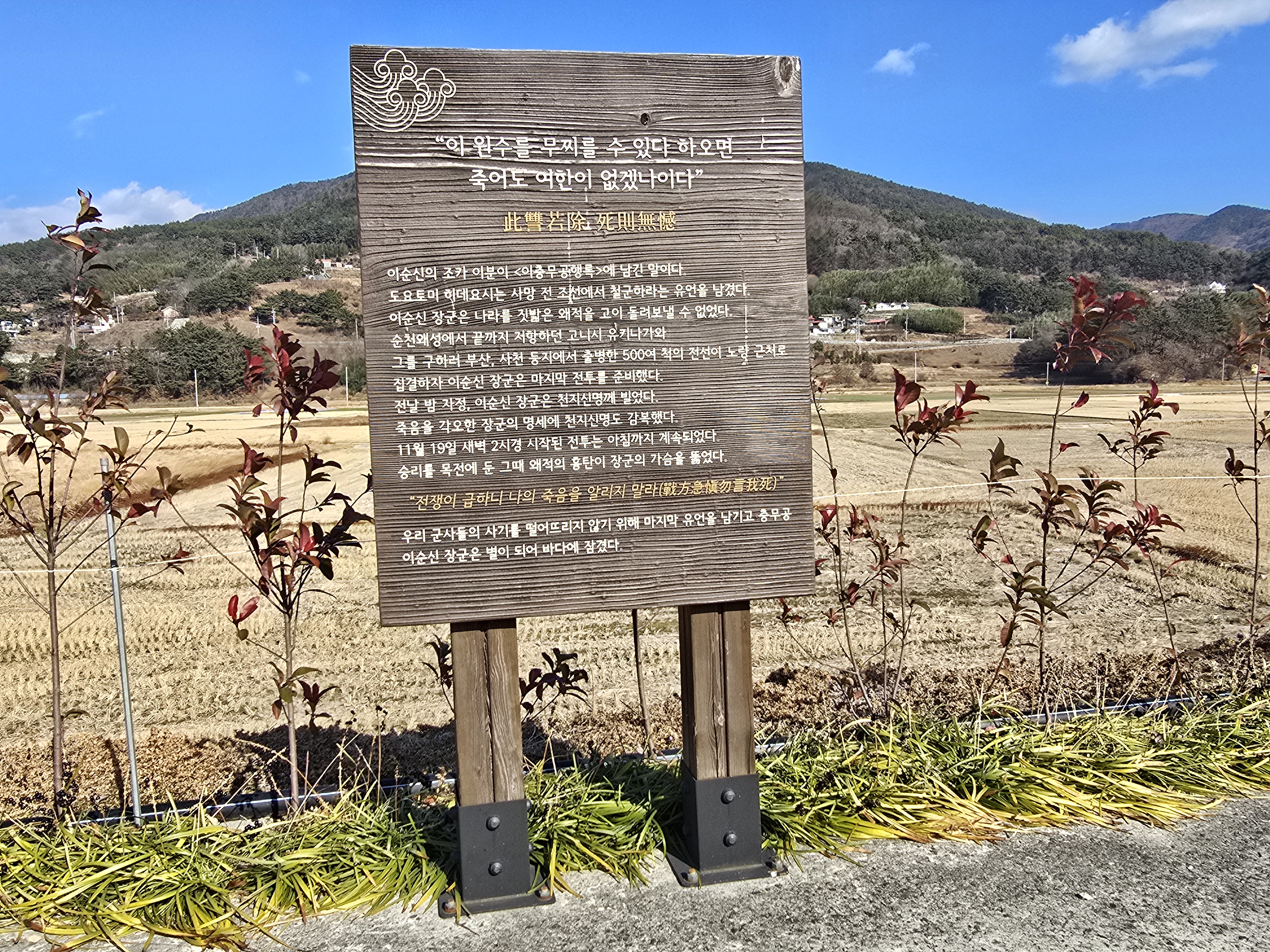 이순신 호국길 종합안내판과 이순신 승전길 안내도가 세워져 있고