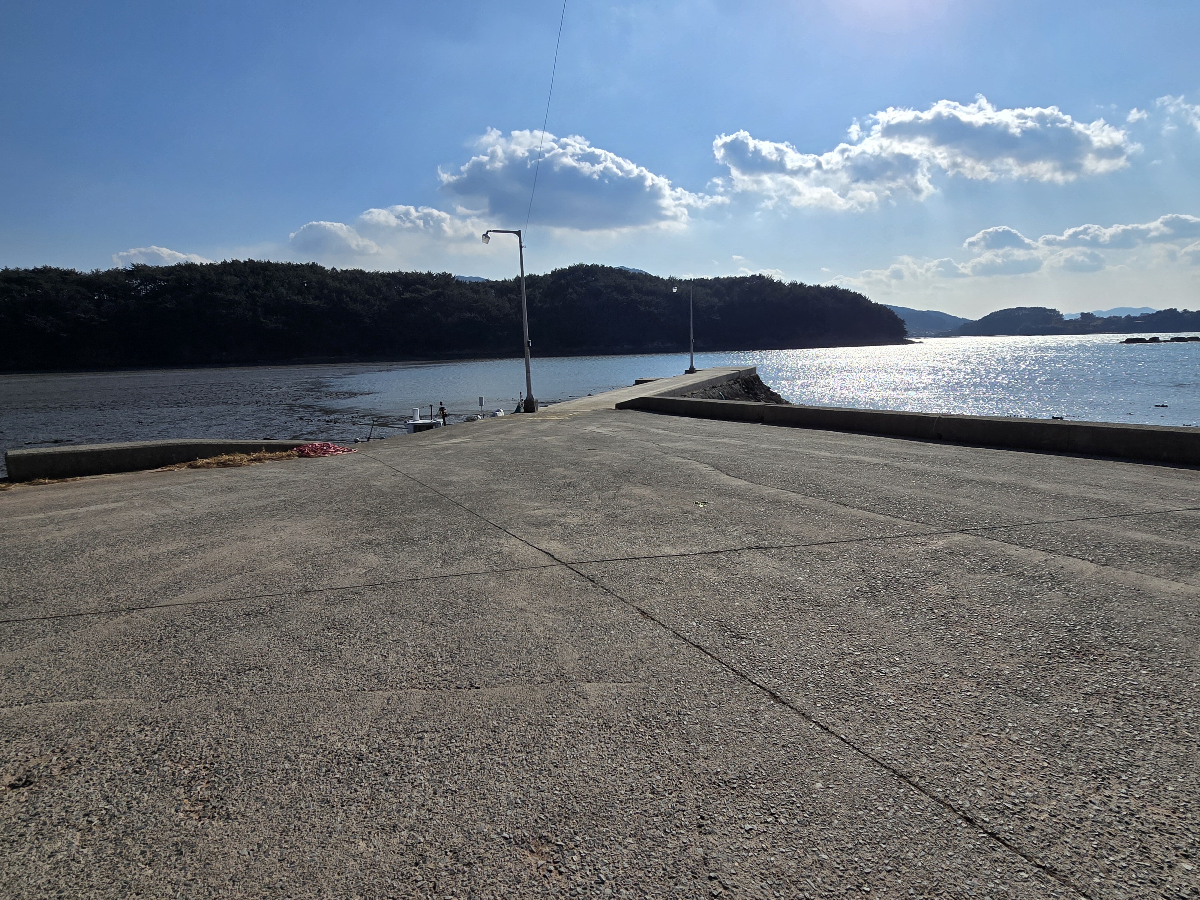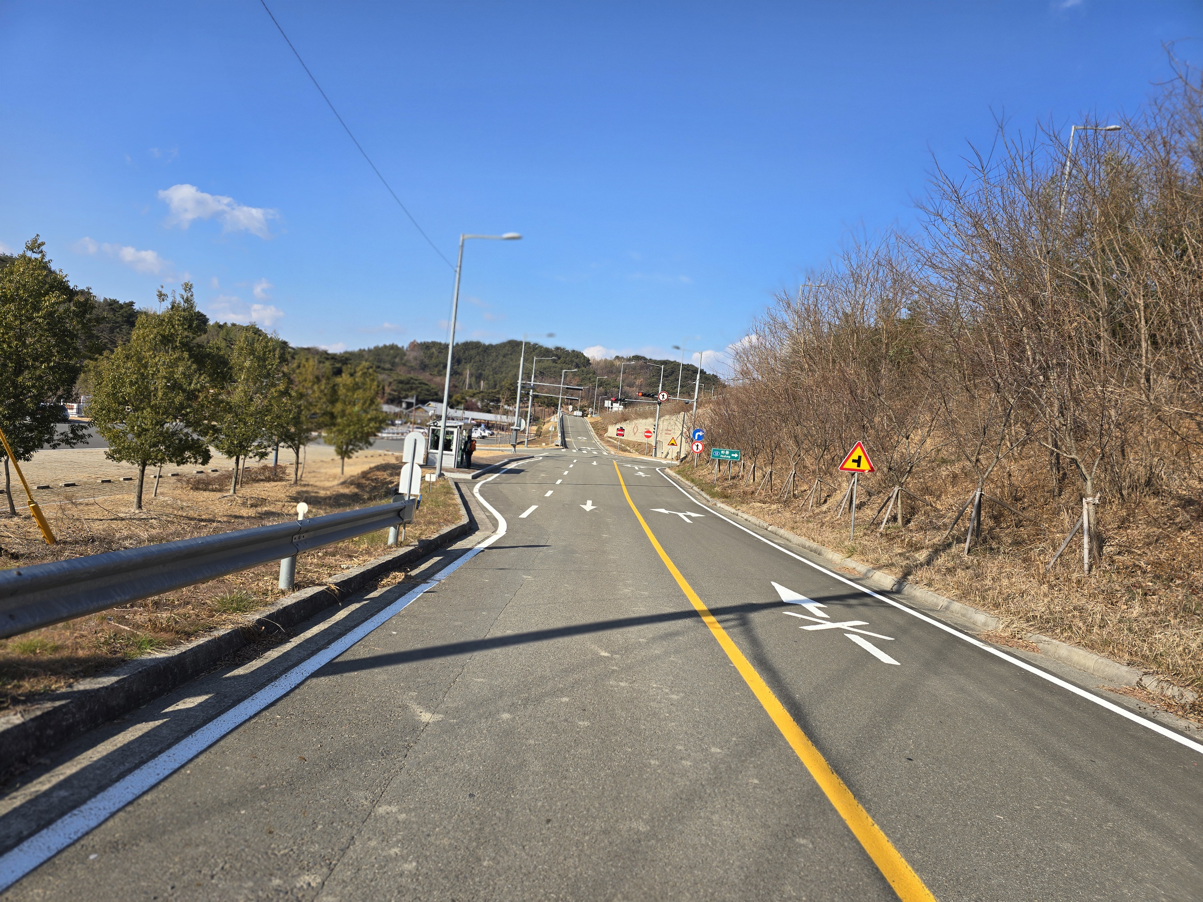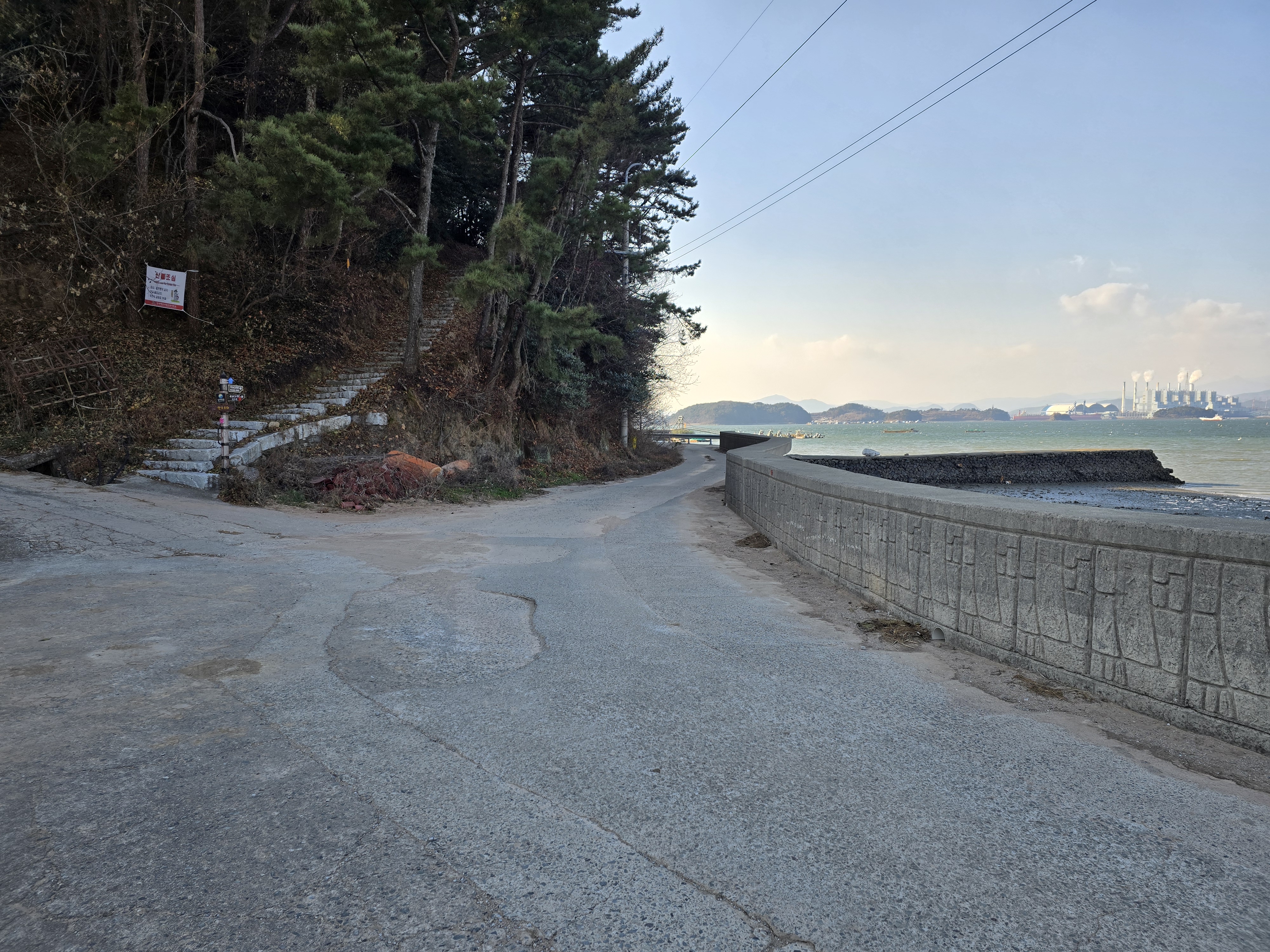 우회전하여 대사리 방조제 아래 도로를 따라 진행하고