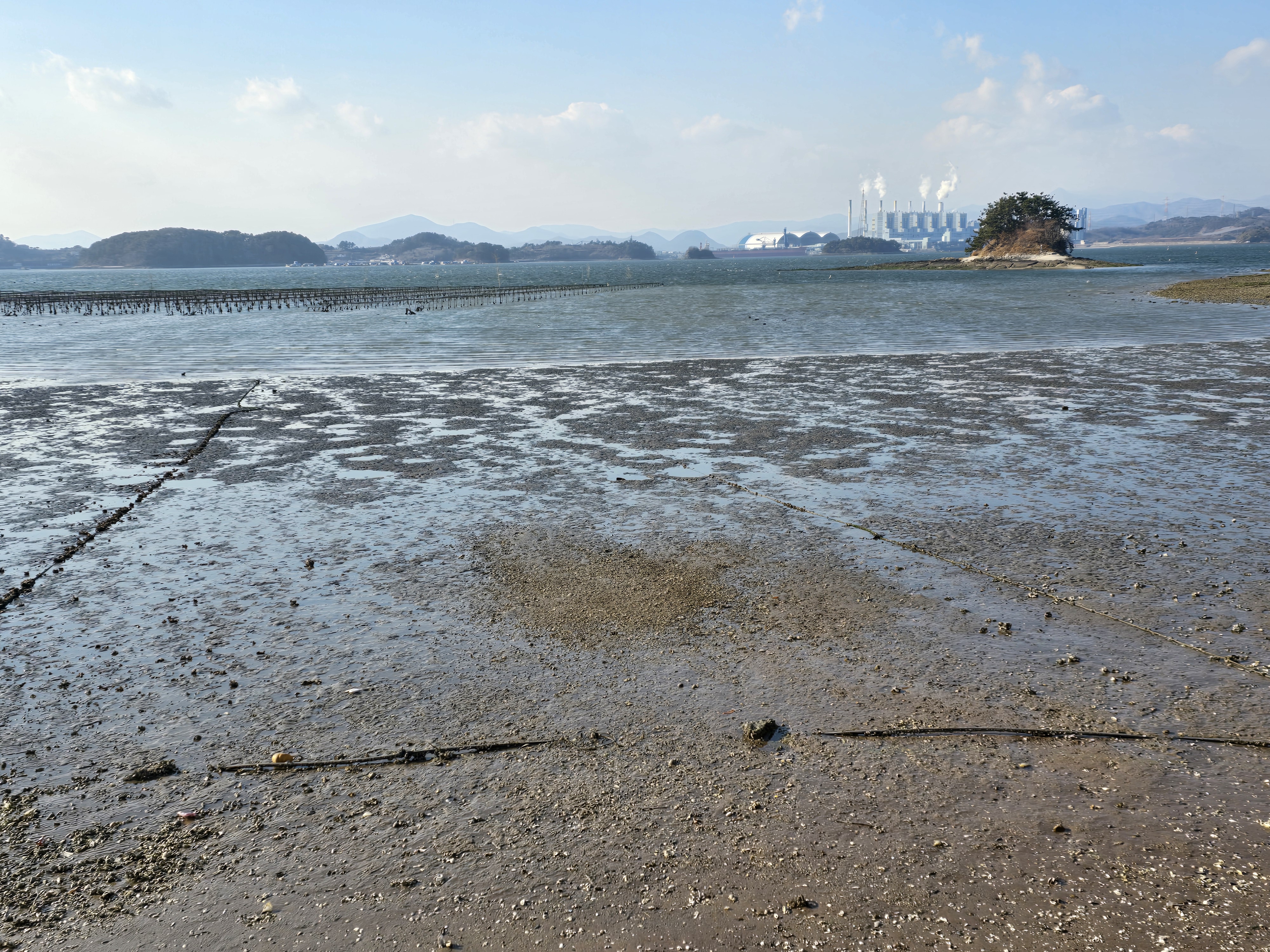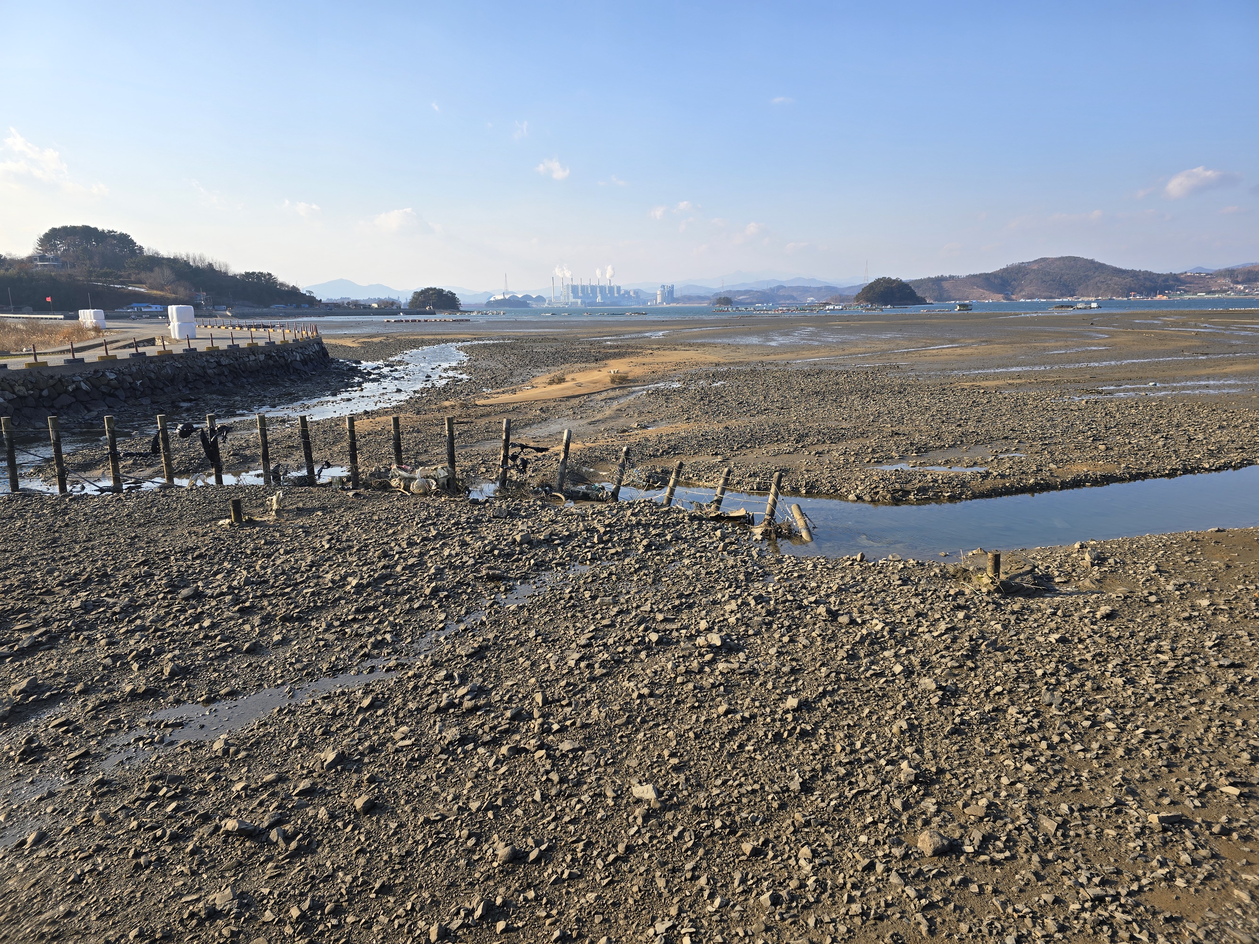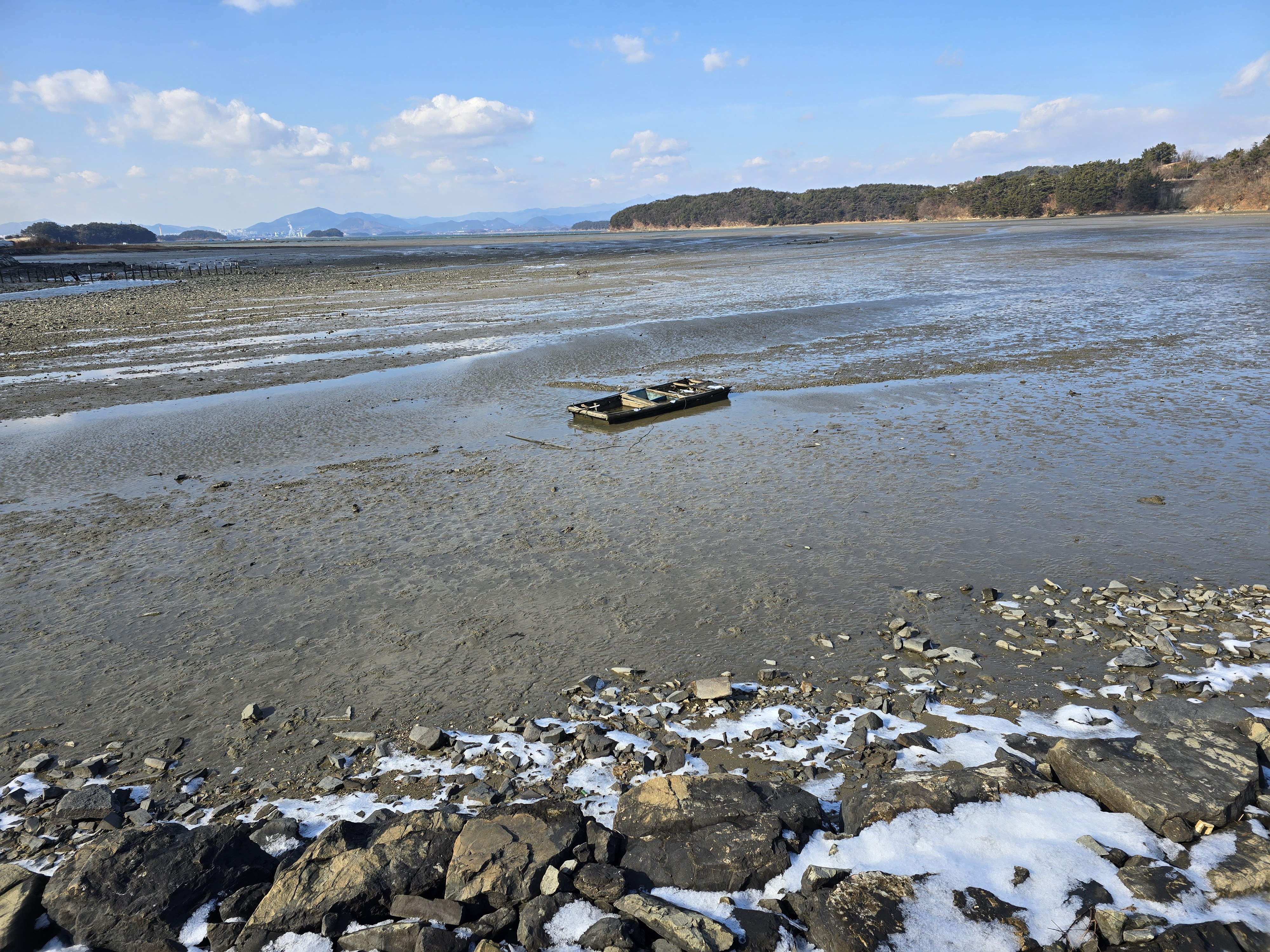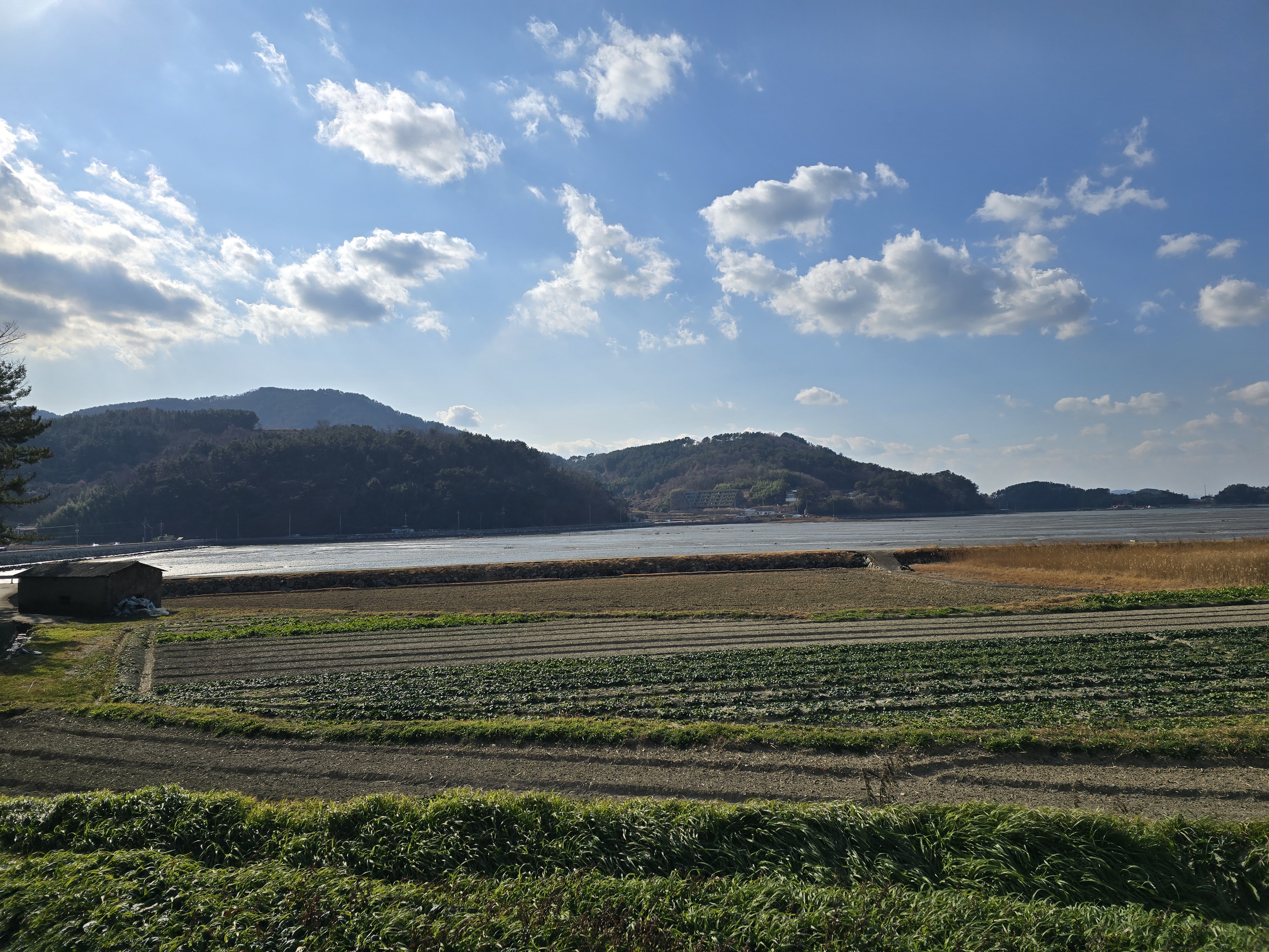 우회전하여 대사리 방조제 아래 도로를 따라 진행하고