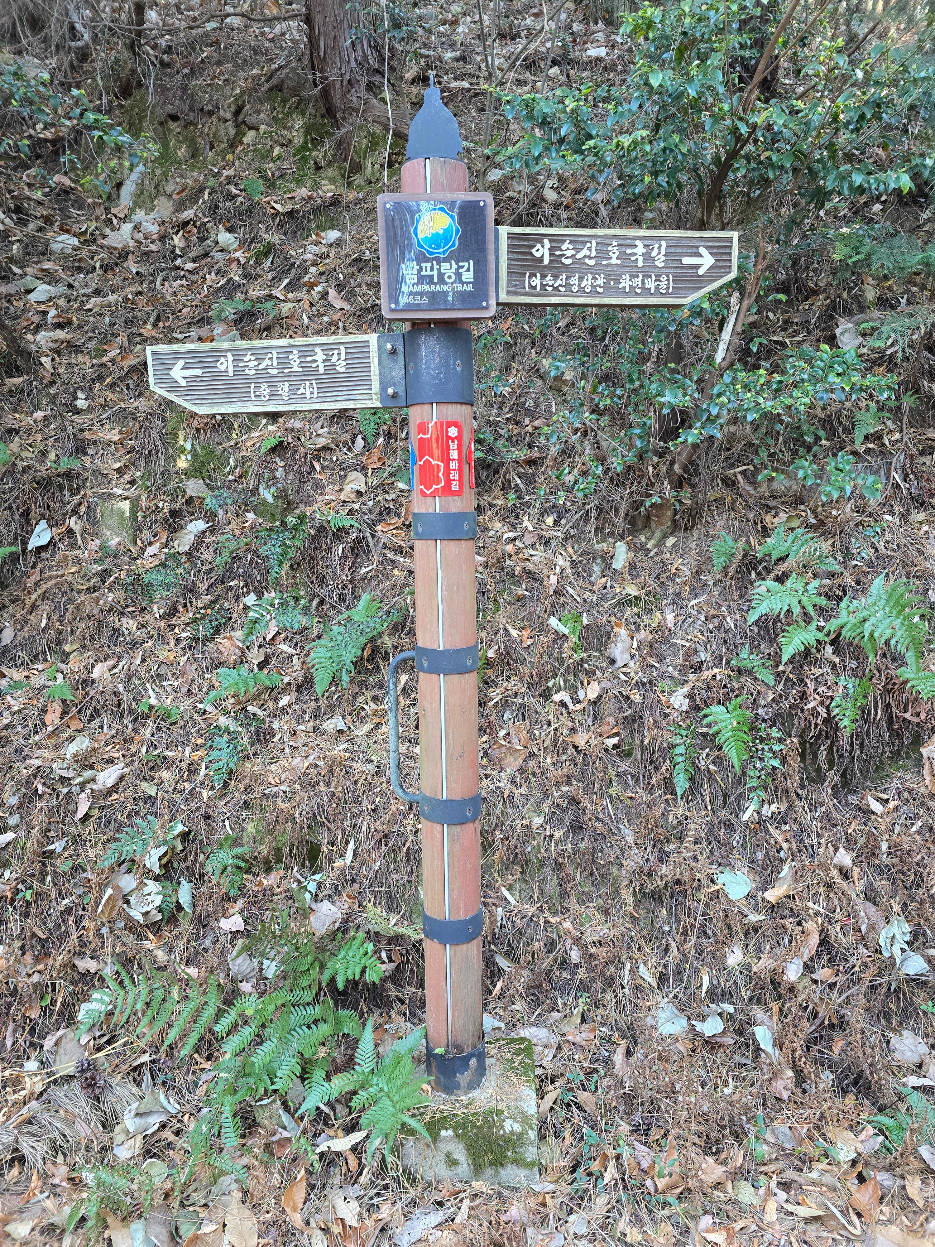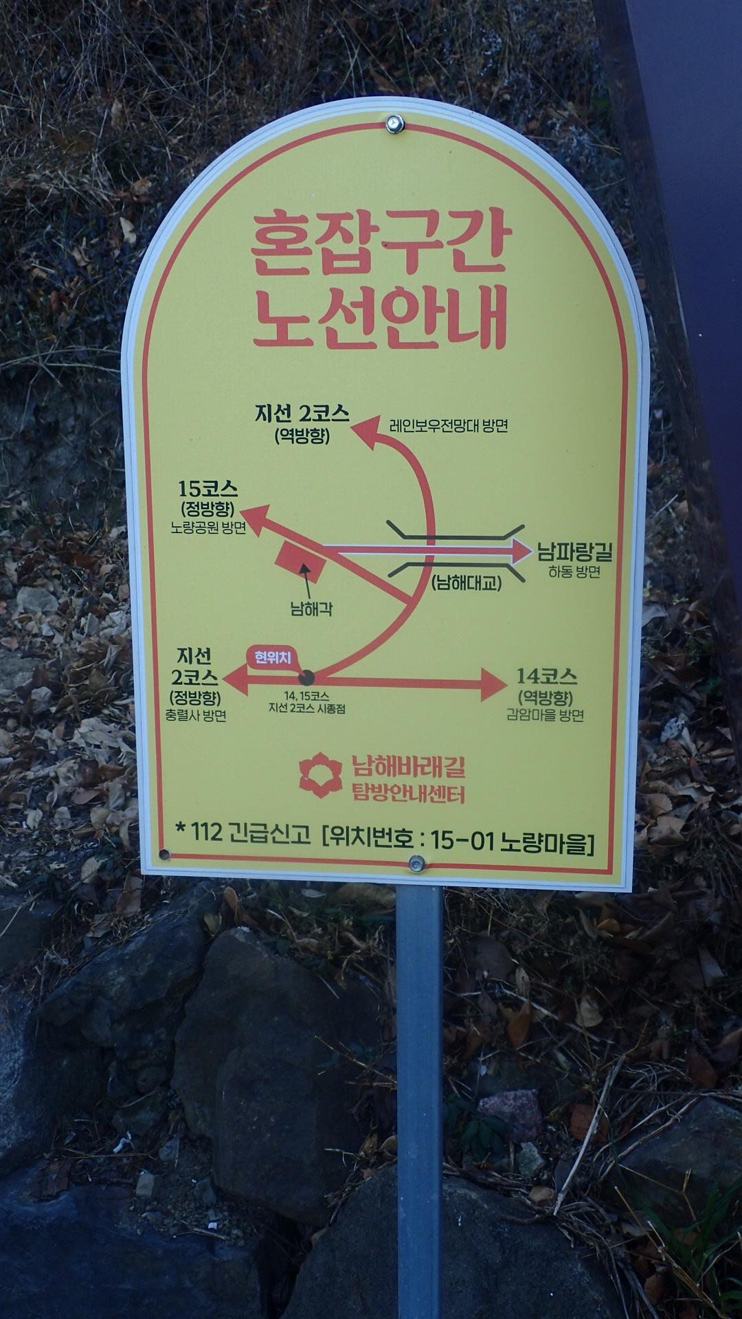 남해바래길 15코스와 남파랑길 46코스는 이곳에서 우회전하여 올라가,