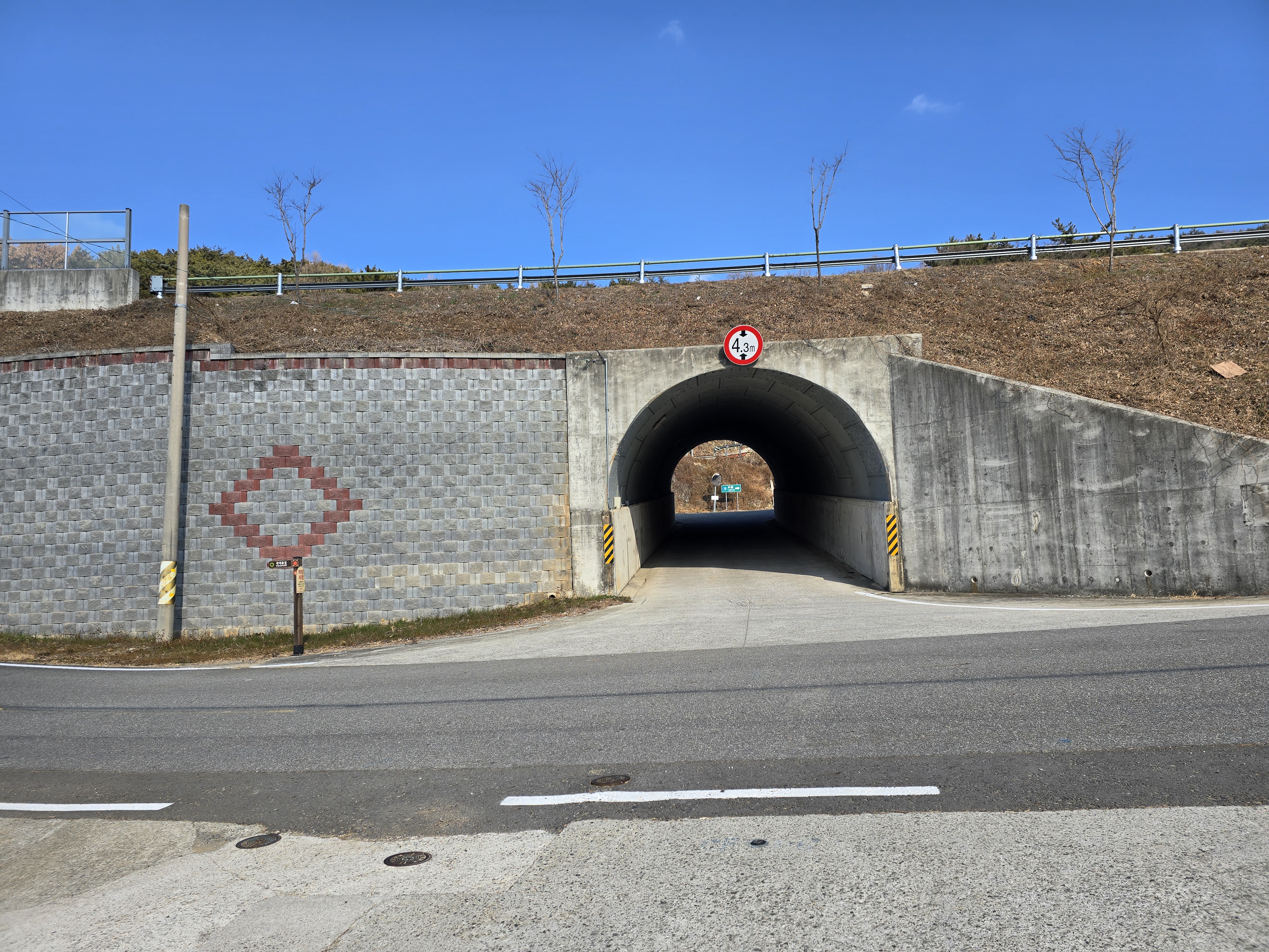 굴다리 바로 앞에서 좌회전하여 옛 국도 19호선(관세음길)을 따라 진행하고