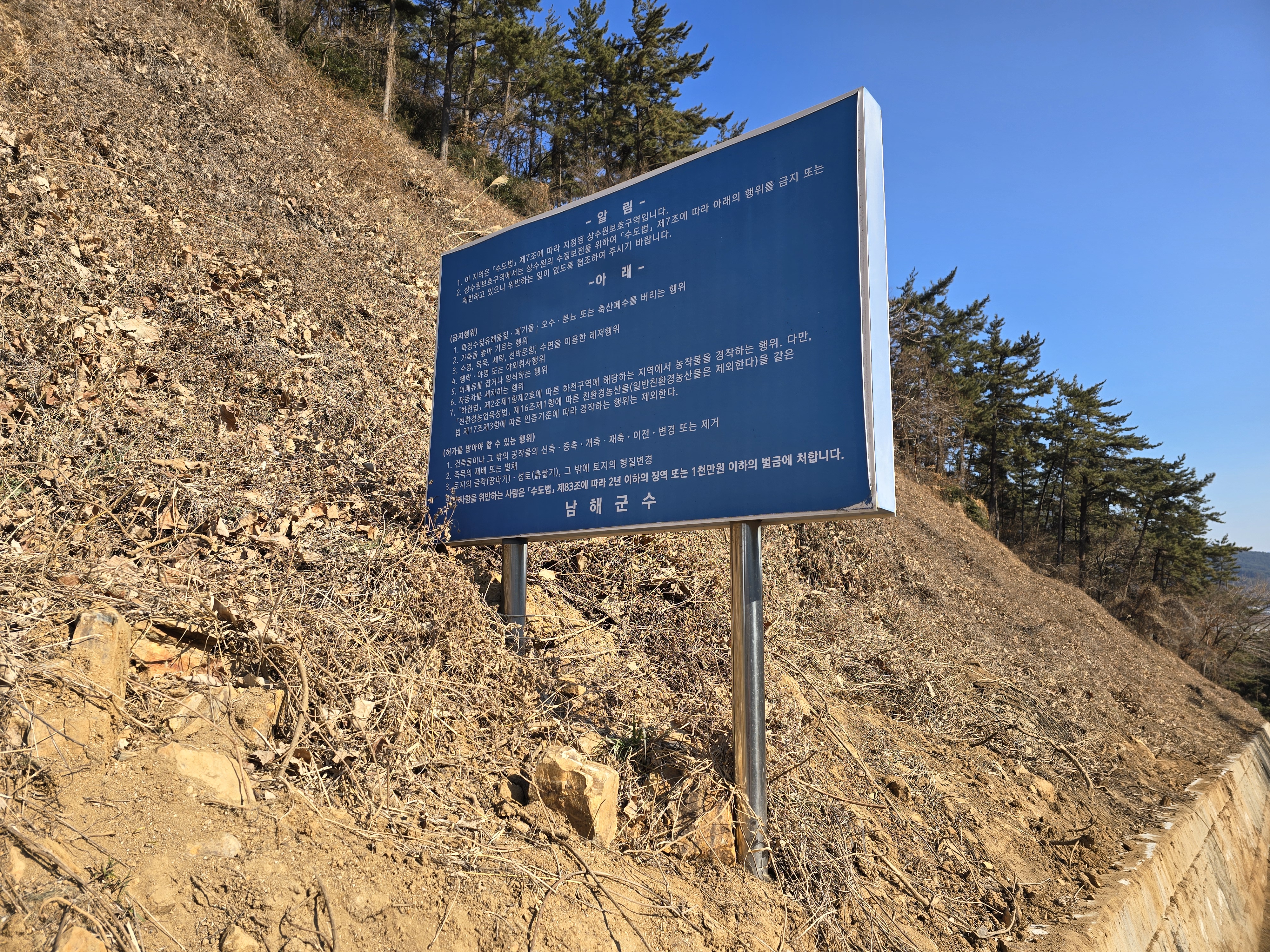 남해바래길 14코스(이순신호국길) 종점이자 15코스(구두산목장길) 시작점으로,