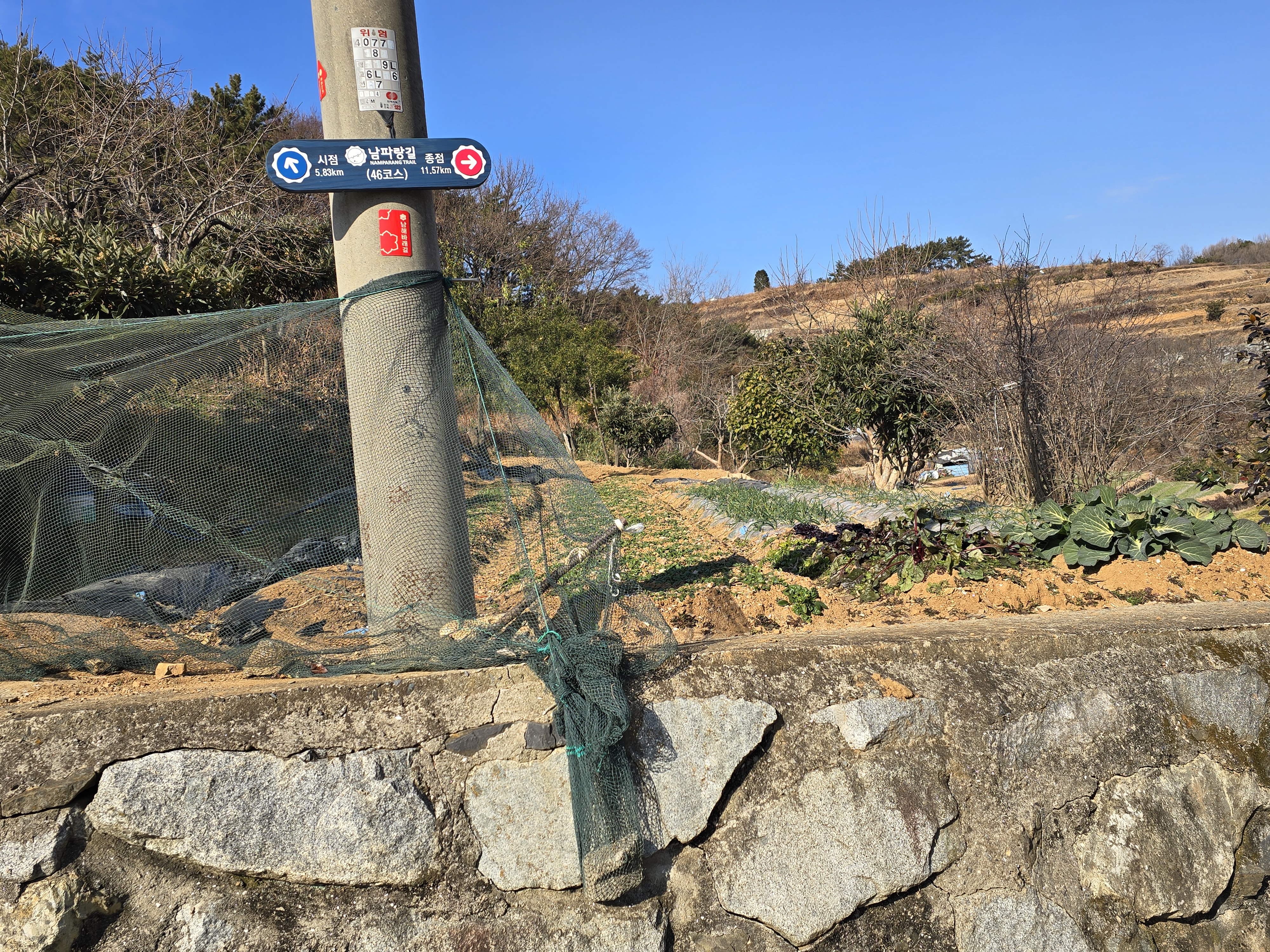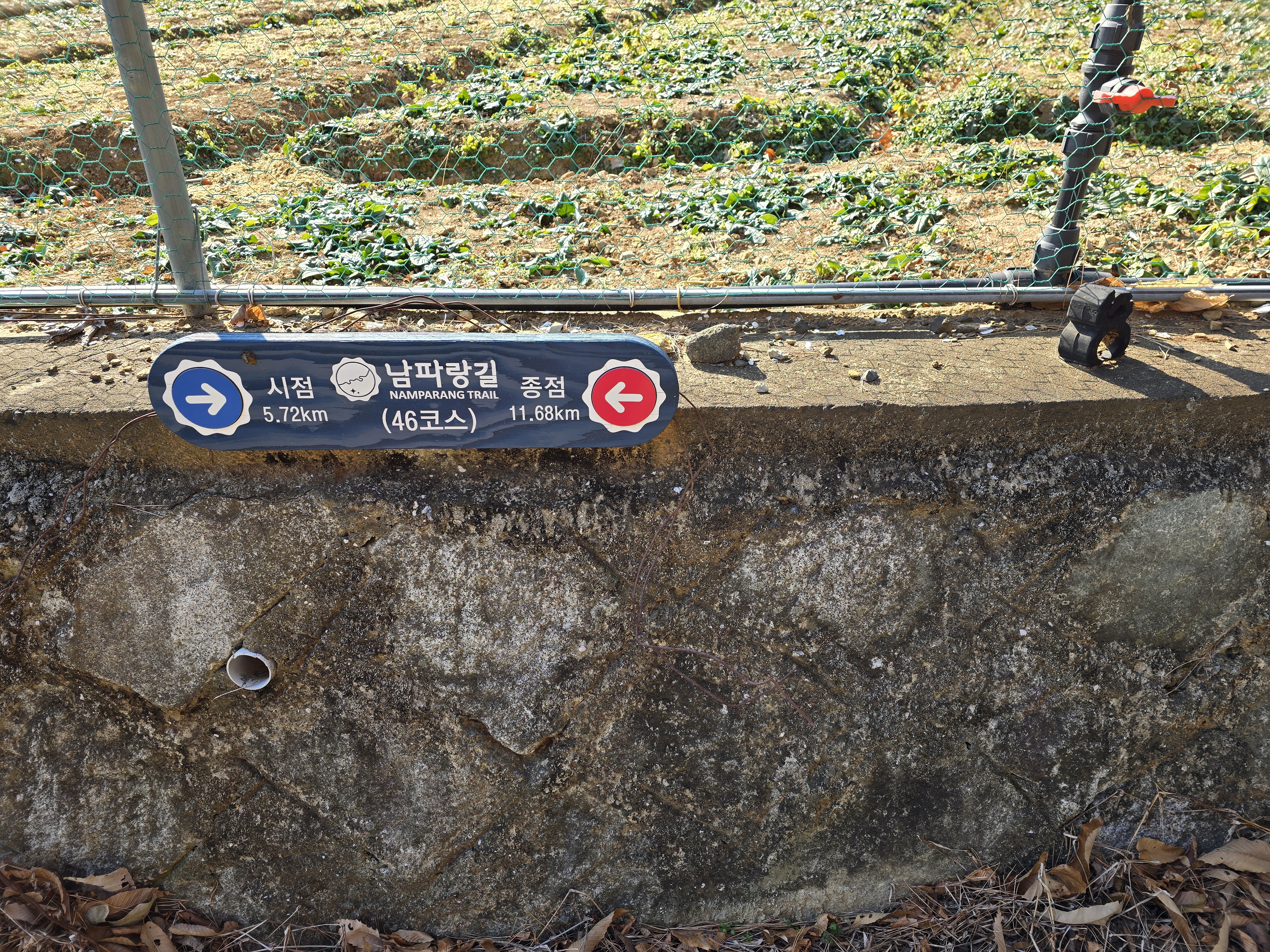 남파랑길 46코스 시점 8.67km와 종점 8.73km를 가리키는데,