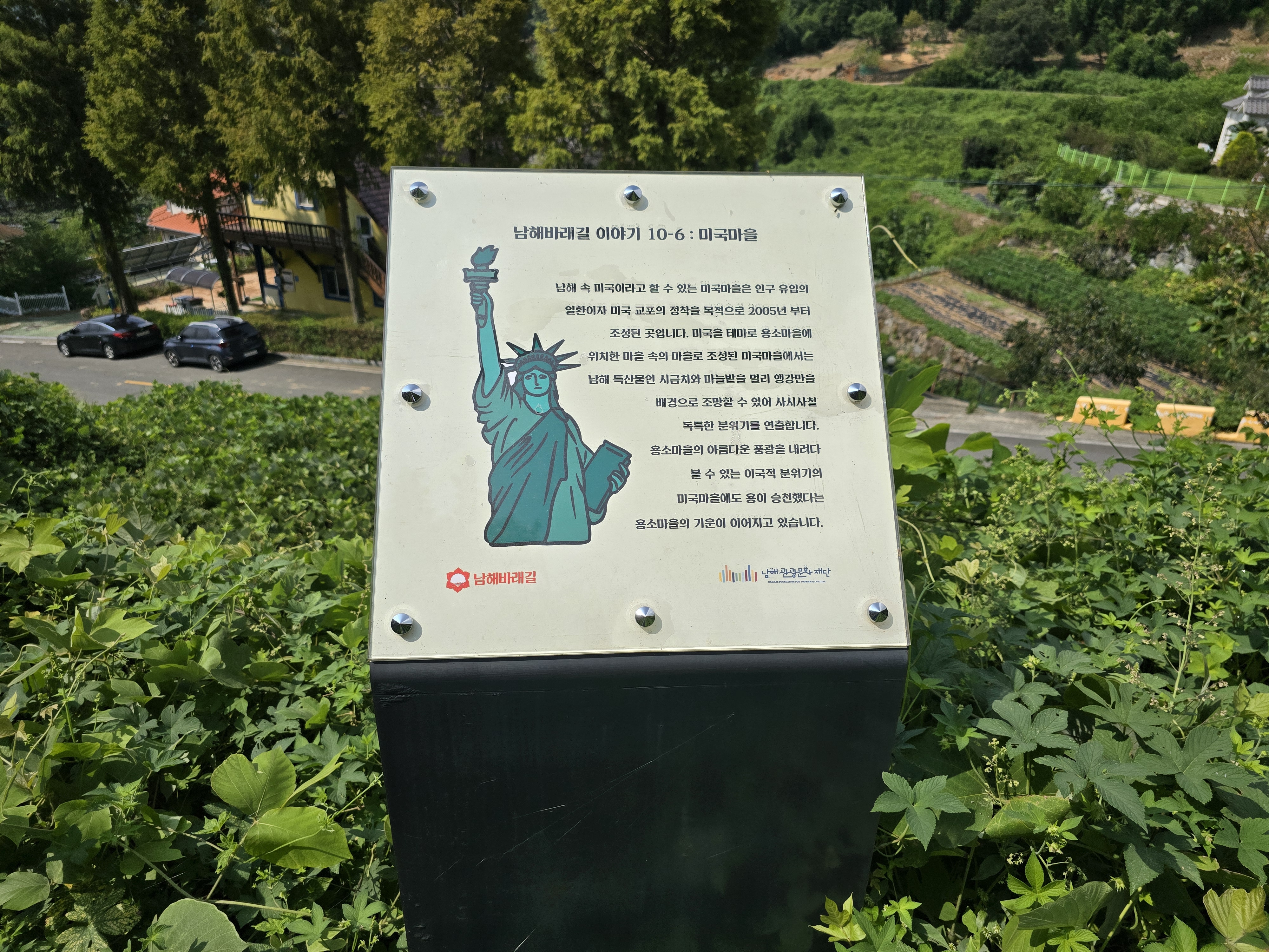 앵강만을 내려다보는 임도와 임도 끝에서 만나는 미국마을은