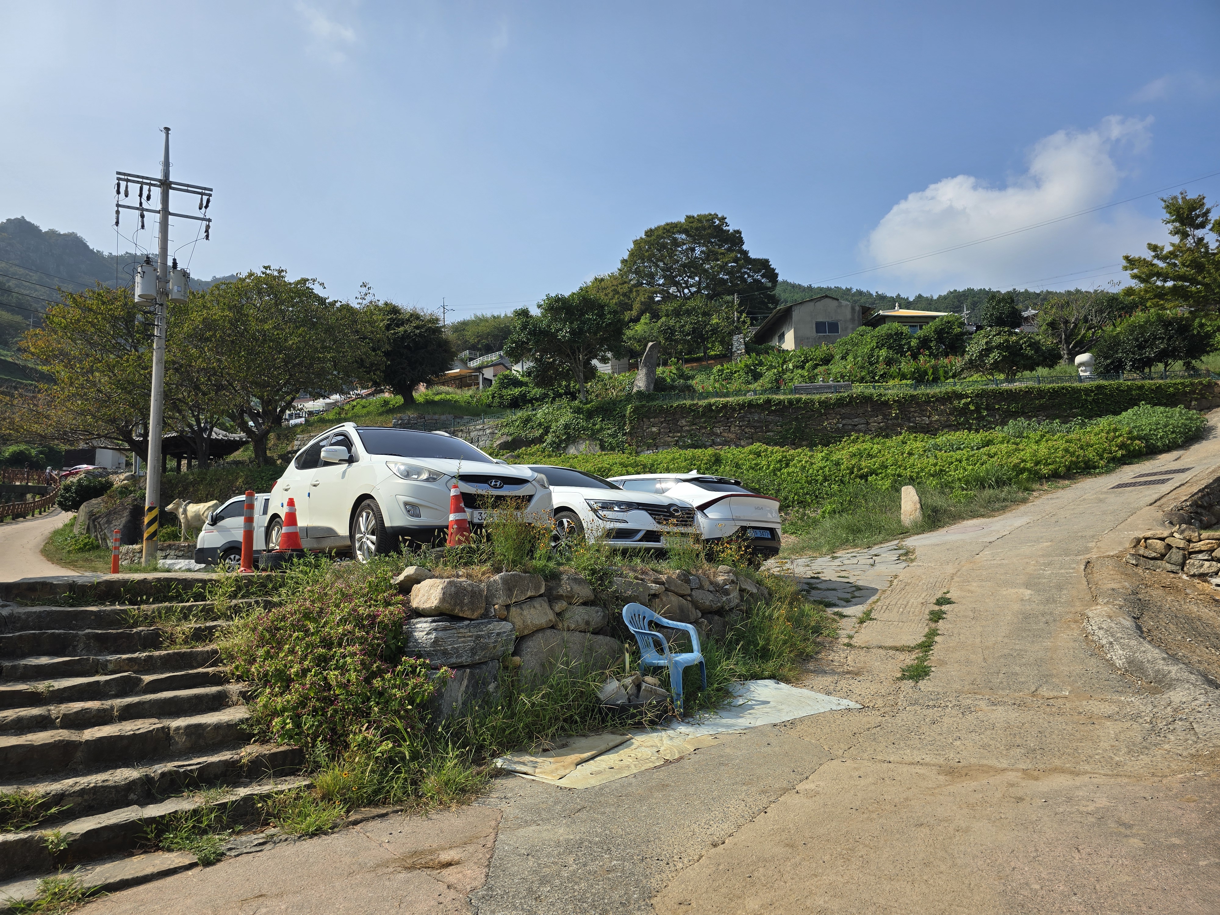 두곡방파제 앞에서 우회전하여 재미들펜션 쪽으로 나아가고