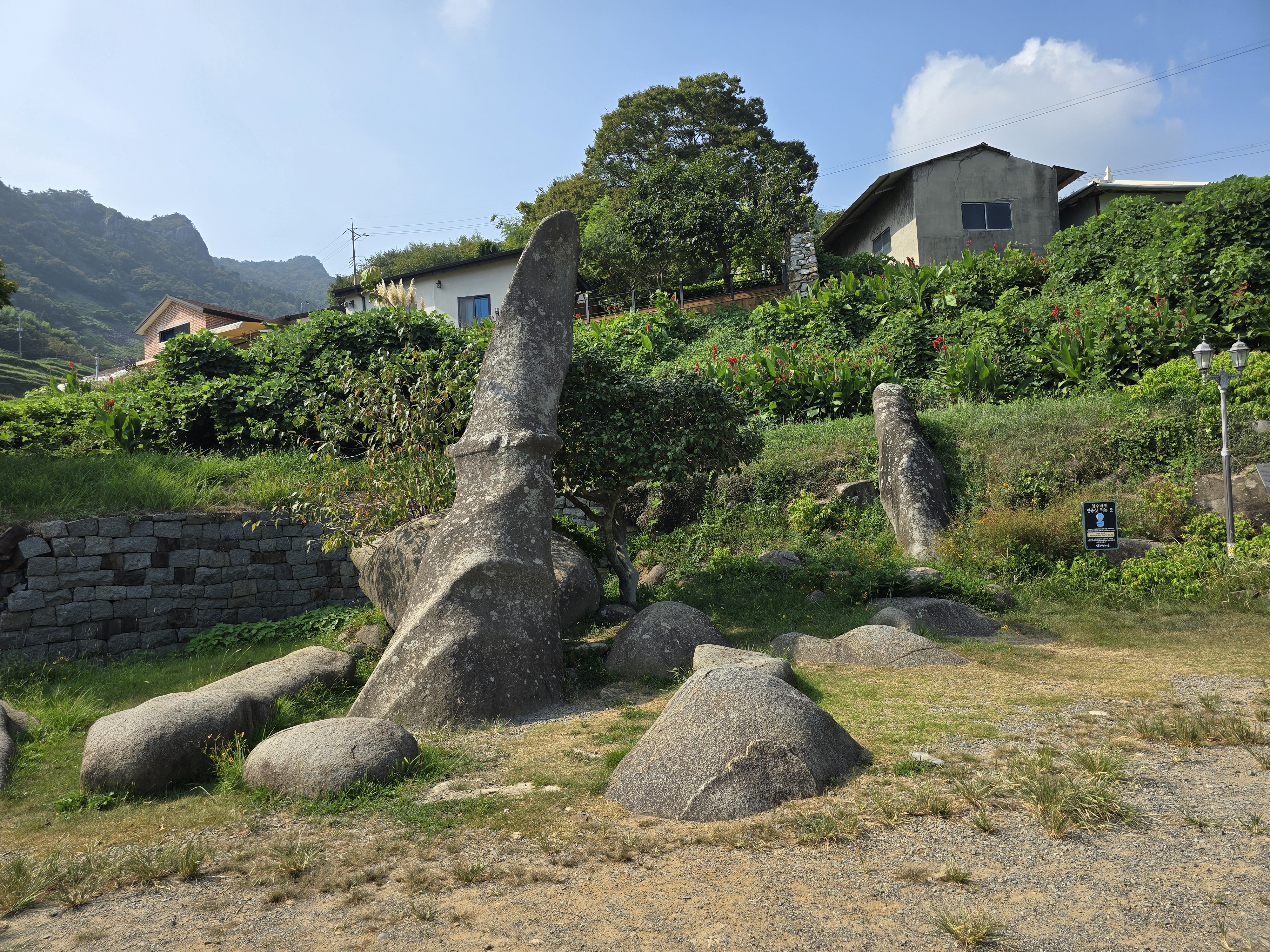 바로 위 정자(육각정) 오른쪽에 명물 암수바위가 자리 잡고 있고