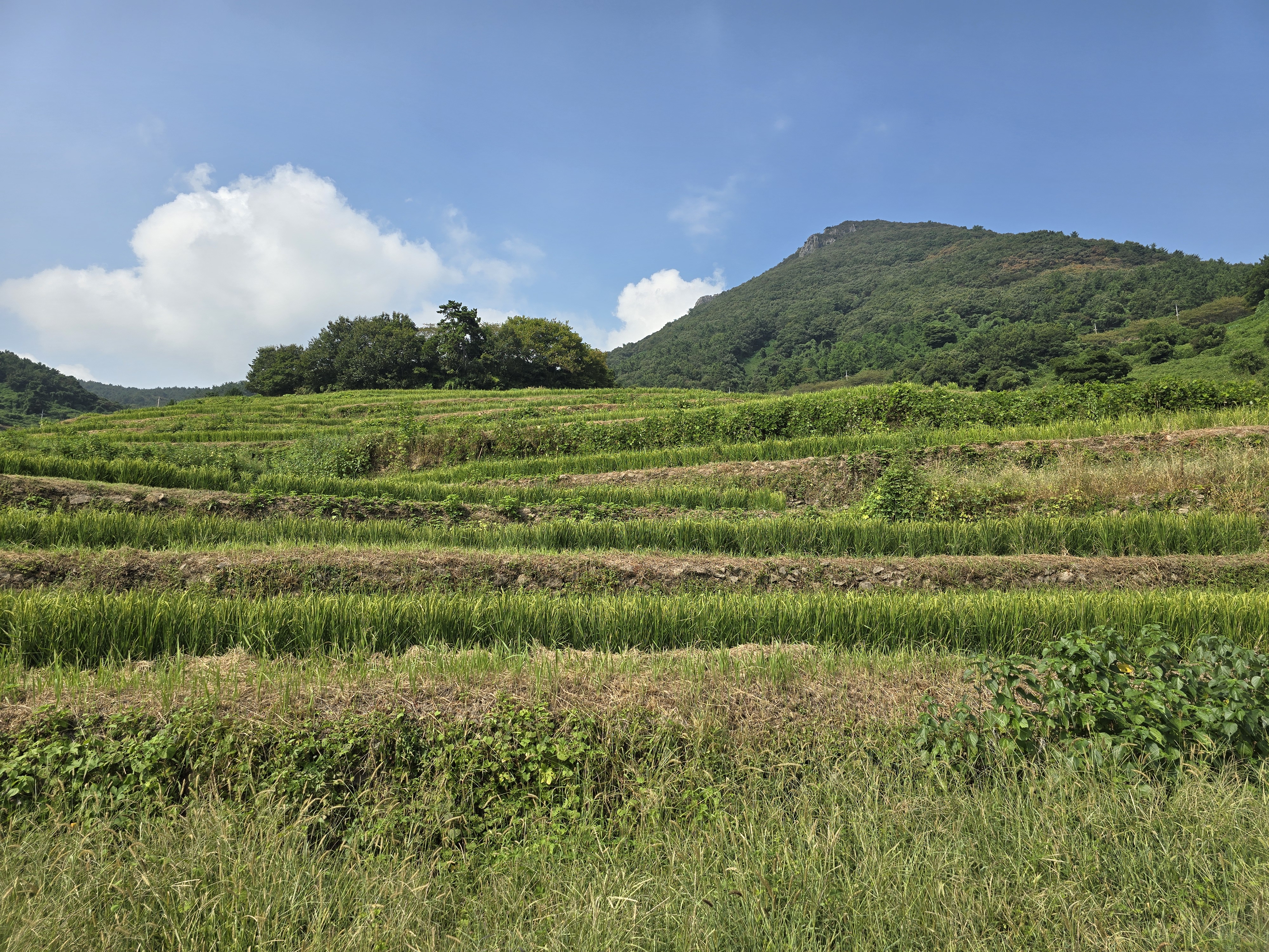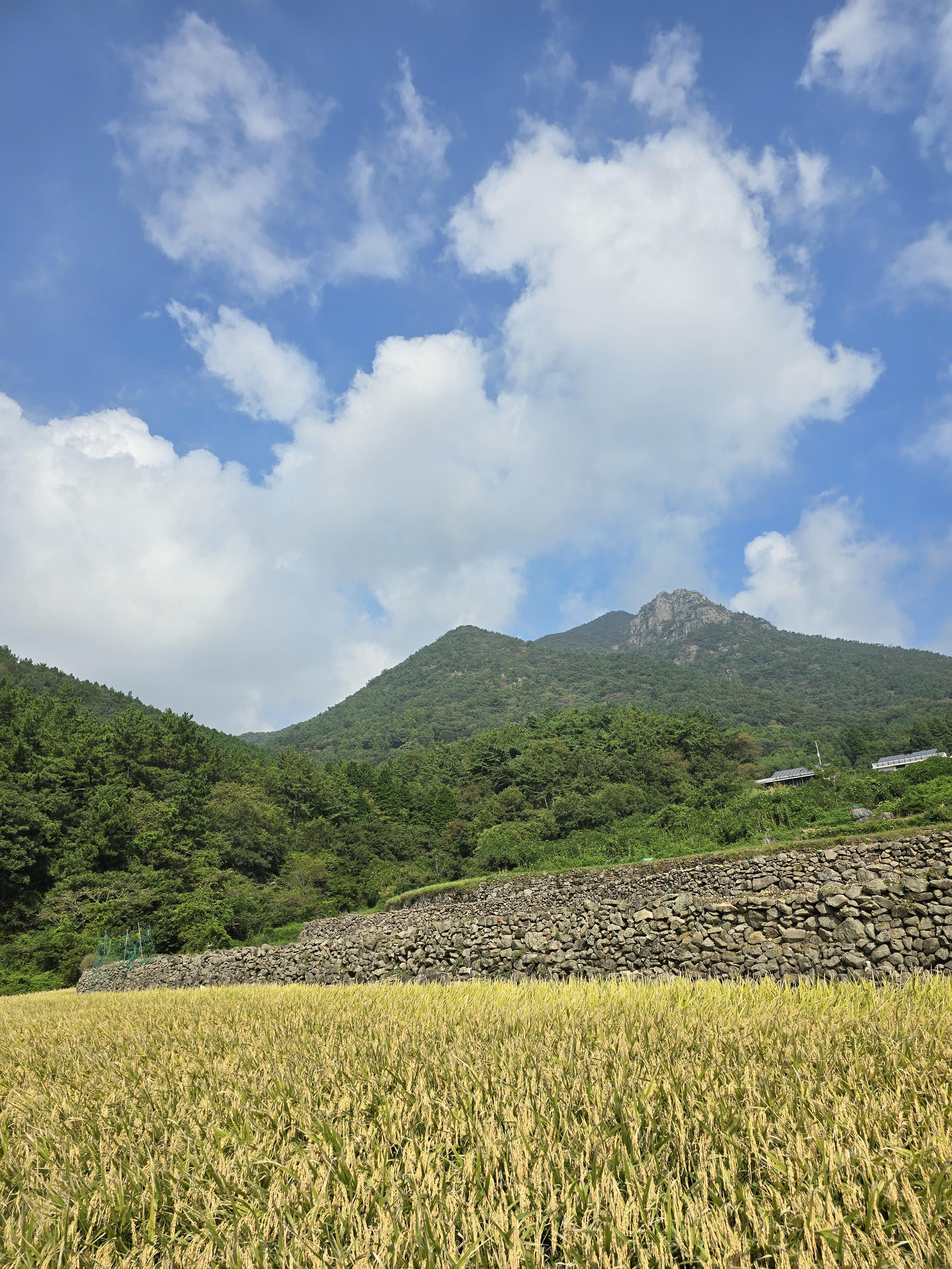 다랭이논 위로 보이는 설흘산