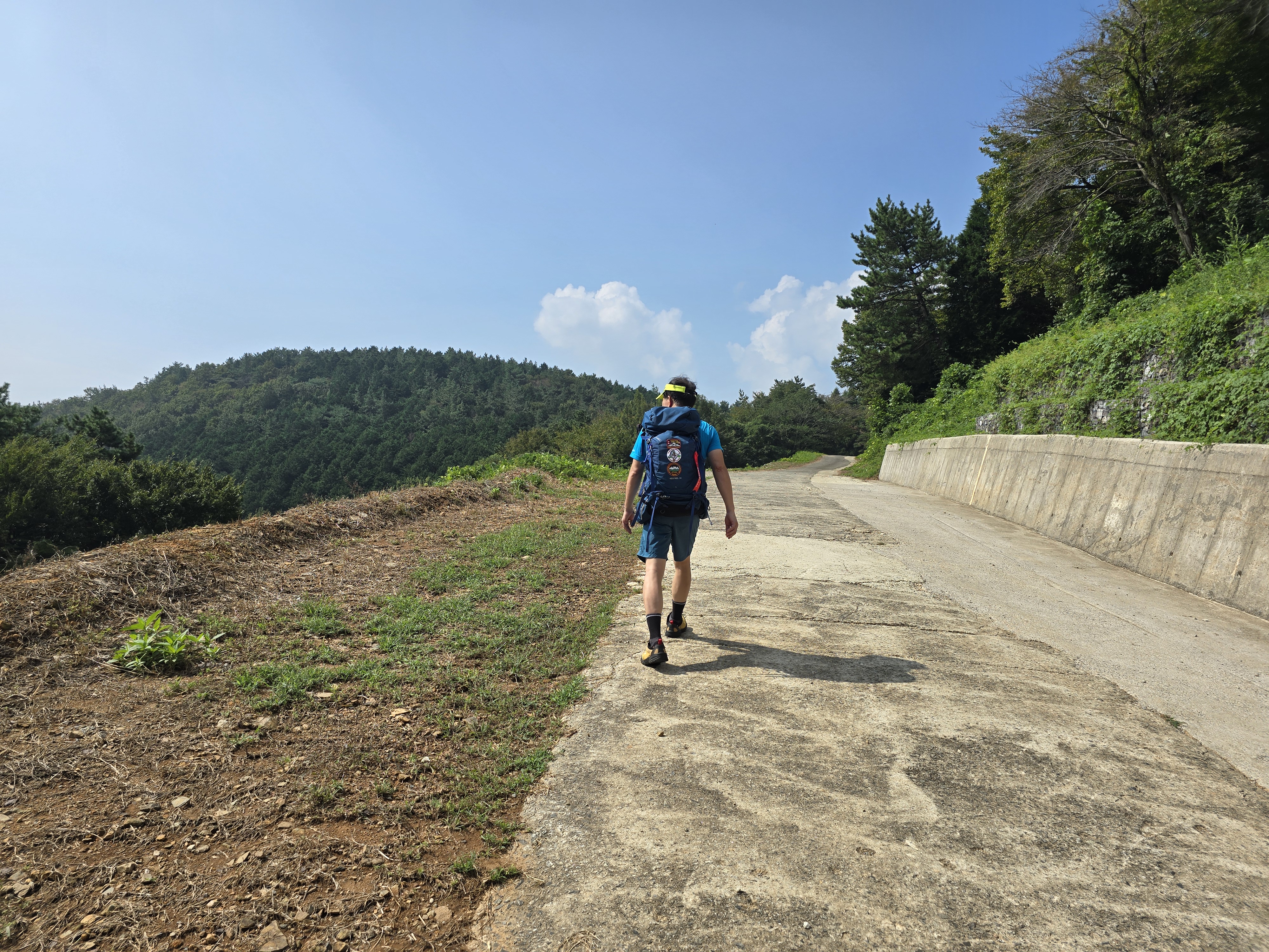 이제까지의 급경사 임도 오르막길이 끝나는 지점으로,