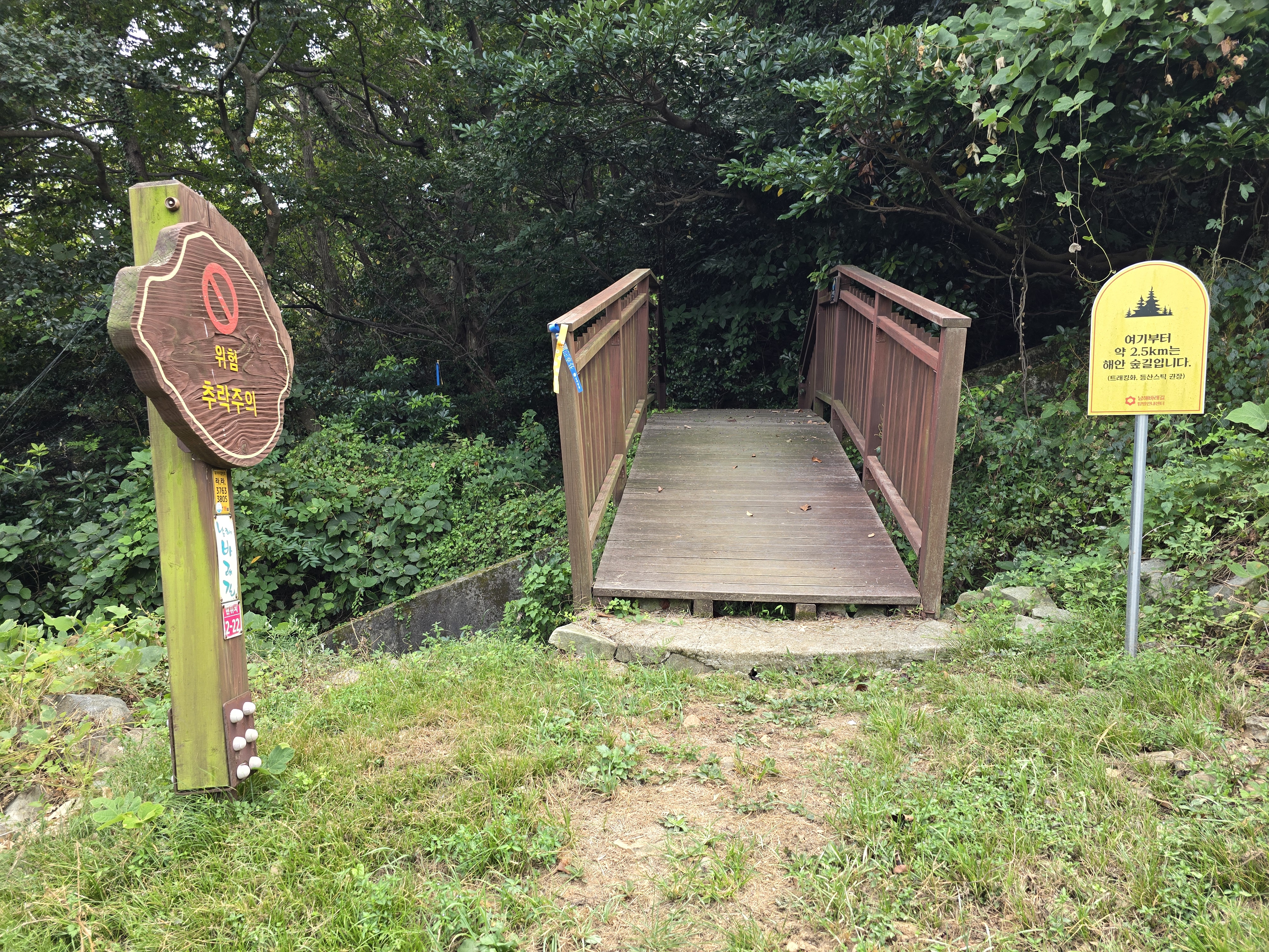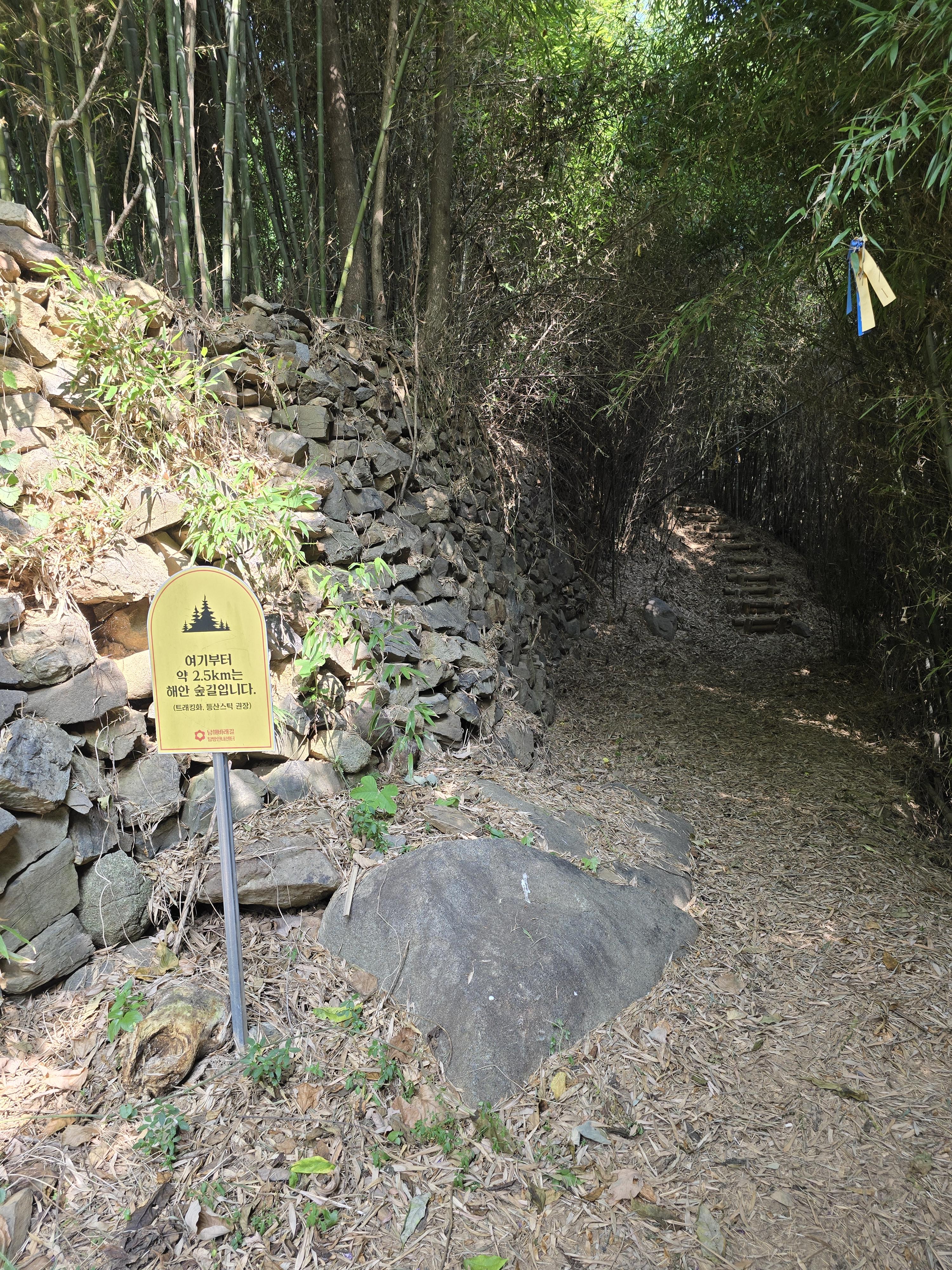 '여기부터 약 2.5km는 해안 숲길입니다.'란 안내판이 보이는데,
