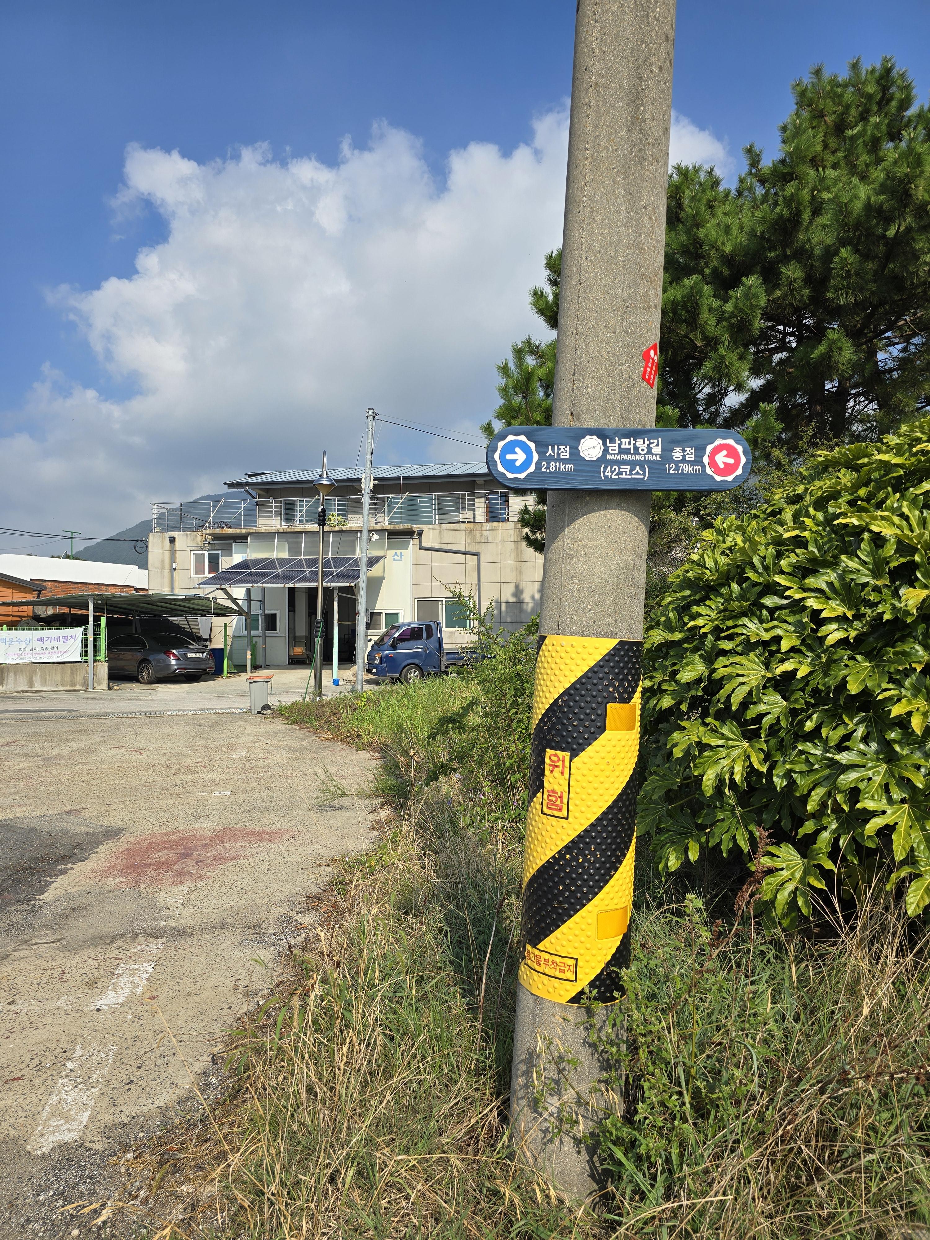 남파랑길 표지판이 서 있는 곳에서 우회전하는데,