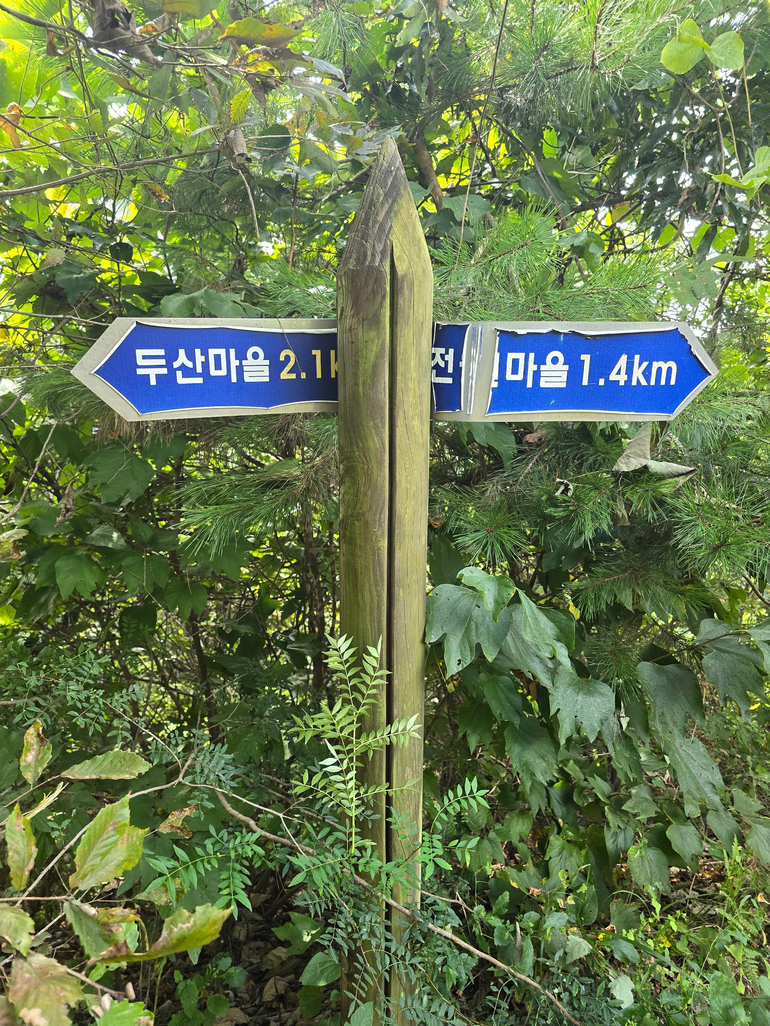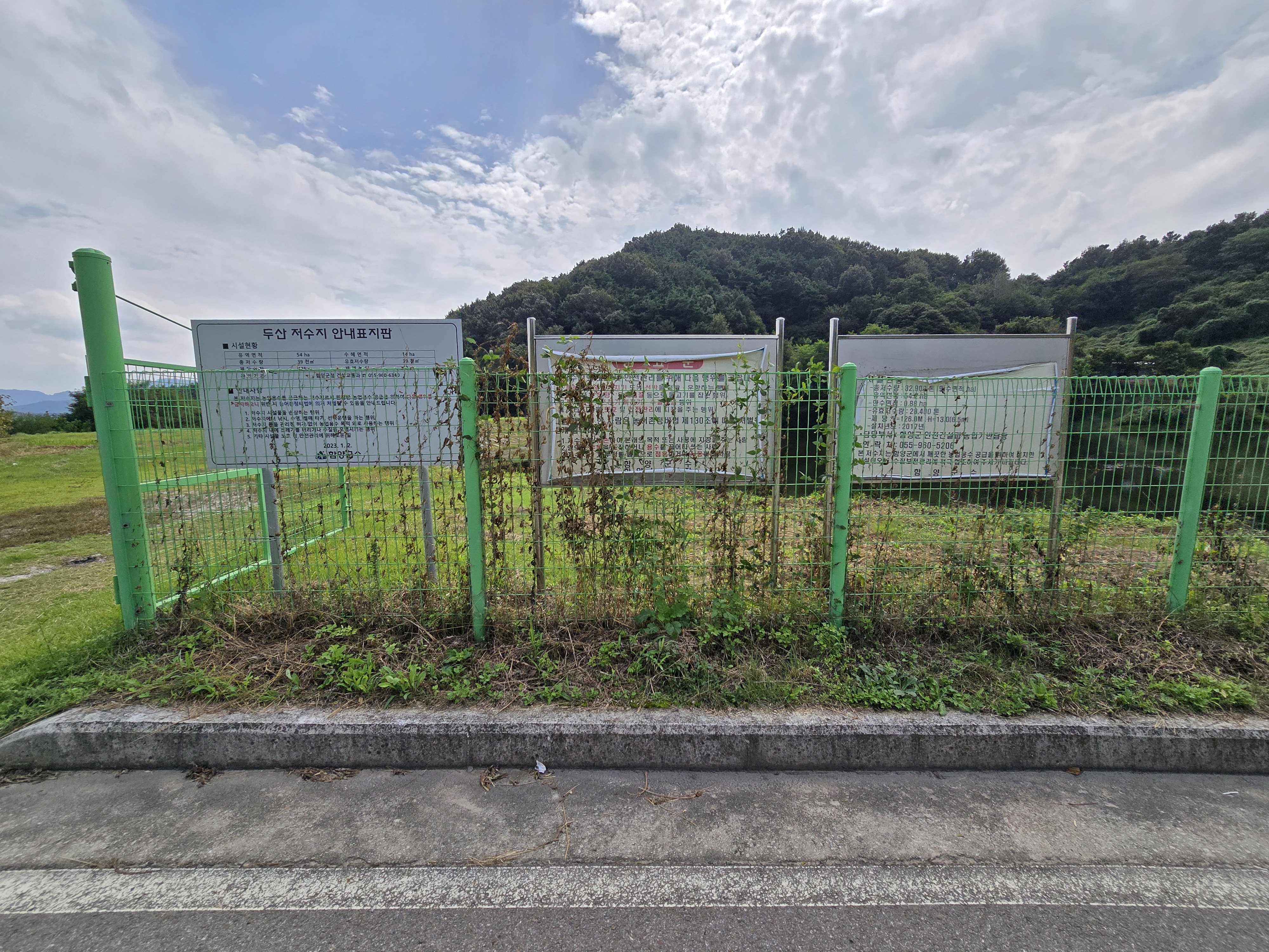 고구마밭을 지나 대병저수지·두산저수지 갈림길 이정표가 있는 고개에 섰다.