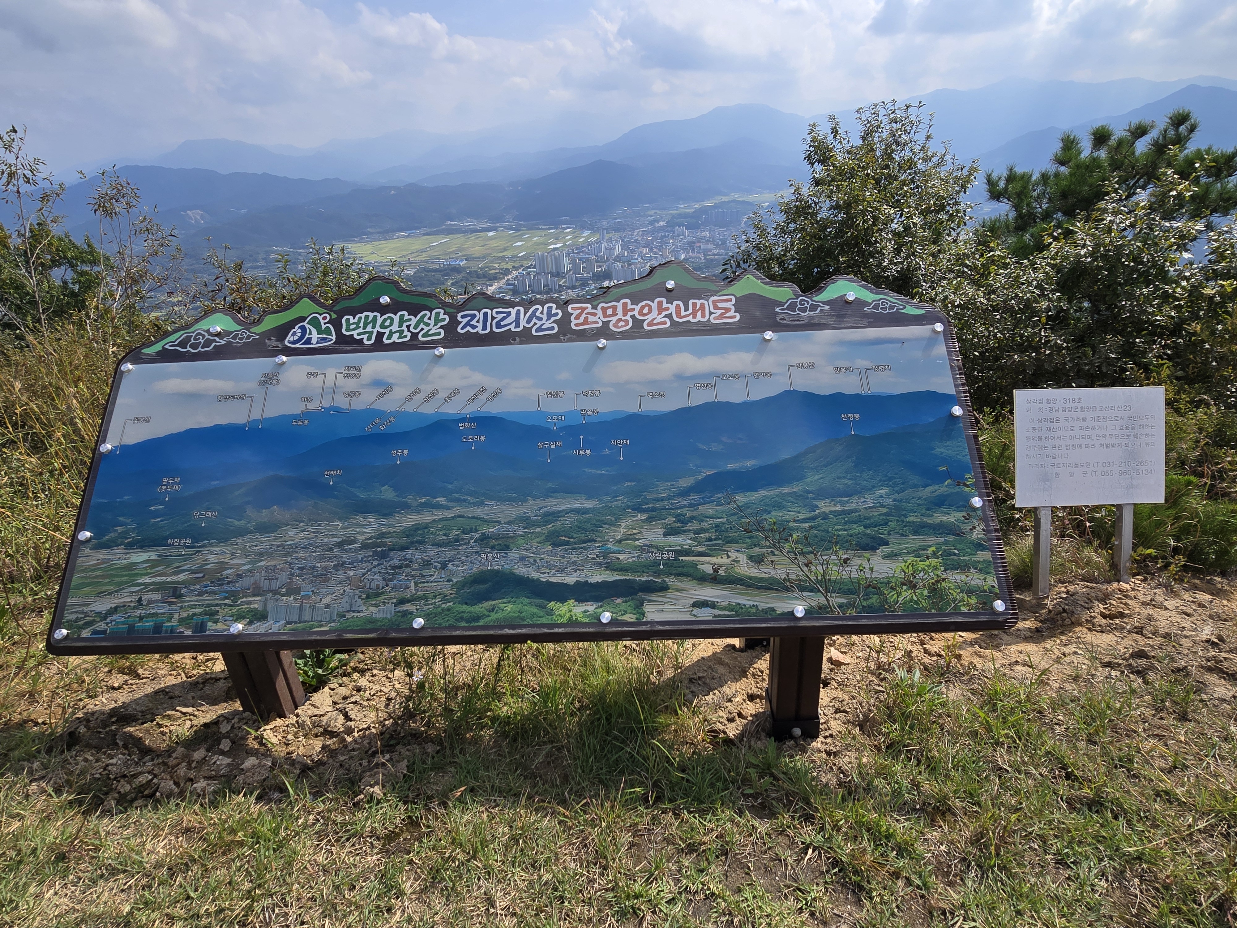 지리산 조망 안내판은 잘 서 있지만, 날씨가 흐려 시야가 가렸다.