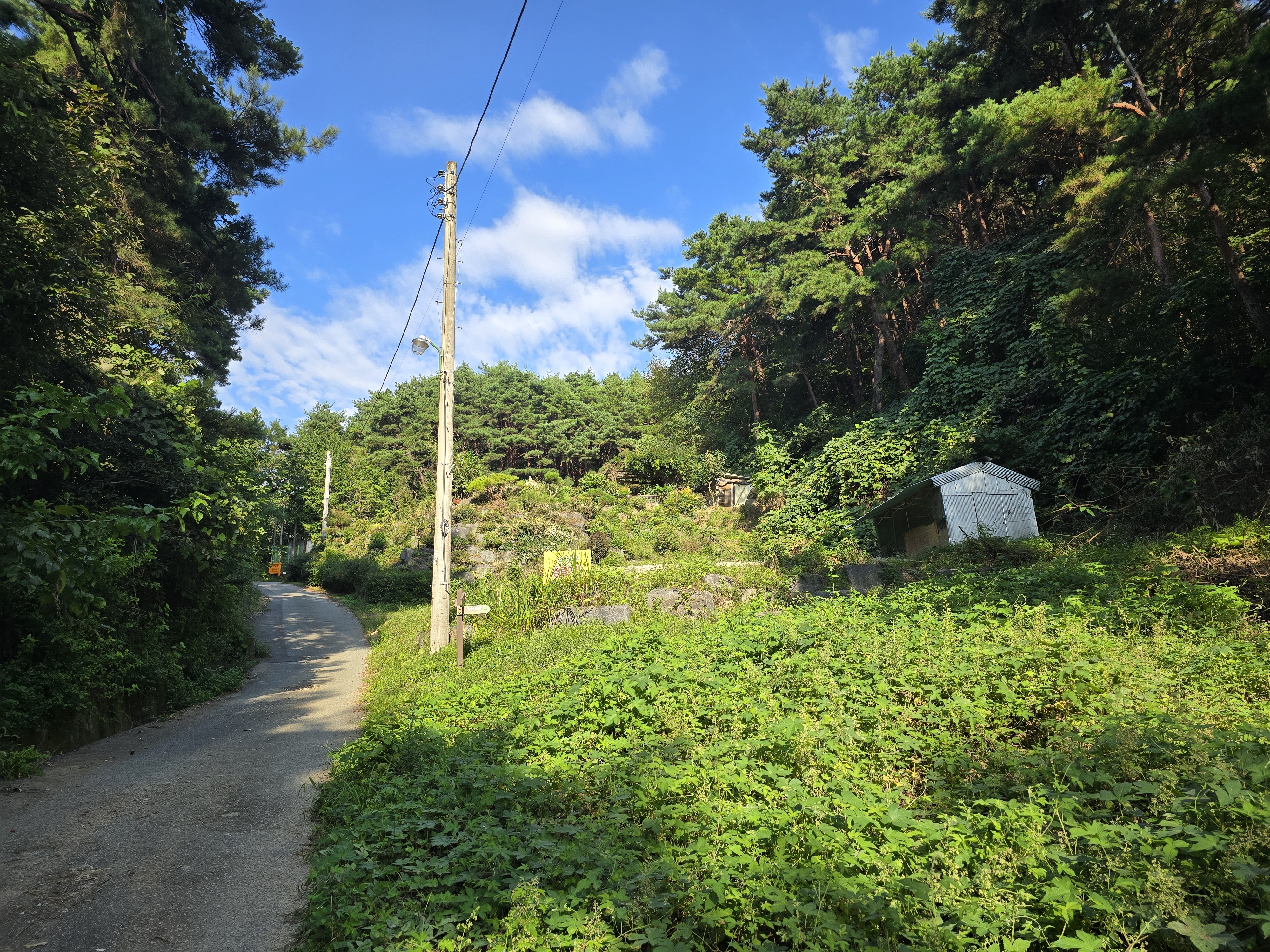 고사리가 무성한 밭을 만나면 왼편 포장도로를 따라 오른다.