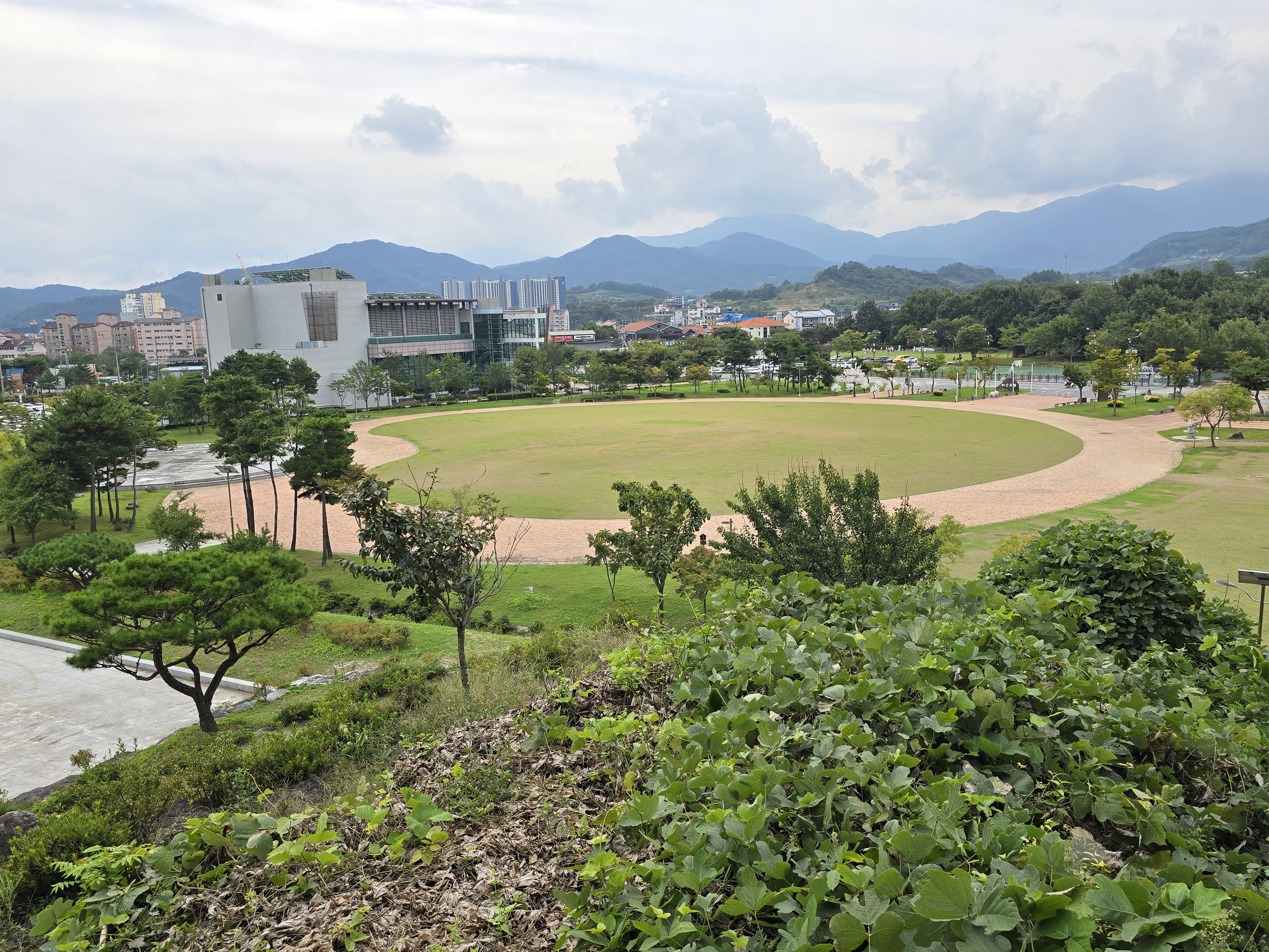 제법 긴 계단을 오르니 드디어 정상, 작은 운동장처럼 넓다.