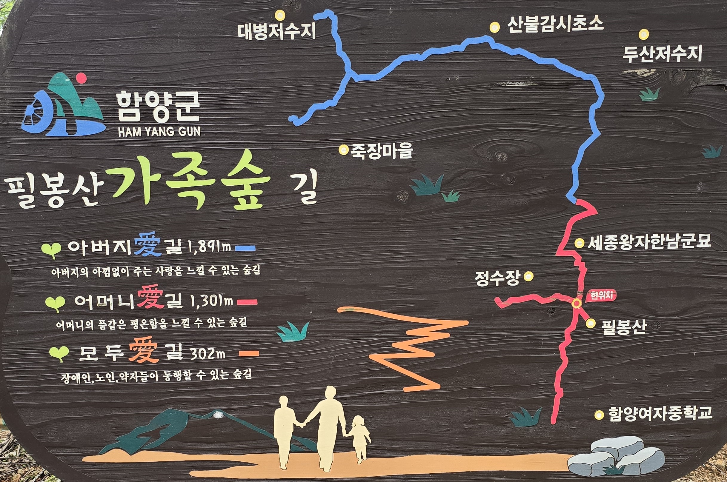 필봉산 가족숲길 안내도를 따라 대병저수지 방면으로 간다.