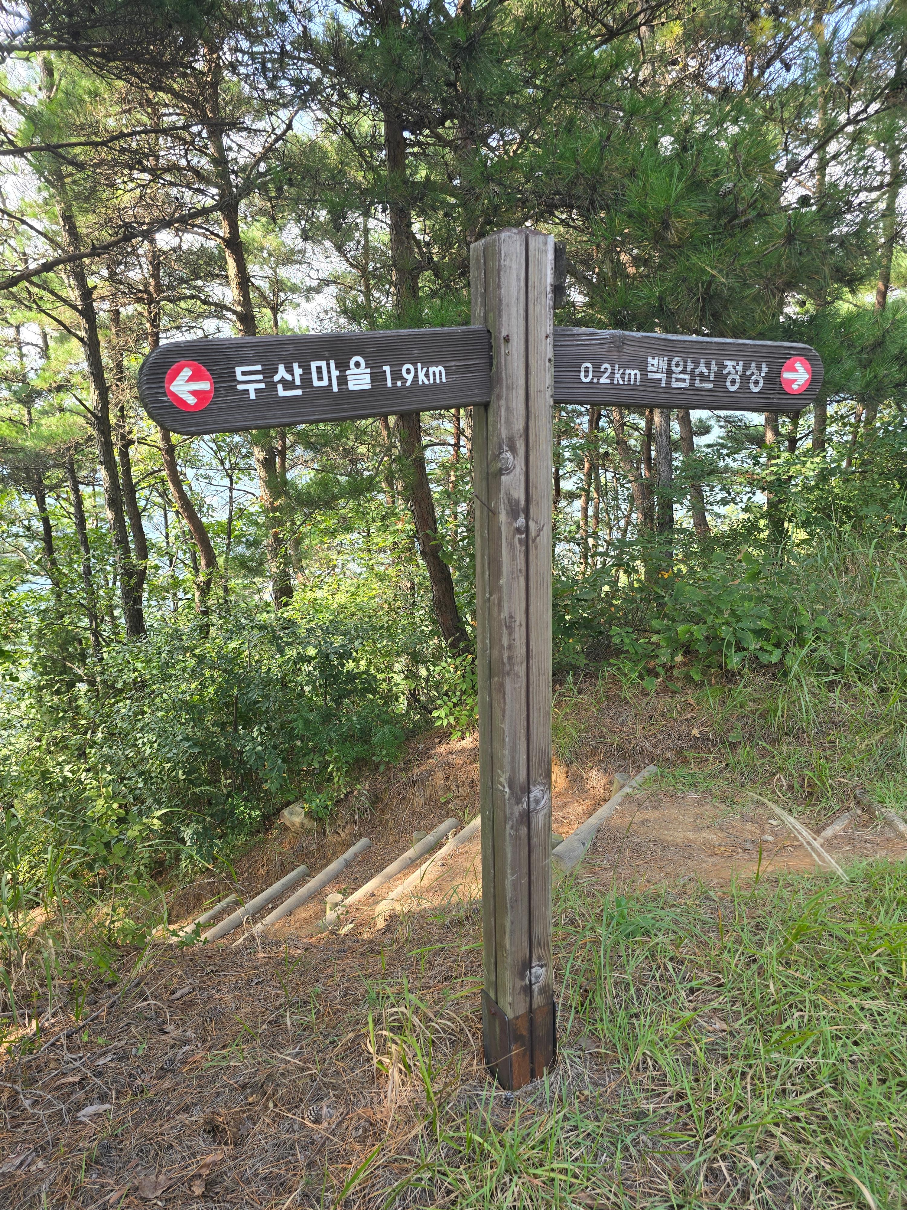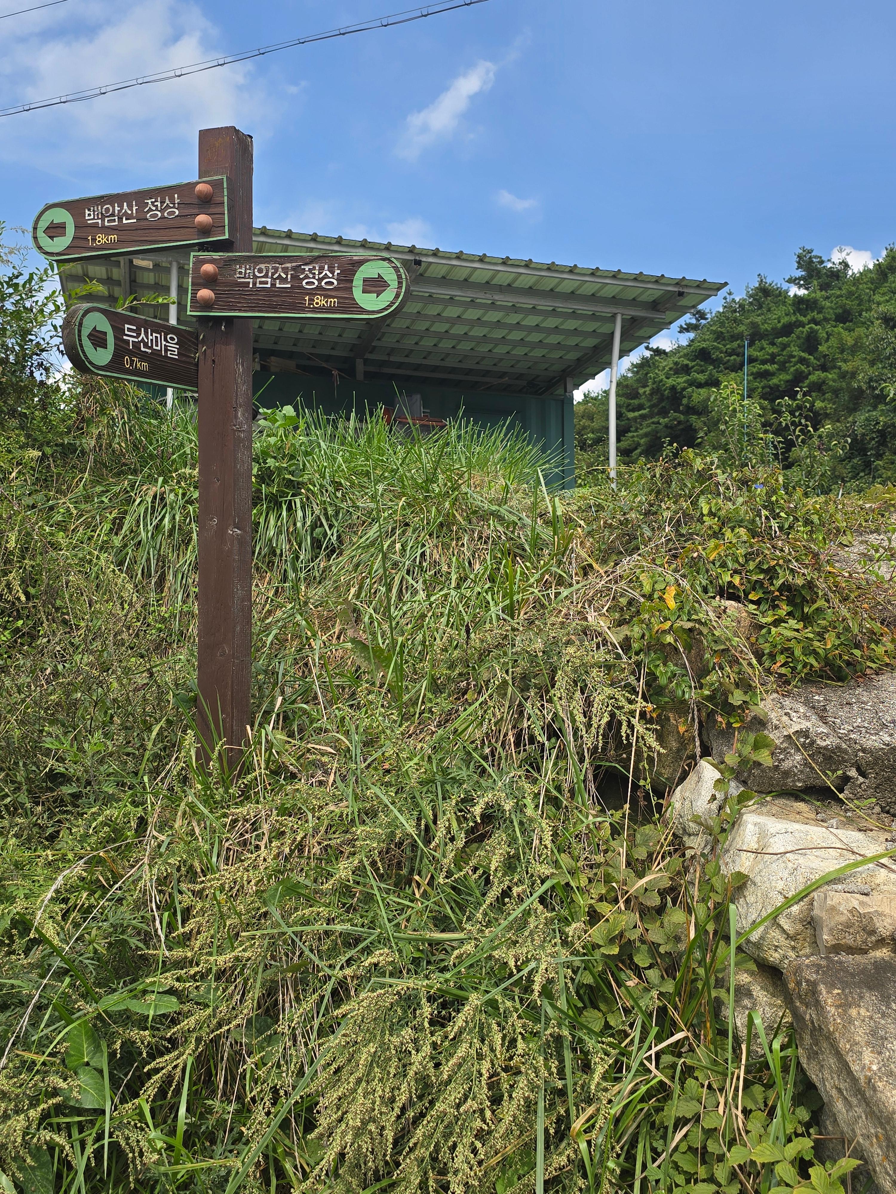 두산마을로 가다가 백암산 등산로 이정표에서 방향을 바꿔 교산육교를 넘는다.