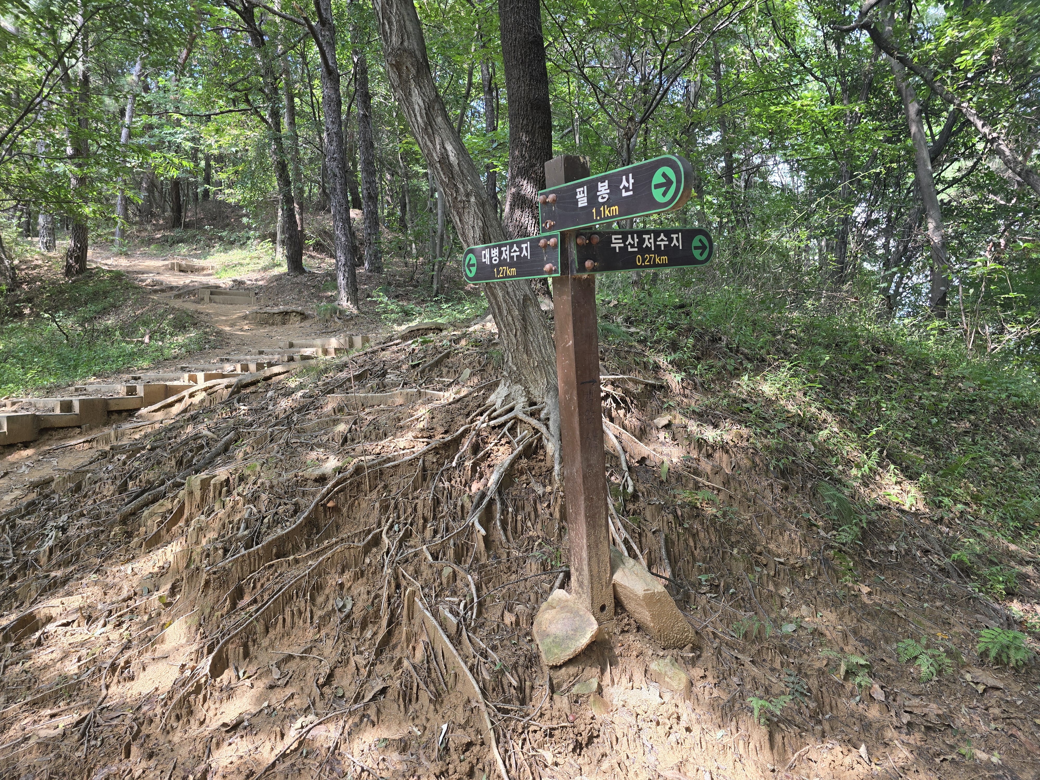 대병저수지 갈림길인 필봉산 숲길 225번 지점 안부 삼거리,