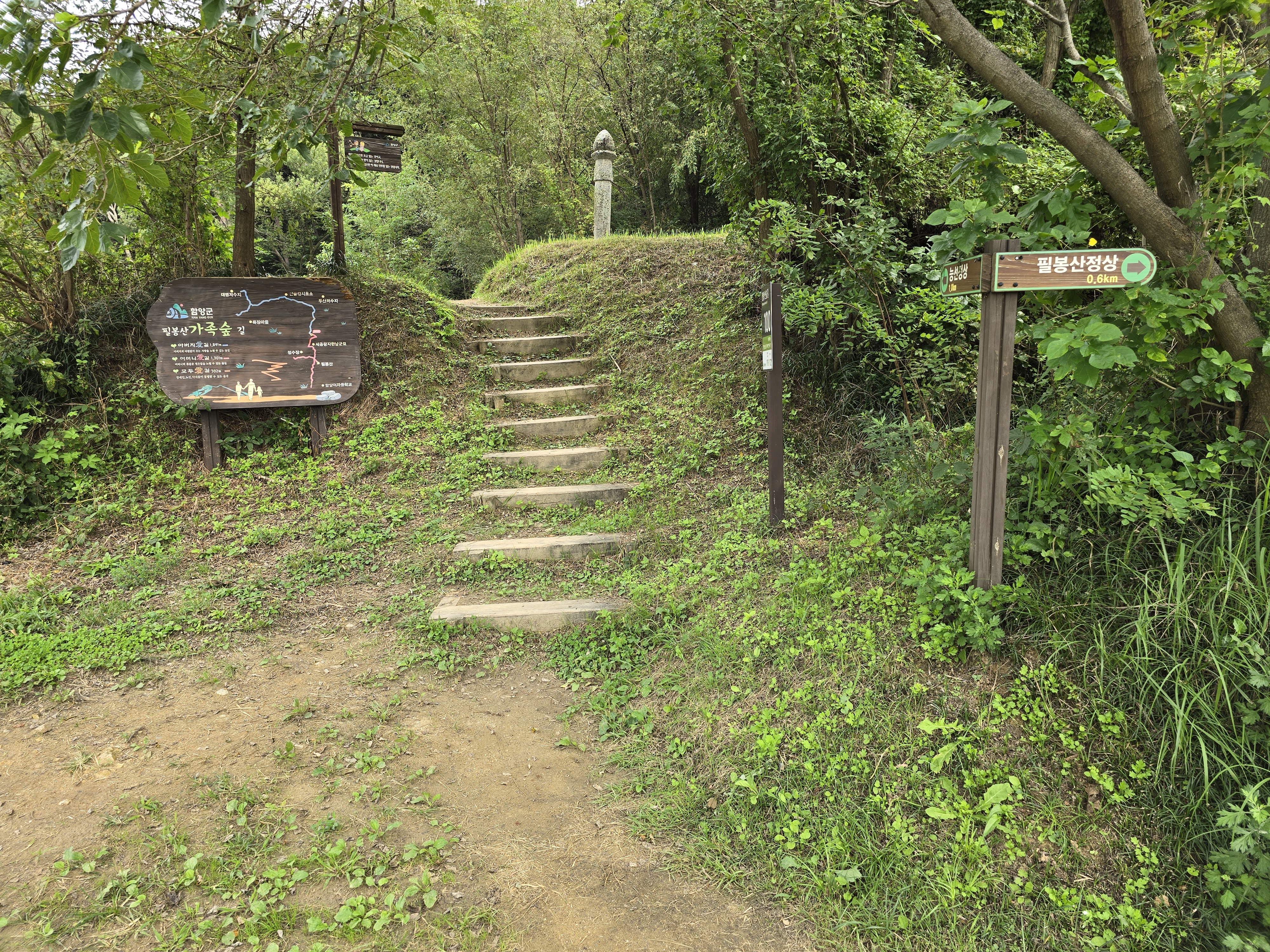 필봉산은 해발고도 245.8m로 야트막한 야산인데 숲이 제법 짙다.