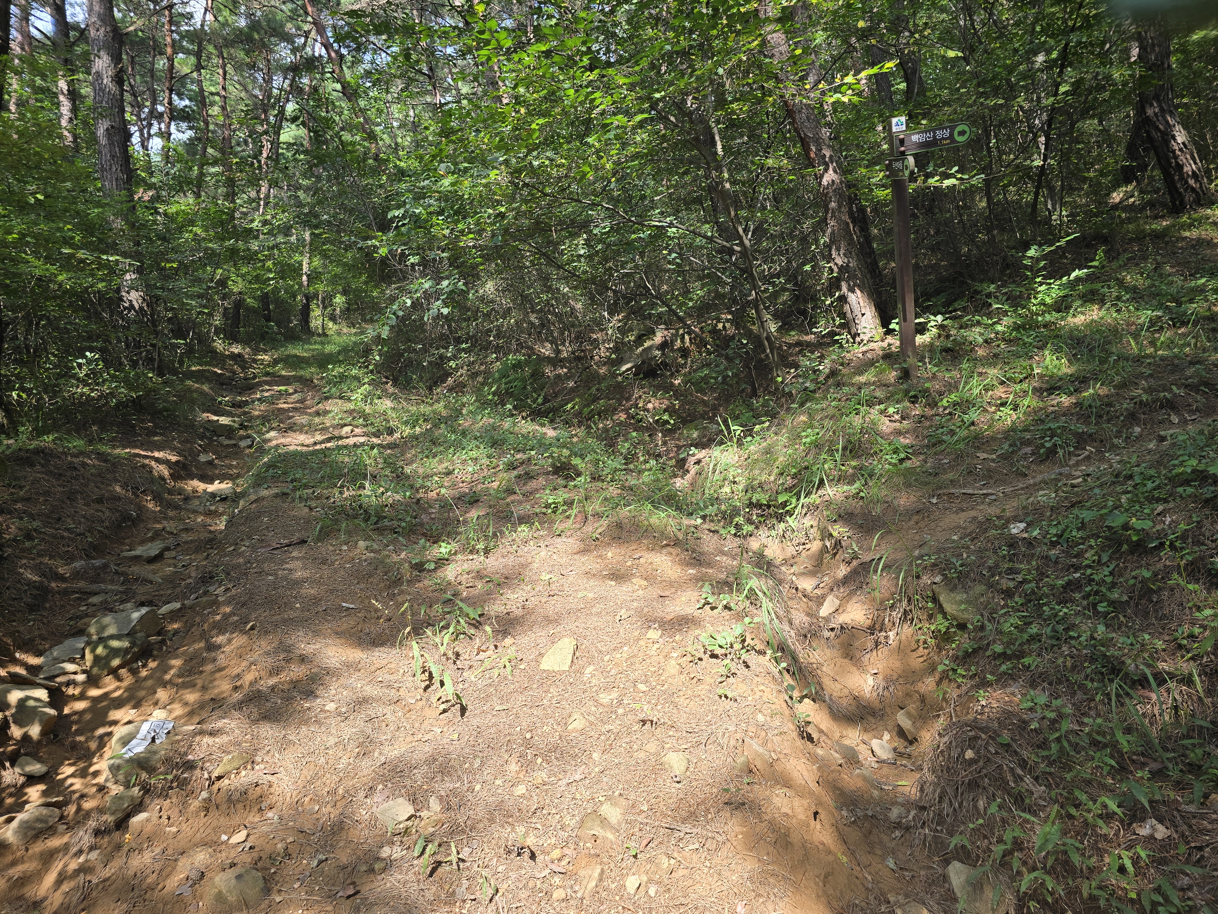 묵은 헬기장이 있는 첫 번째 갈림길에서 오른쪽 길을 택한다.