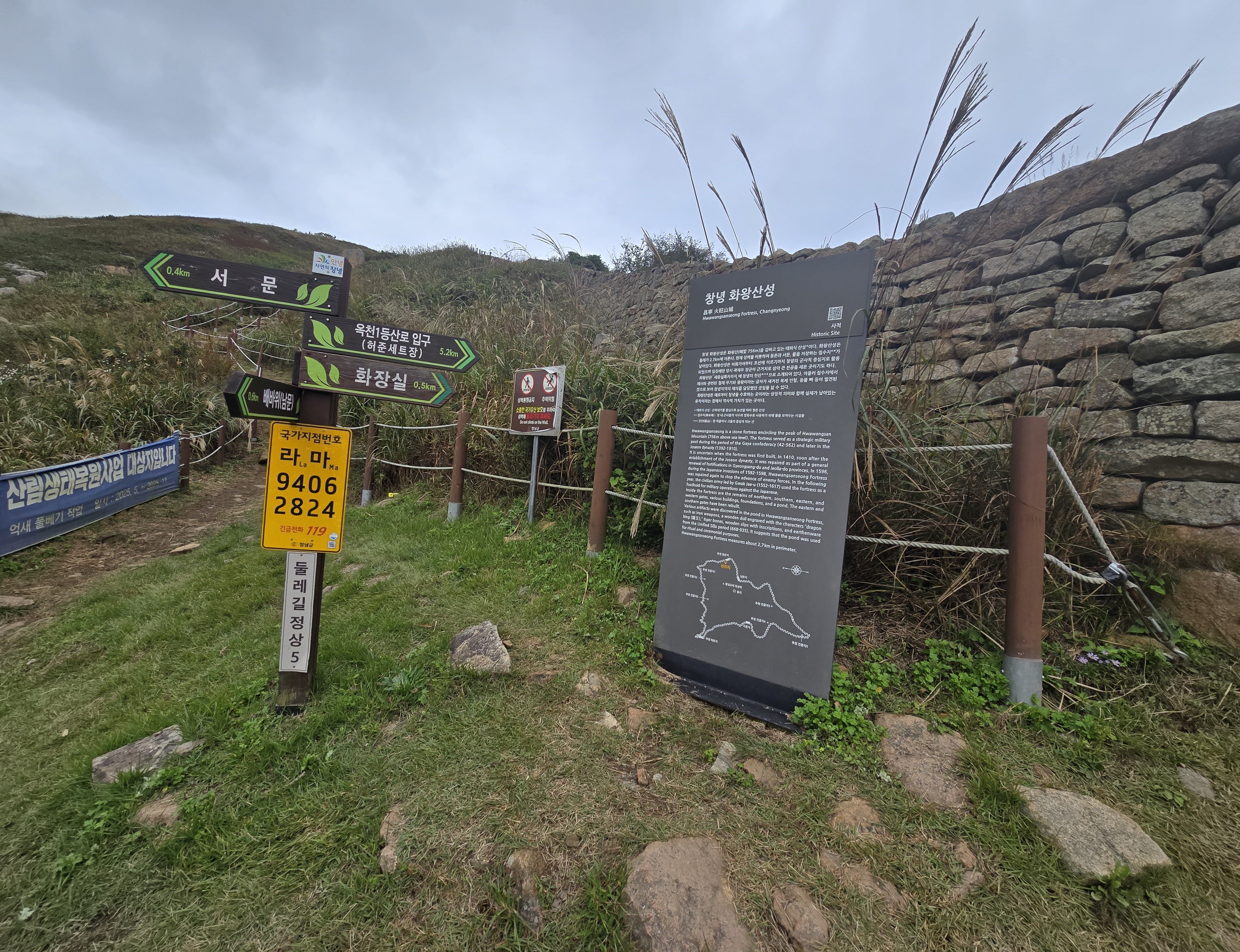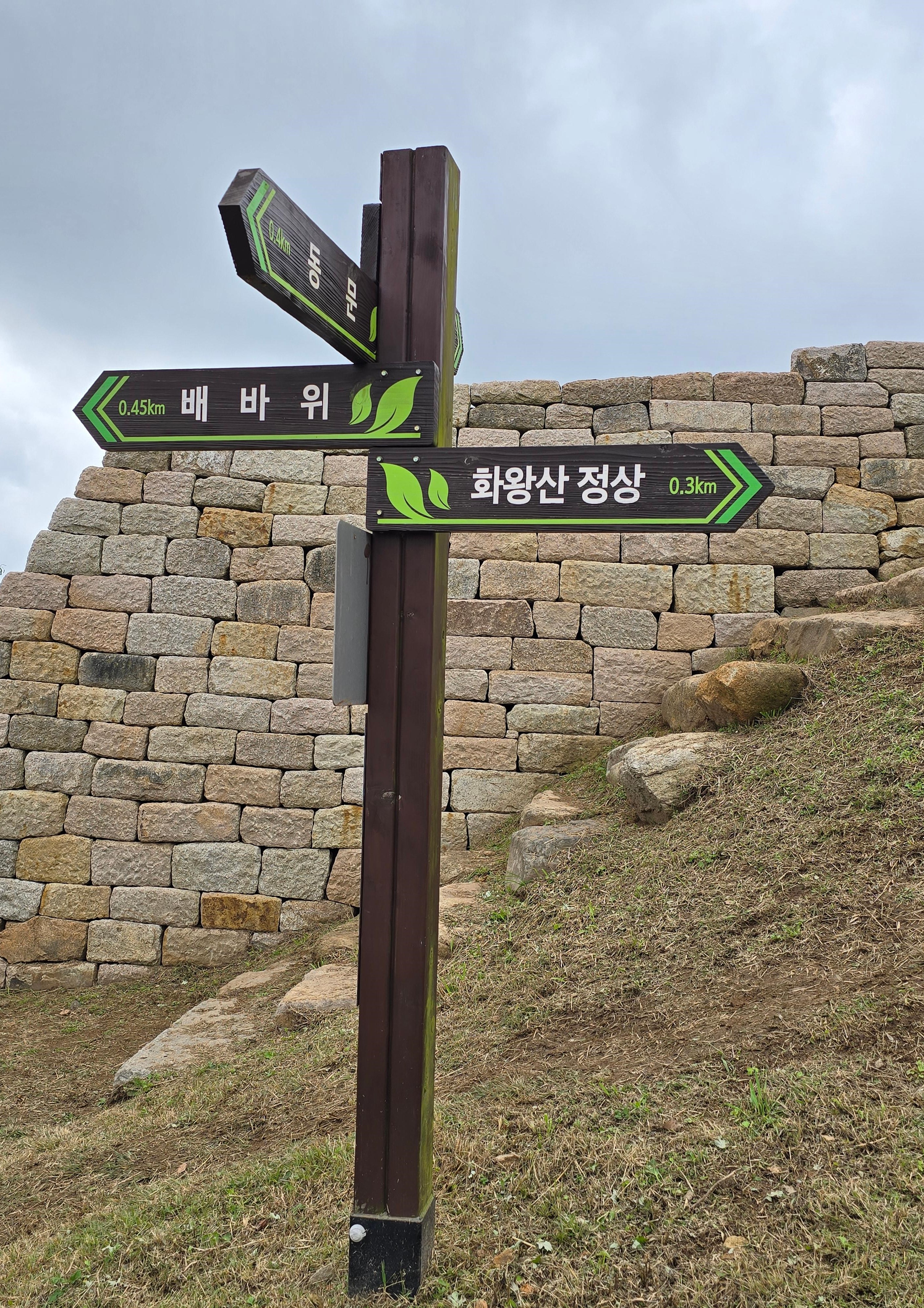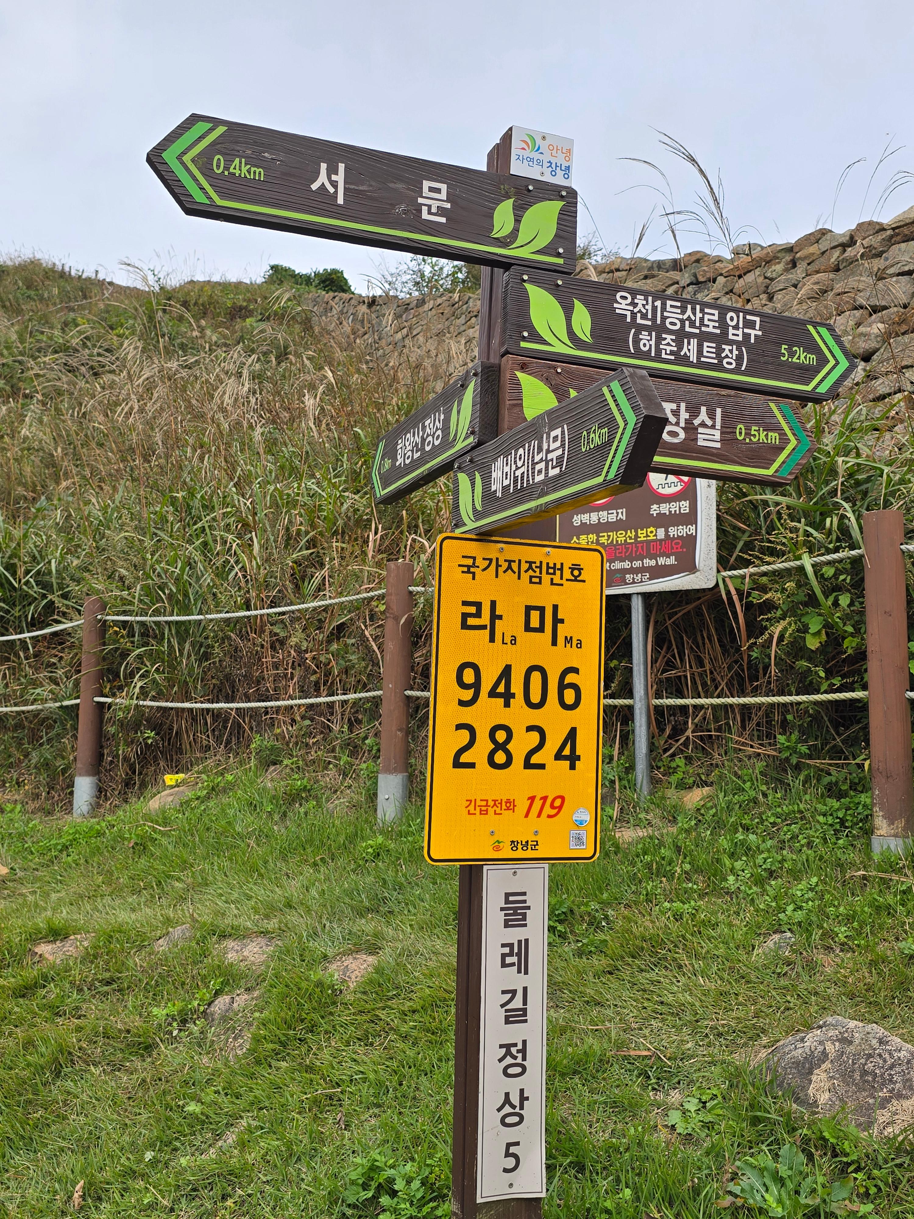 화왕산성 남문 아래 남문-허준세트장 갈림길의 낡은 이정표,