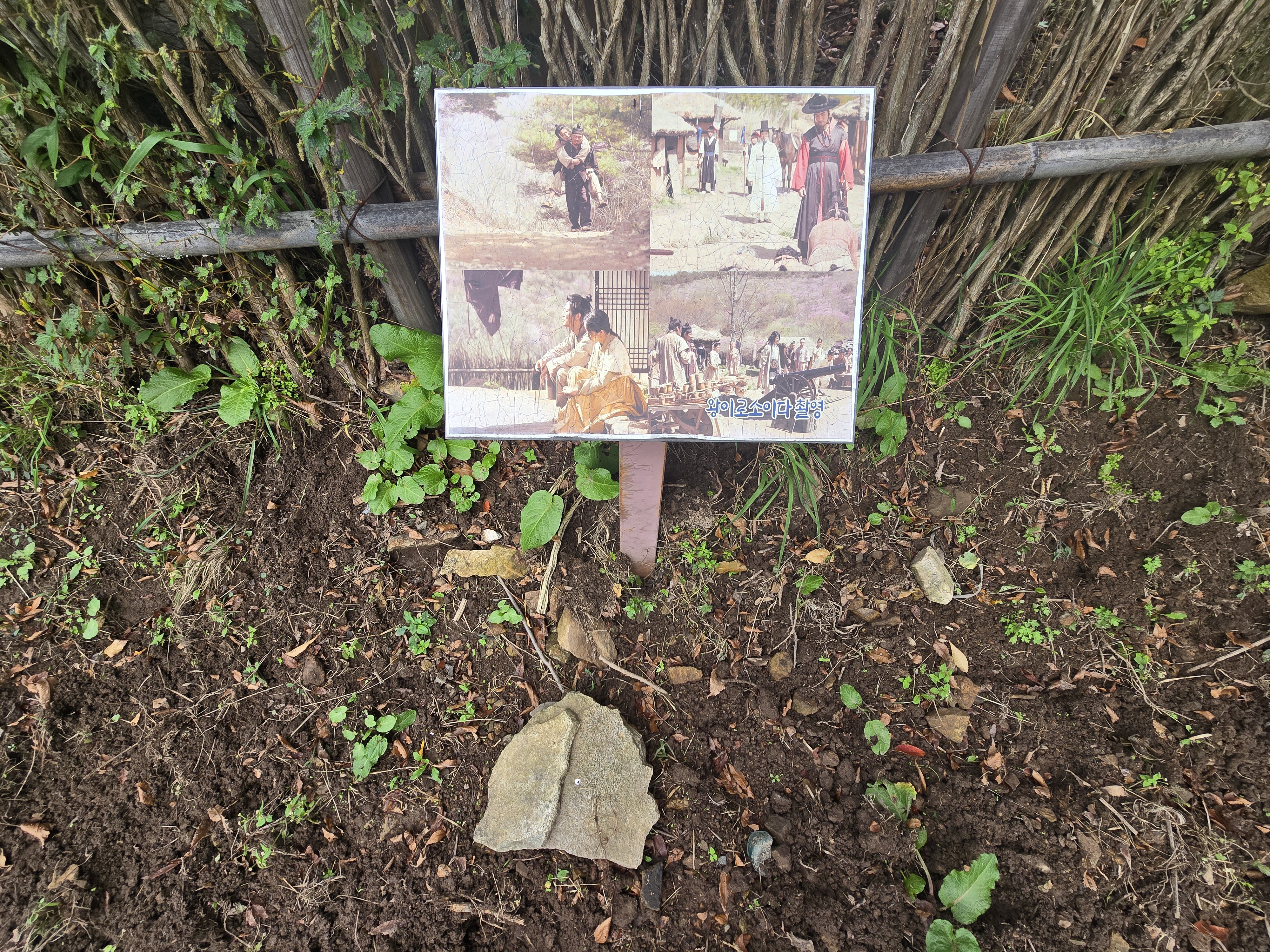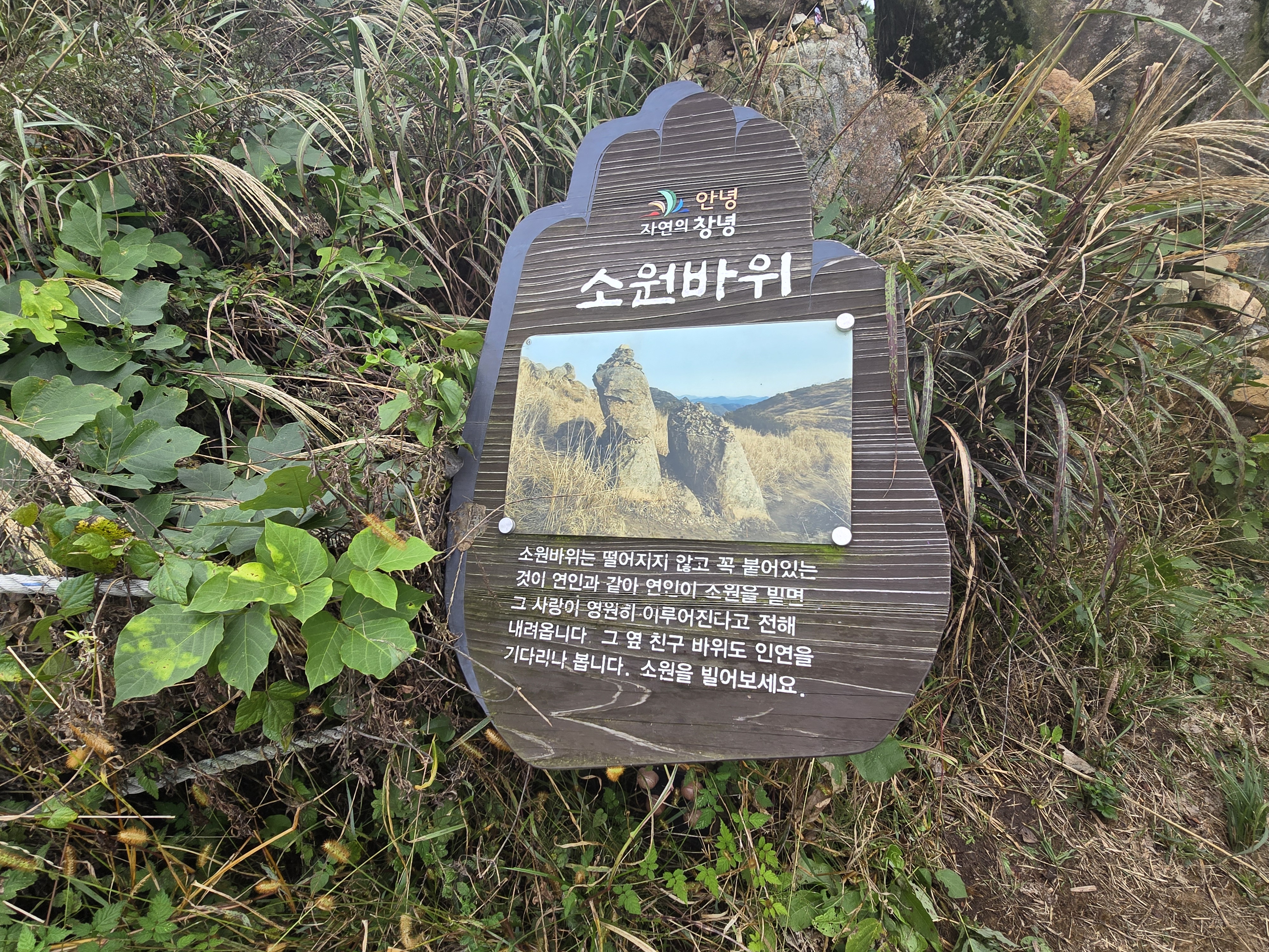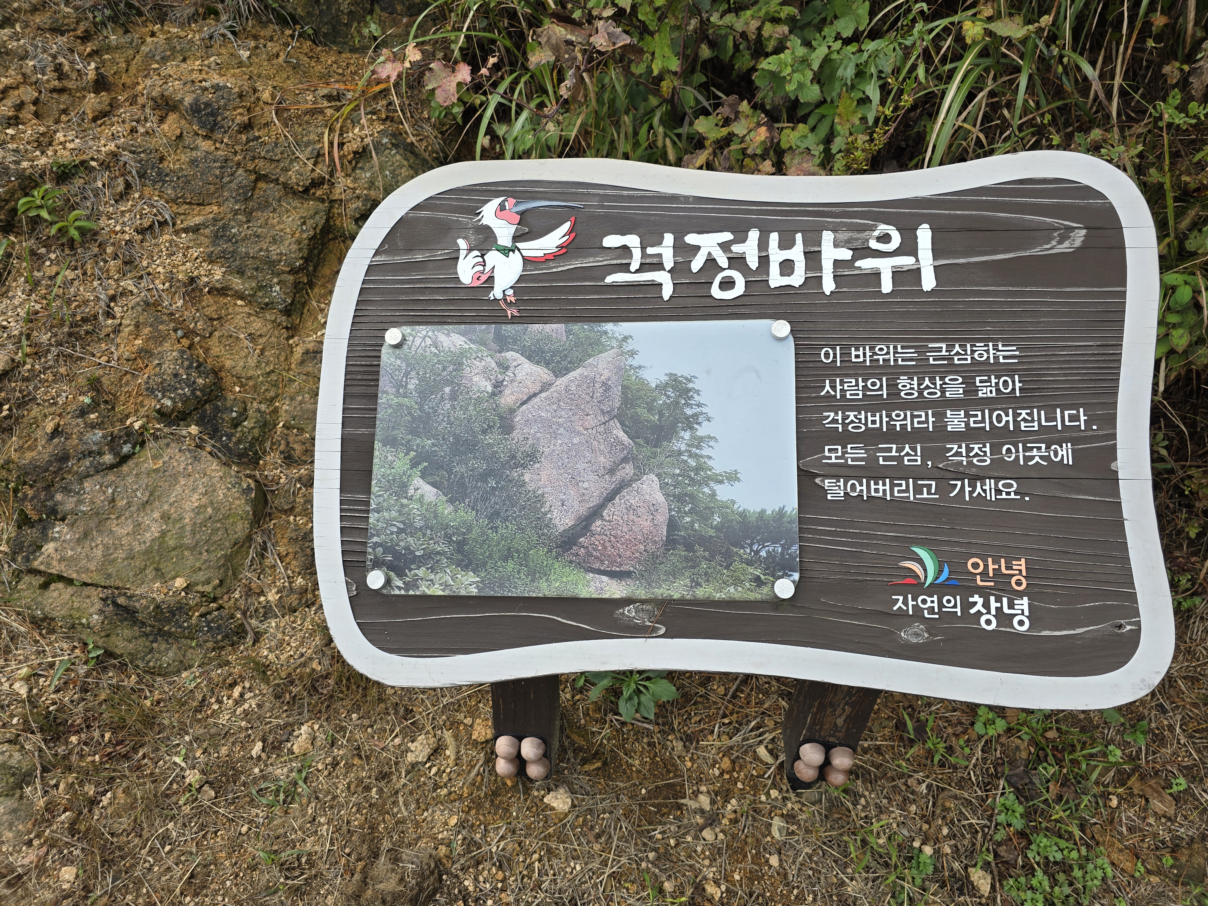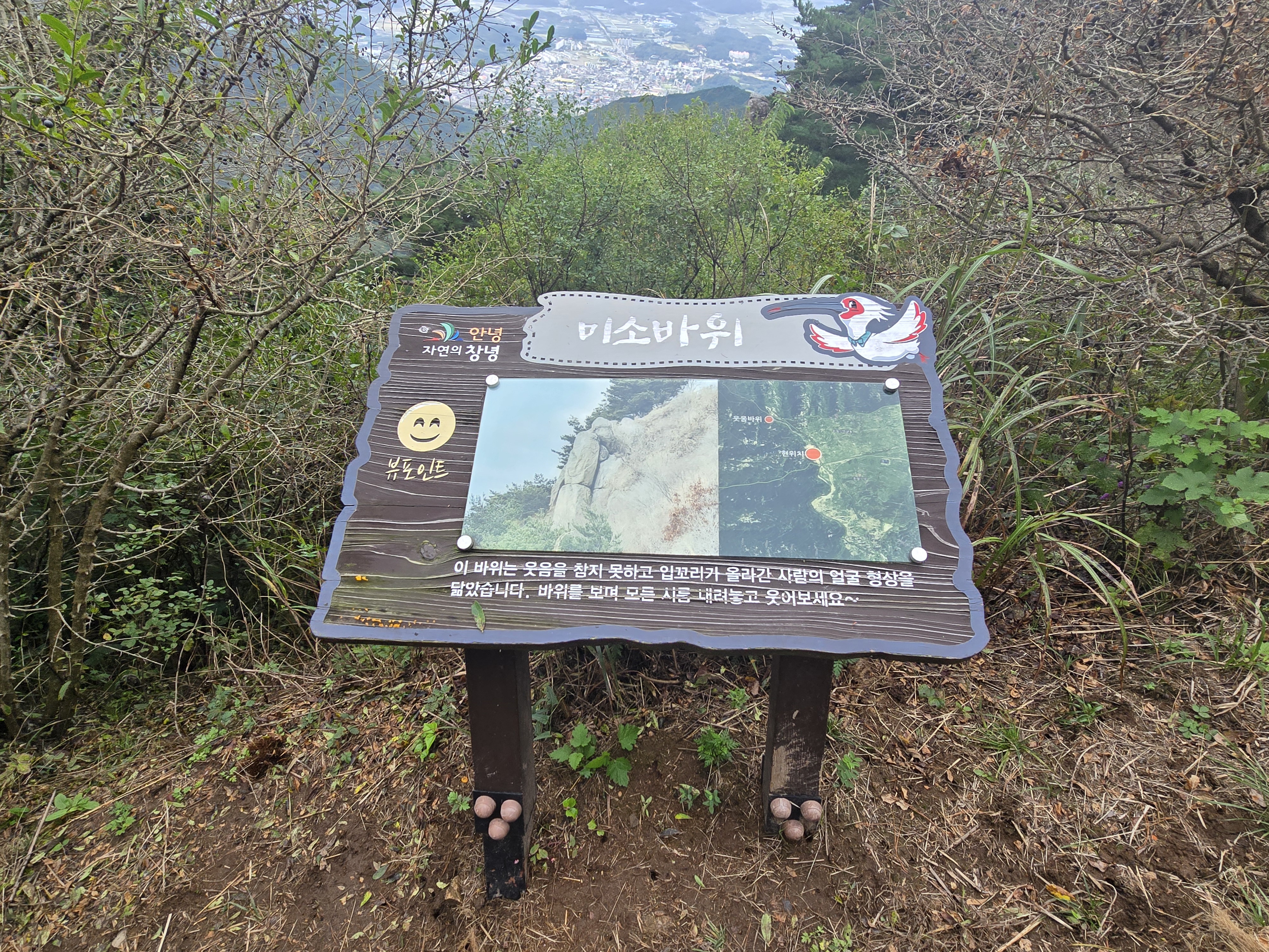 화왕산성 남문 아래 남문-허준세트장 갈림길의 낡은 이정표,