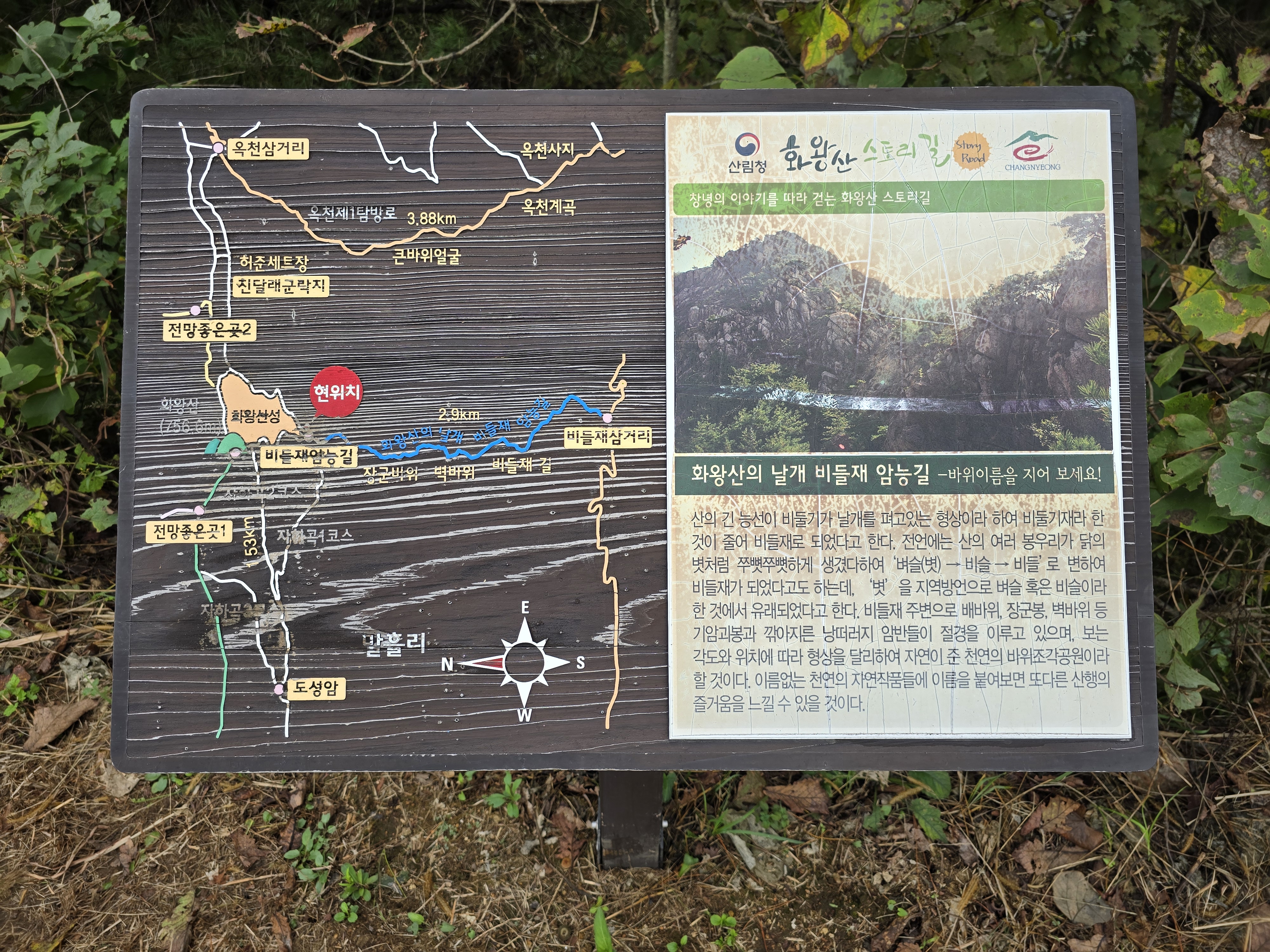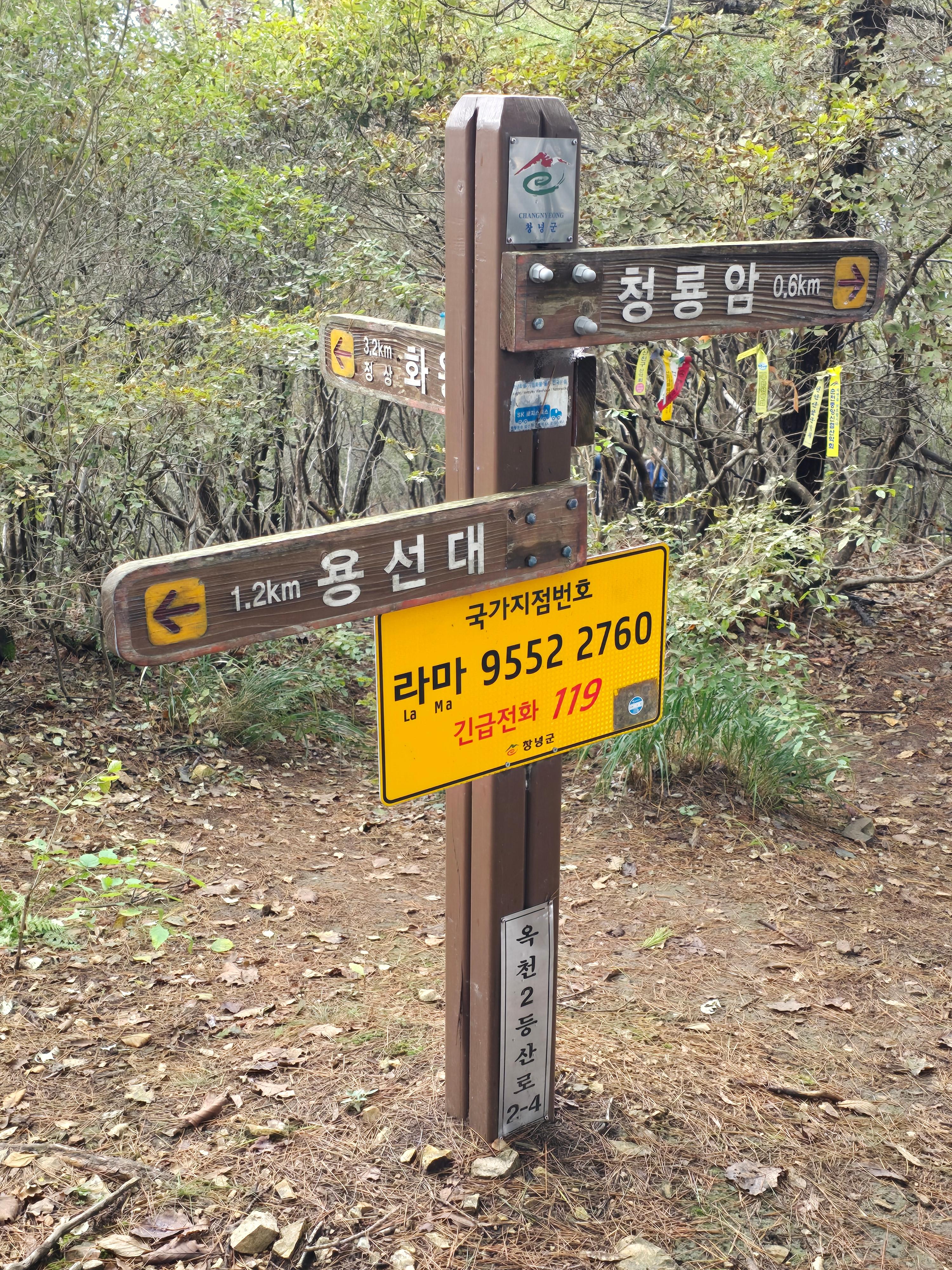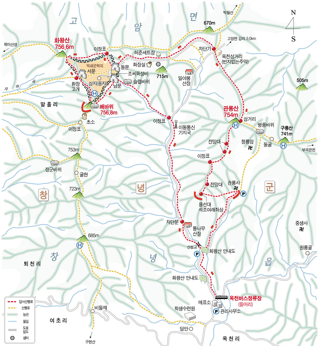 옥천3등산로(용선대: 옥천주차장-화왕산 정상, 6km)가 나뉘는 곳으로,