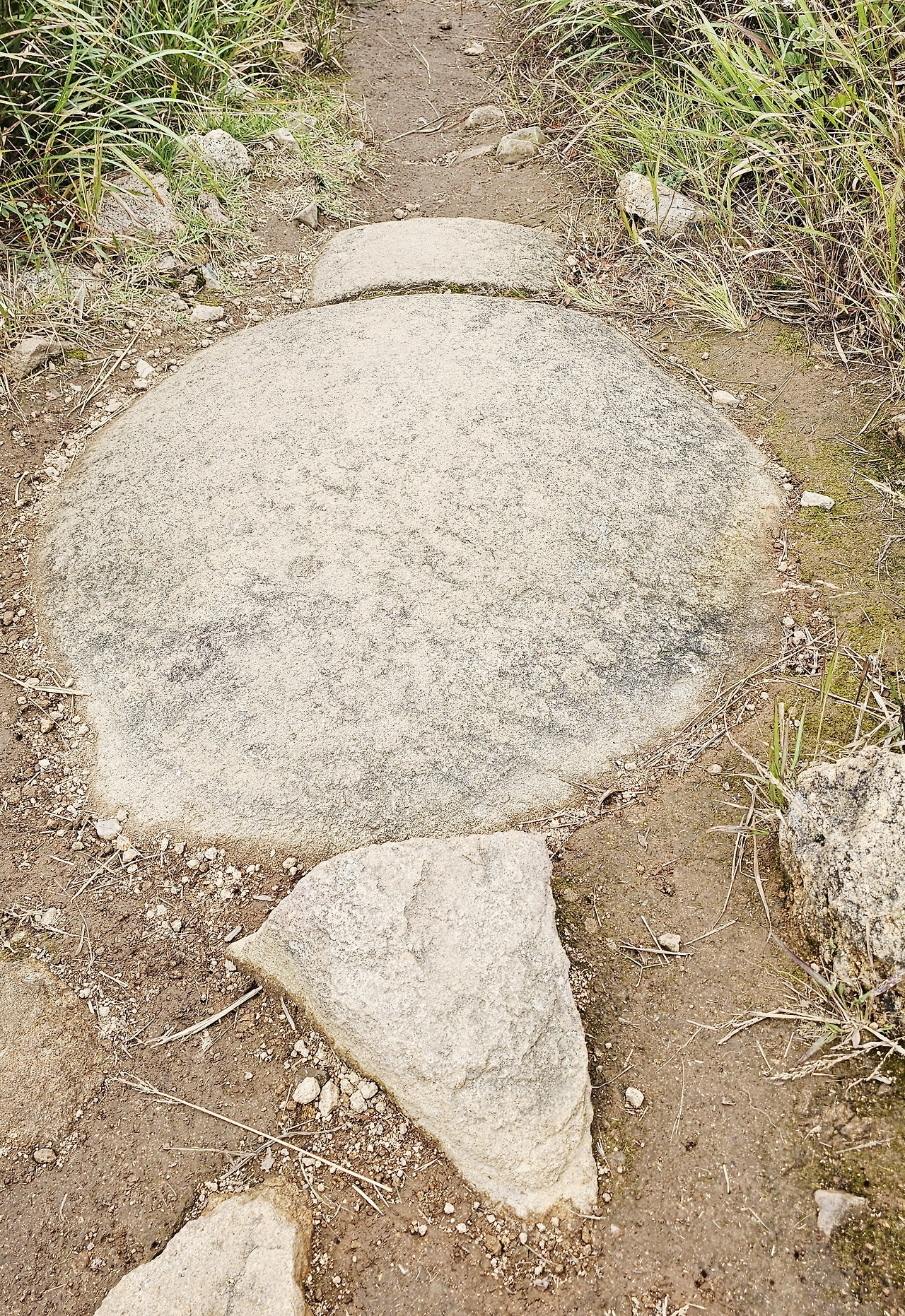 땅속에 묻혀 있던 바위가 수면 위로 드러난 것으로 추정된다.