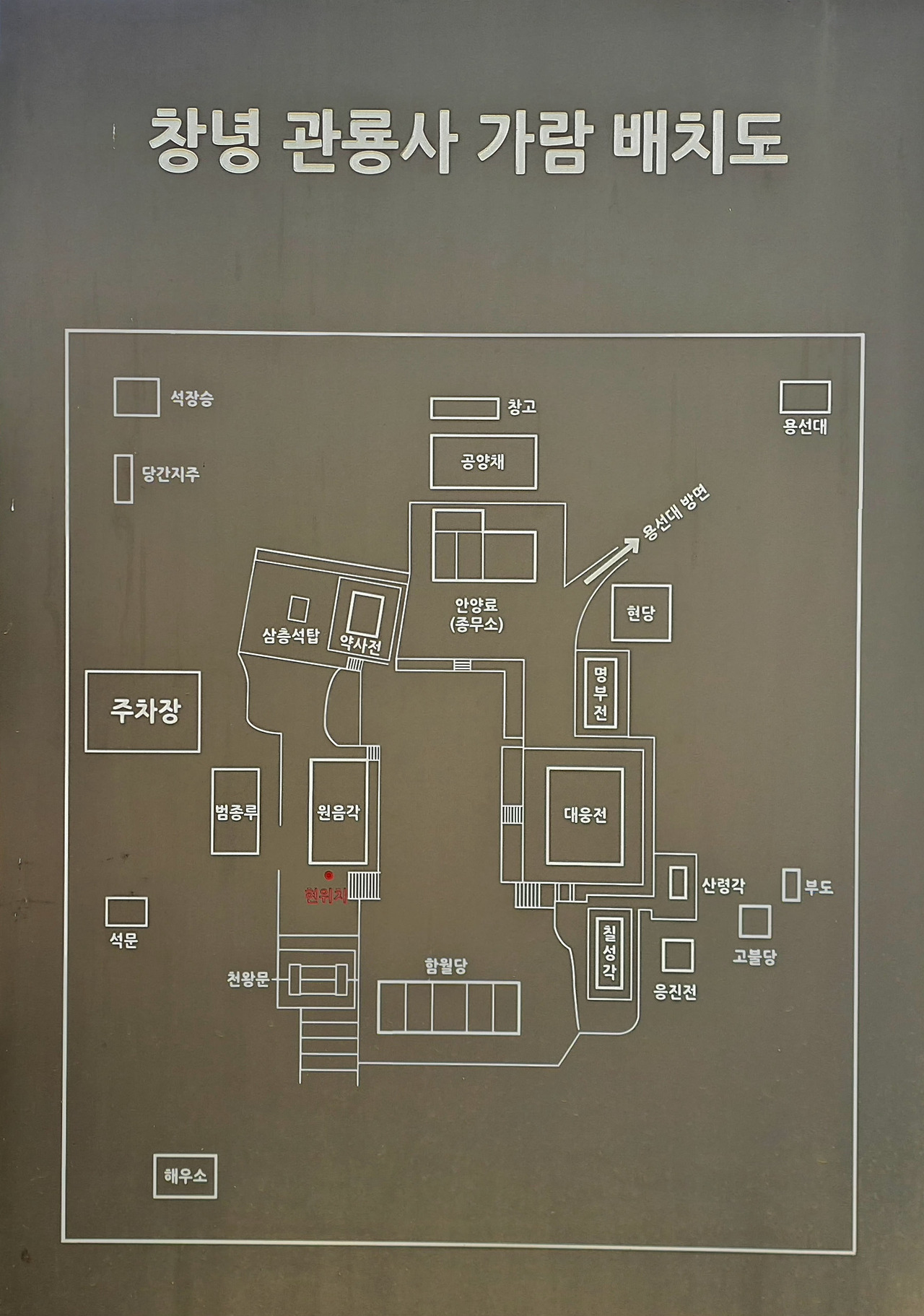 관룡사 일주문은 최근(2023년)에 지어 '火王山觀龍寺'라는 편액을 달았는데,
