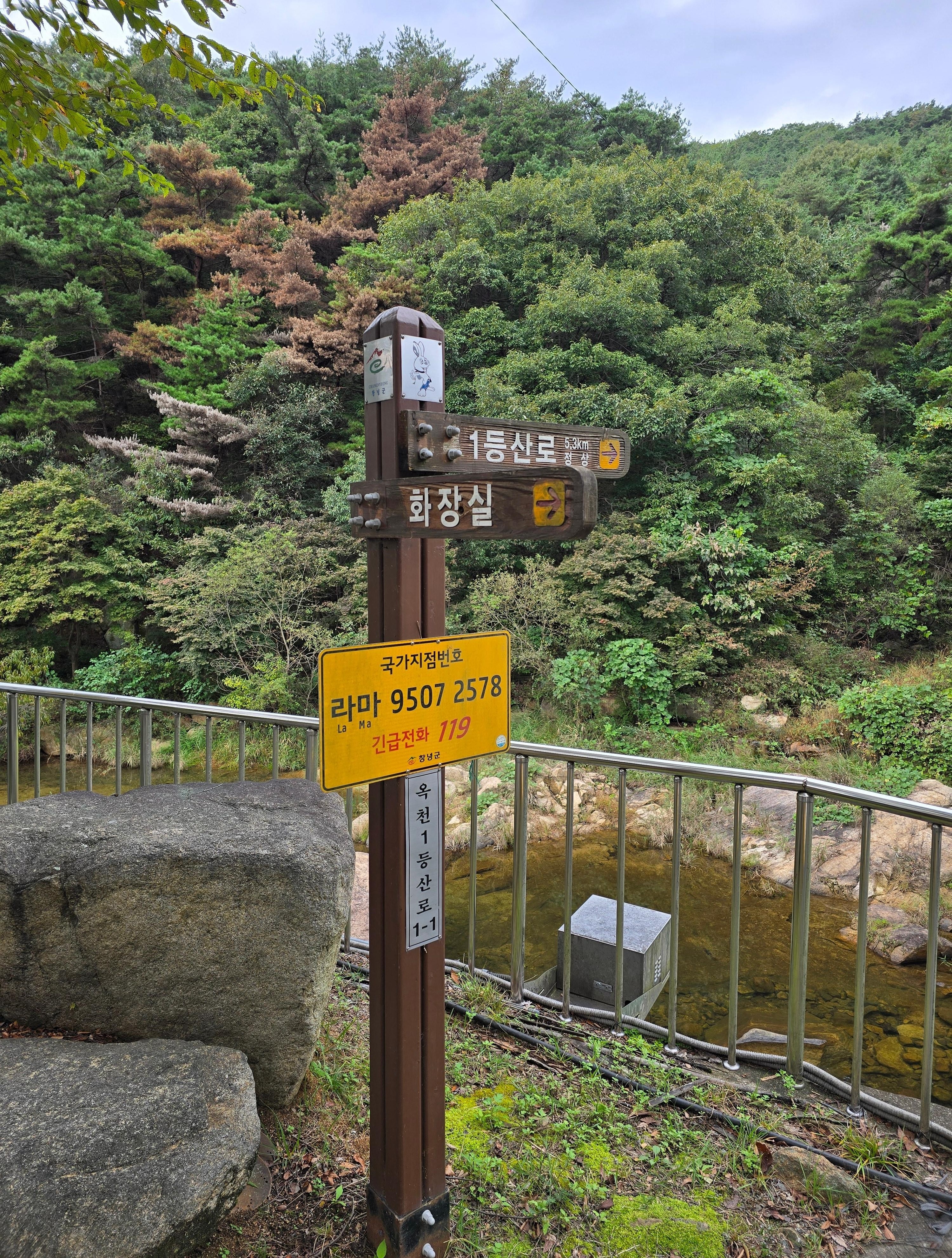 산성교 앞에는 화장실과 바로 아랜 옥천1등산로 입구 주차장이 위치하고 있으며,
