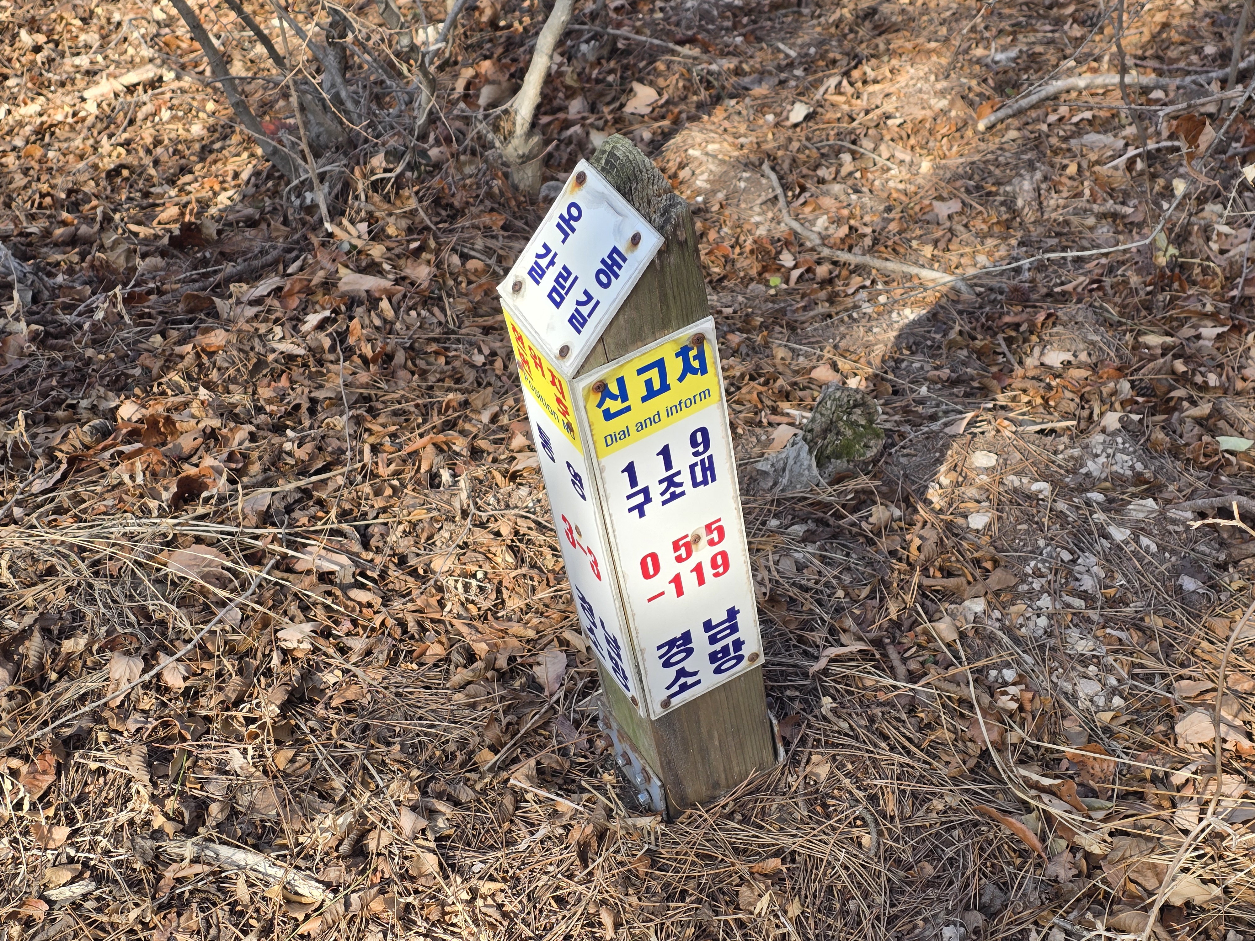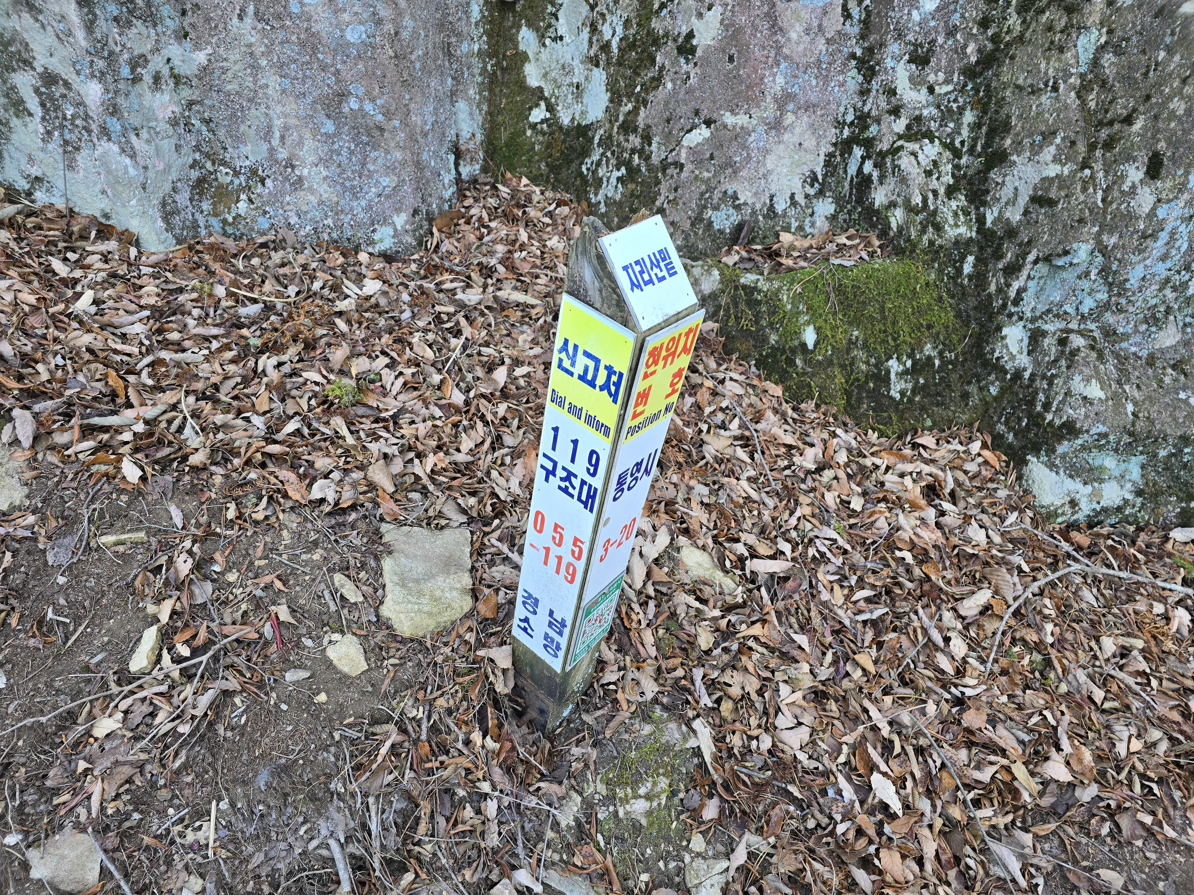 정자 쉼터 건너편의 철망 울타리 사이로 난 지리산 이정표를 보고 산길에 접어든다.