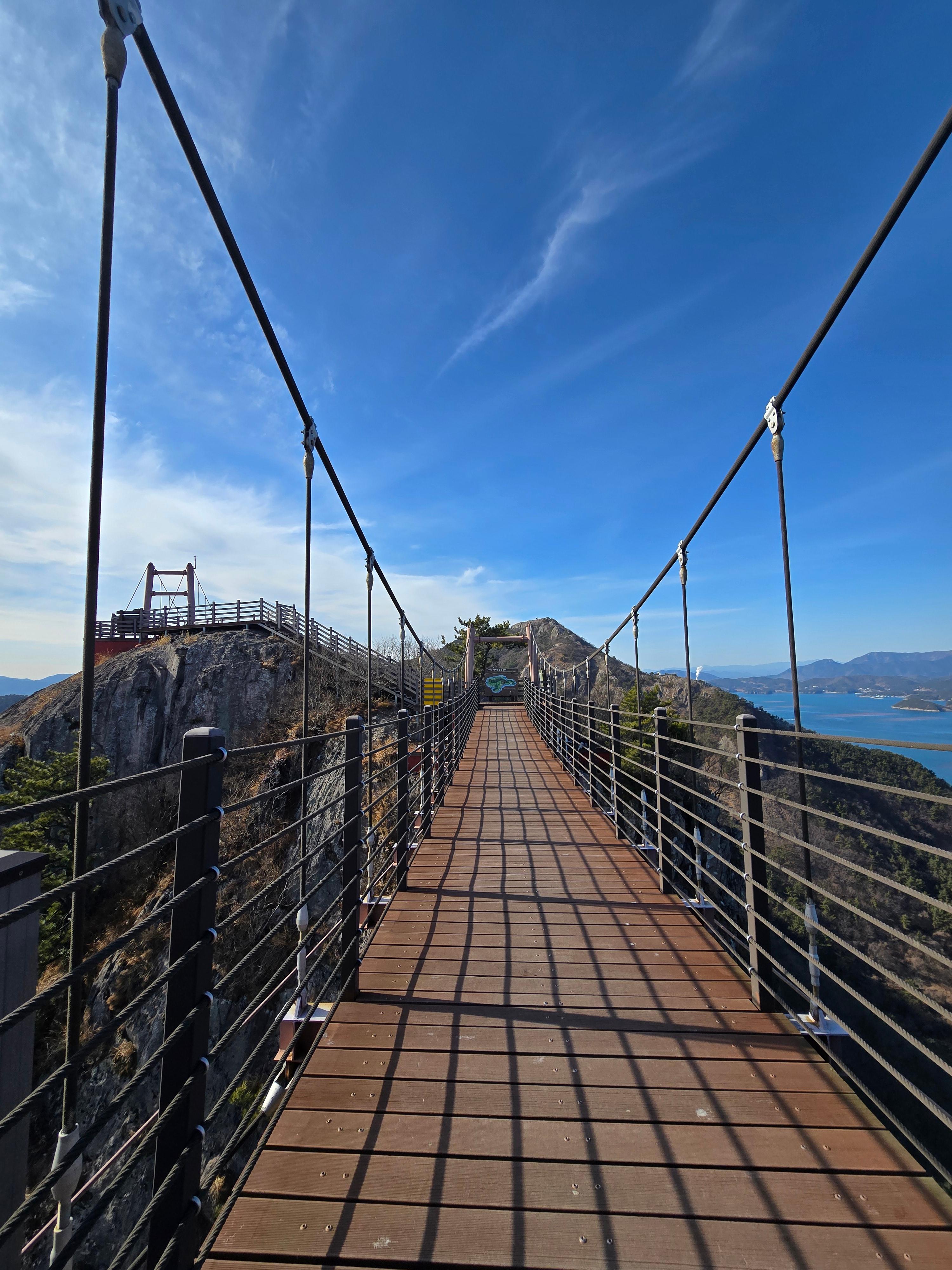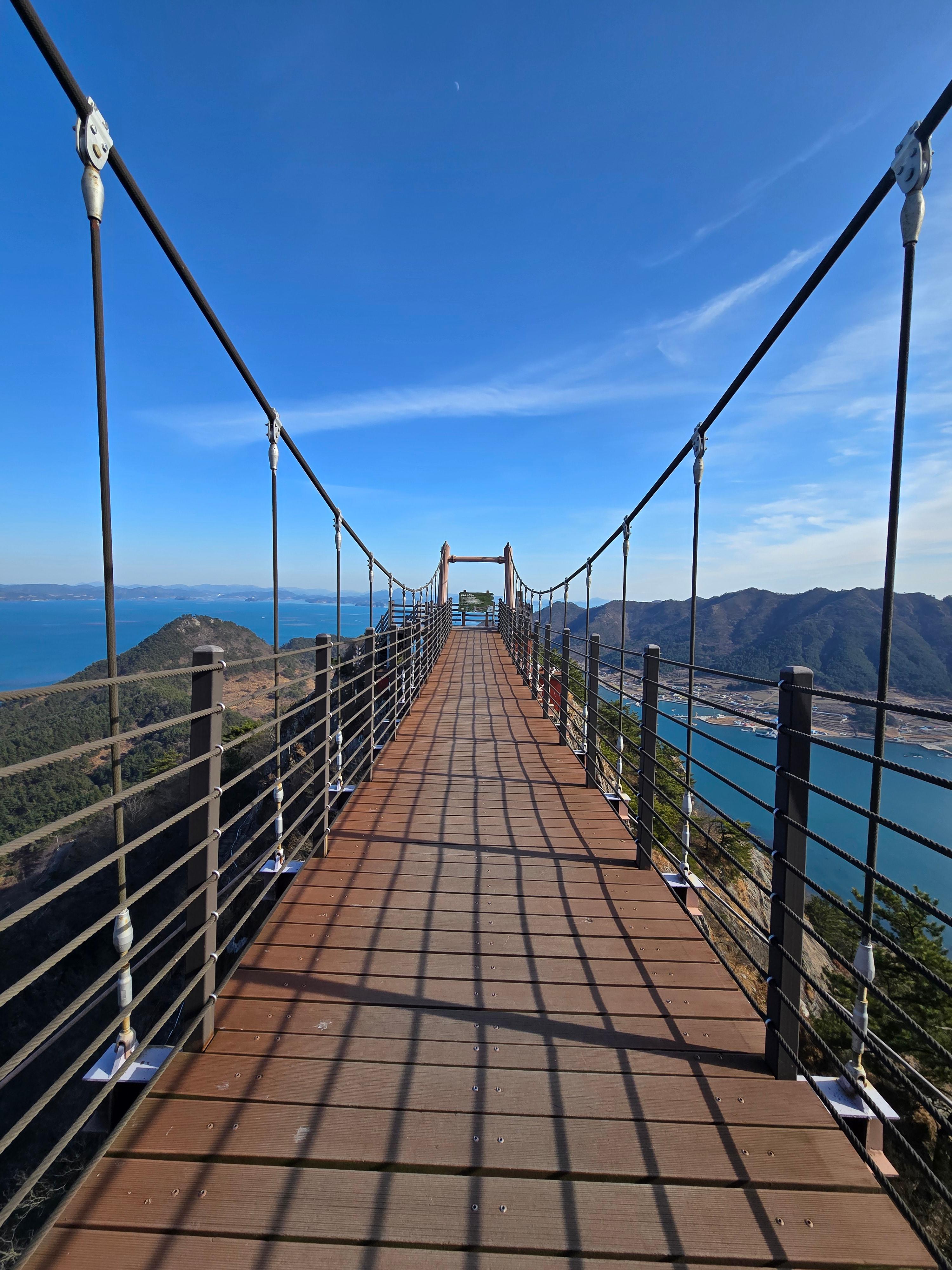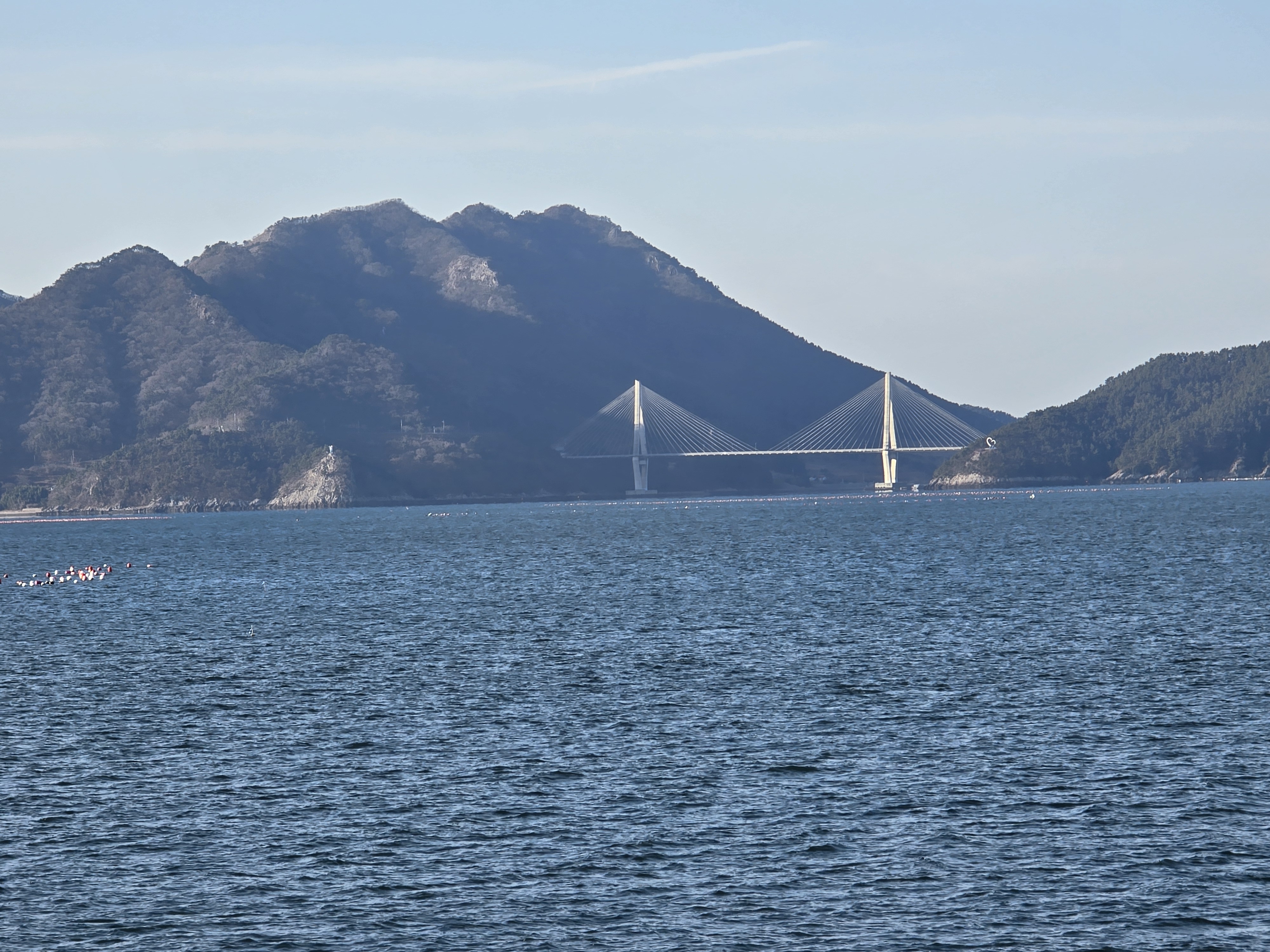 사량도 윗섬과 칠현봉이 있는 아랫섬을 잇는 사량대교가 펼쳐진다.