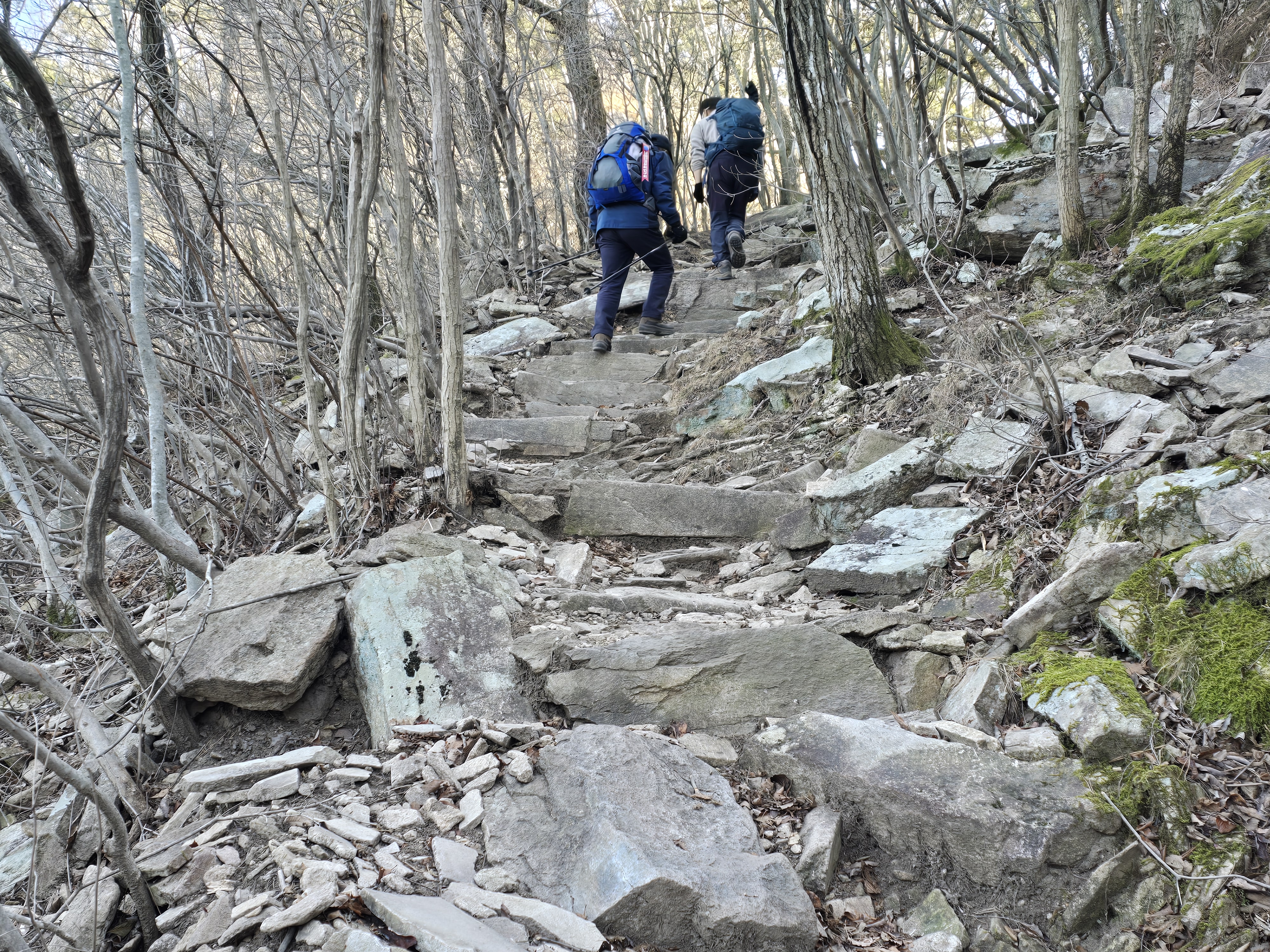 손잡이와 발 디딜 곳이 많은 데다 벼랑길에는 목책과 난간,